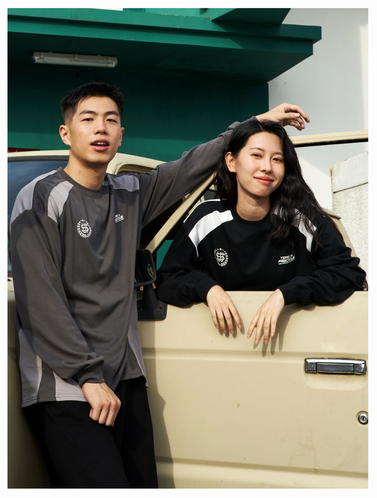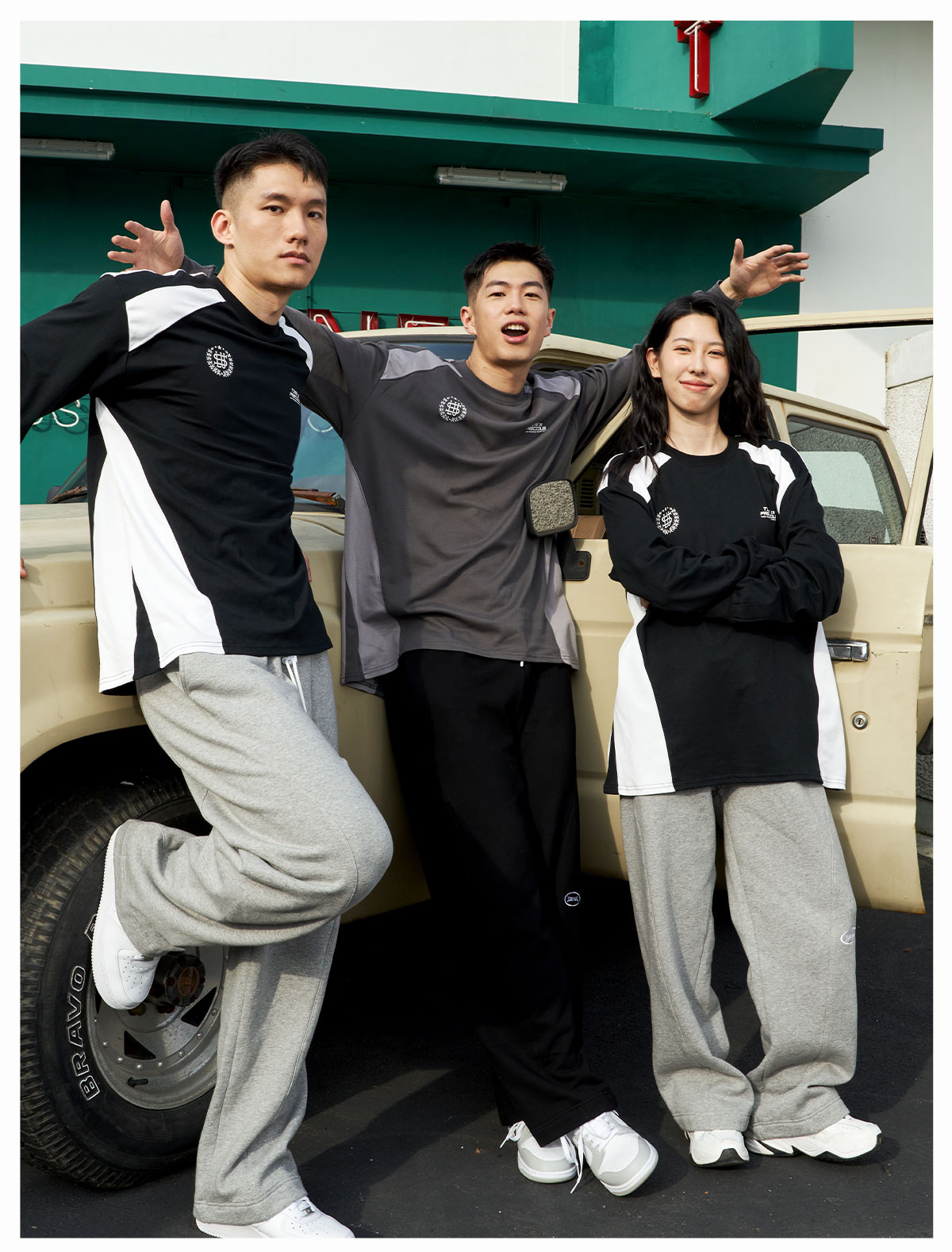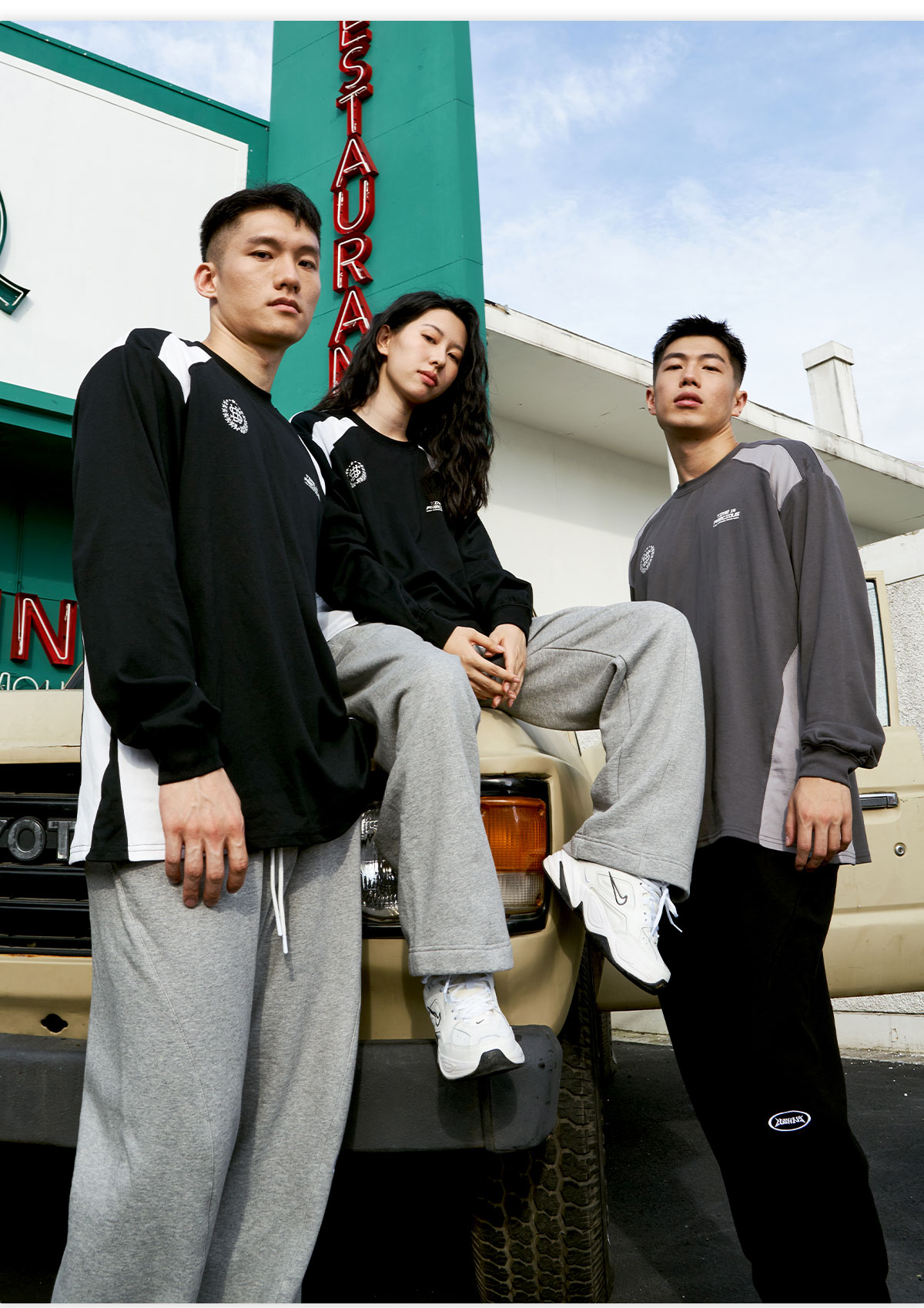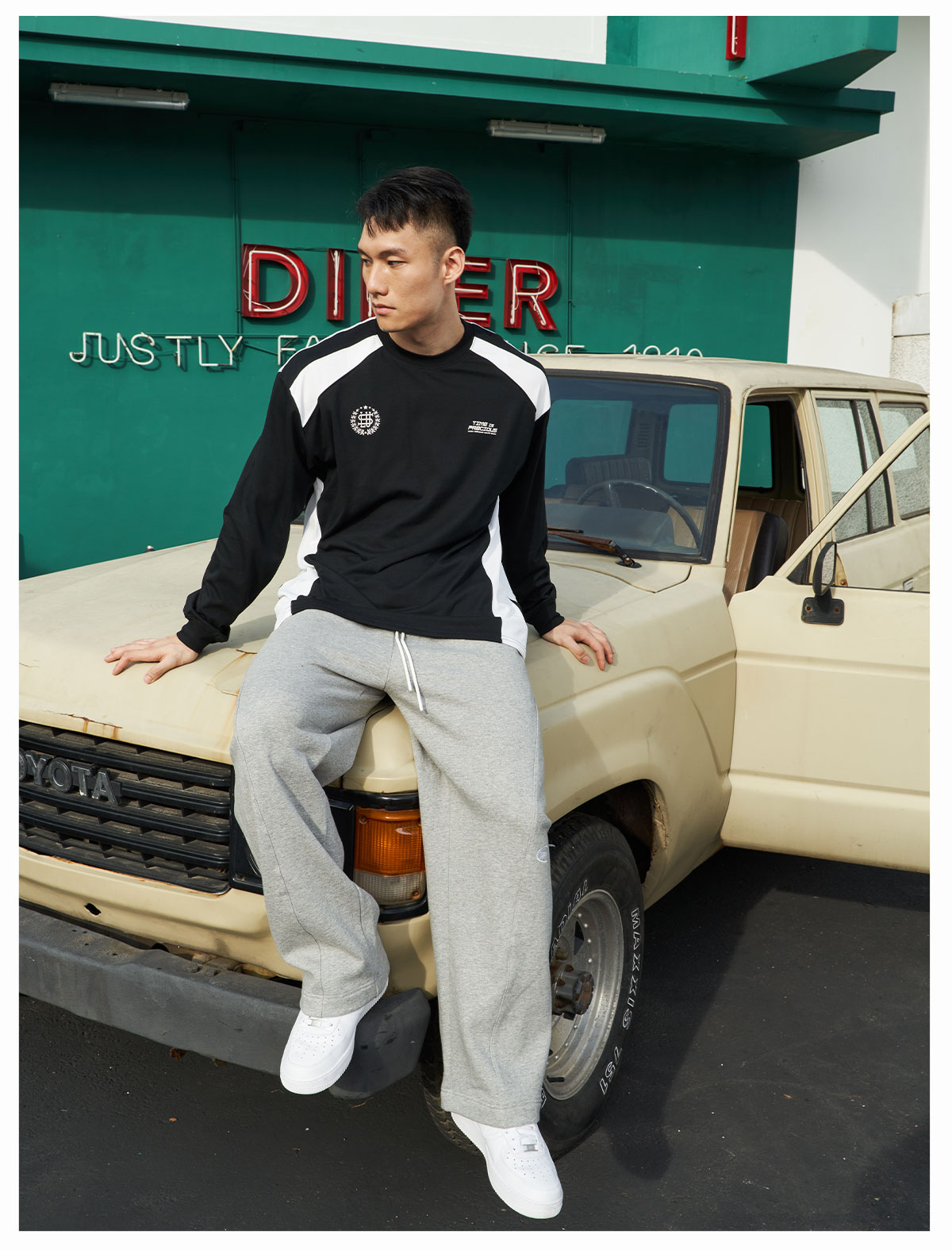 LUSHISI「棉感速干」双色拼接字母撞色运动复古风混纺棉长袖t恤