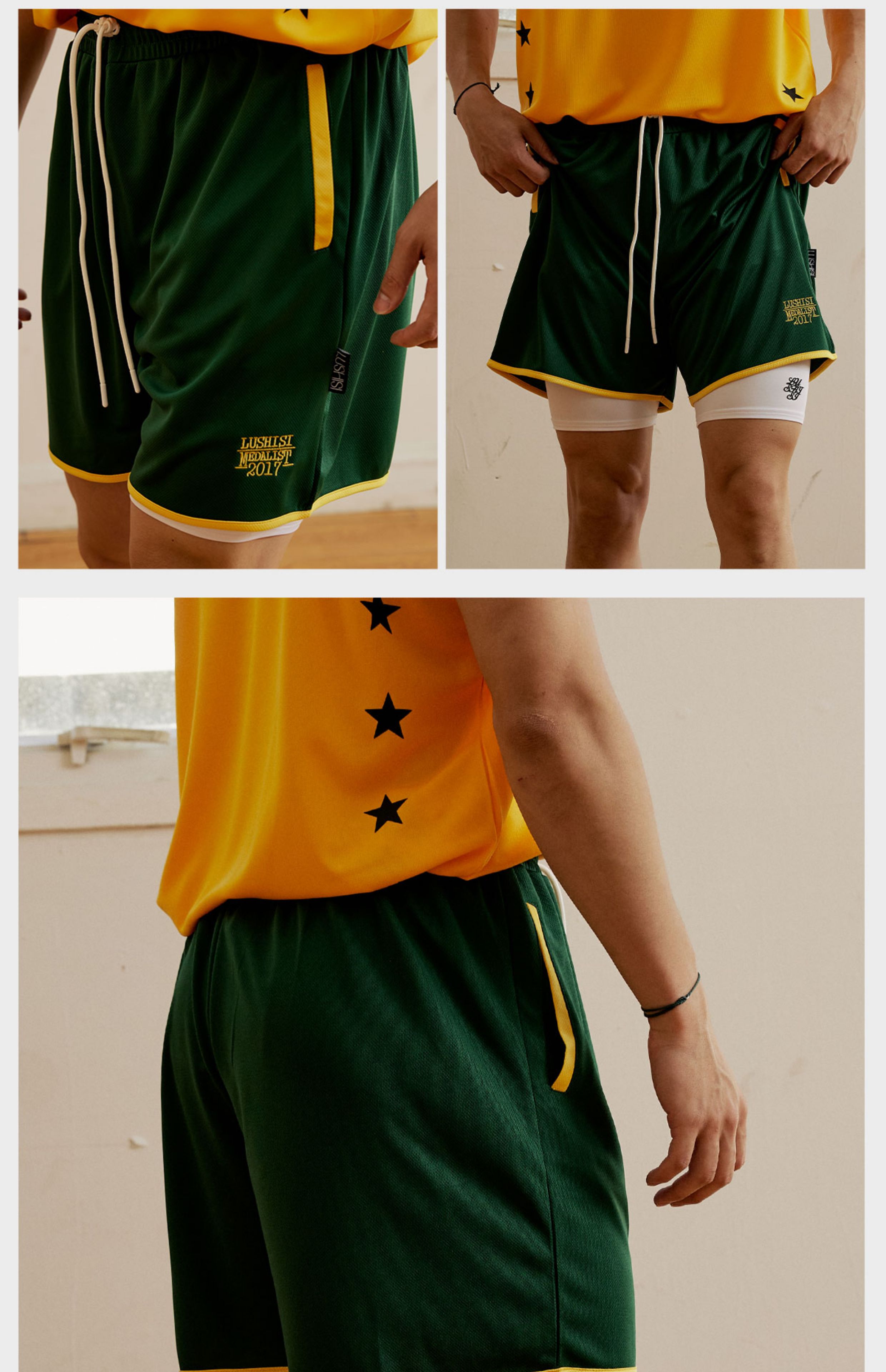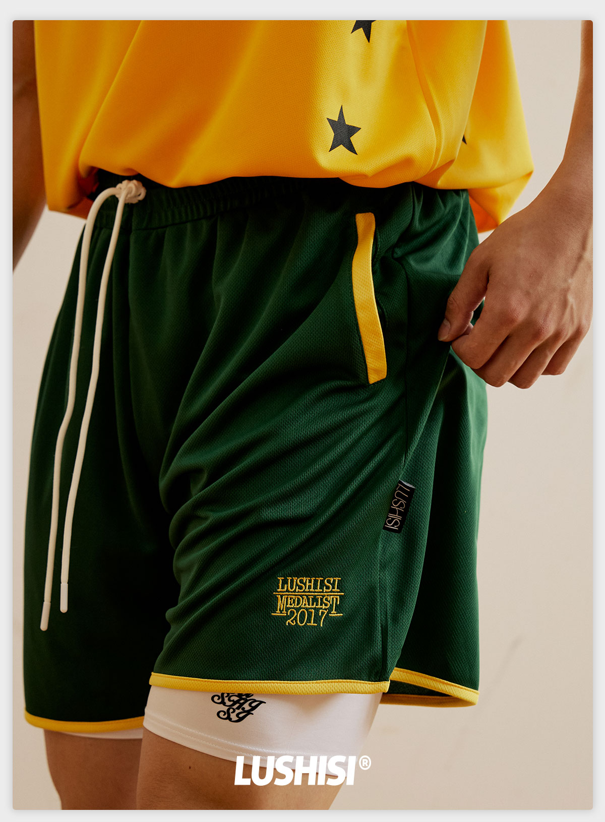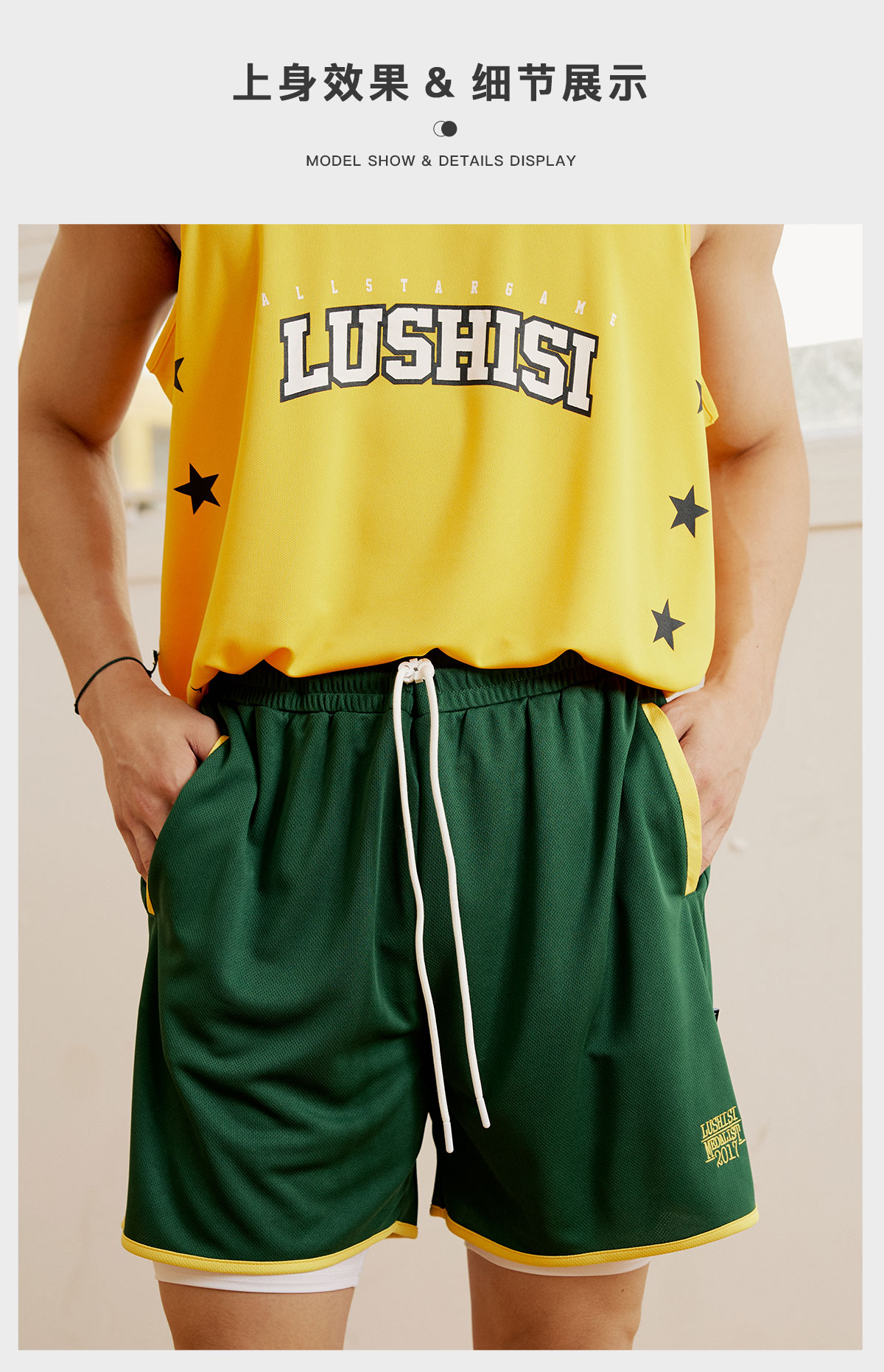 LUSHISI争冠主题篮球美式短裤夏季运动训练网眼速干四分复古球裤