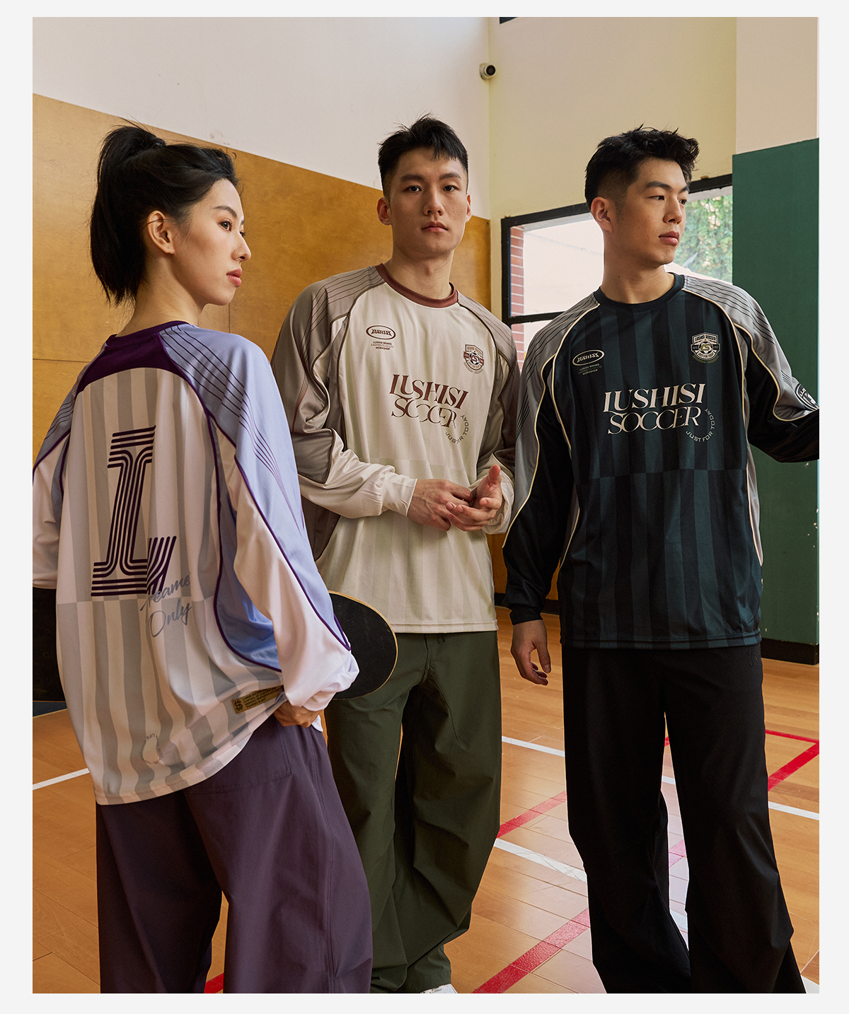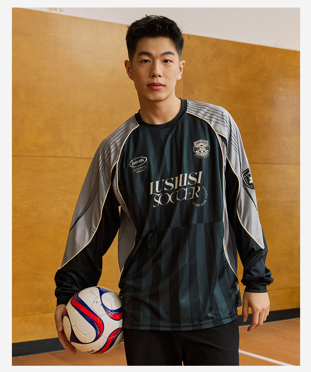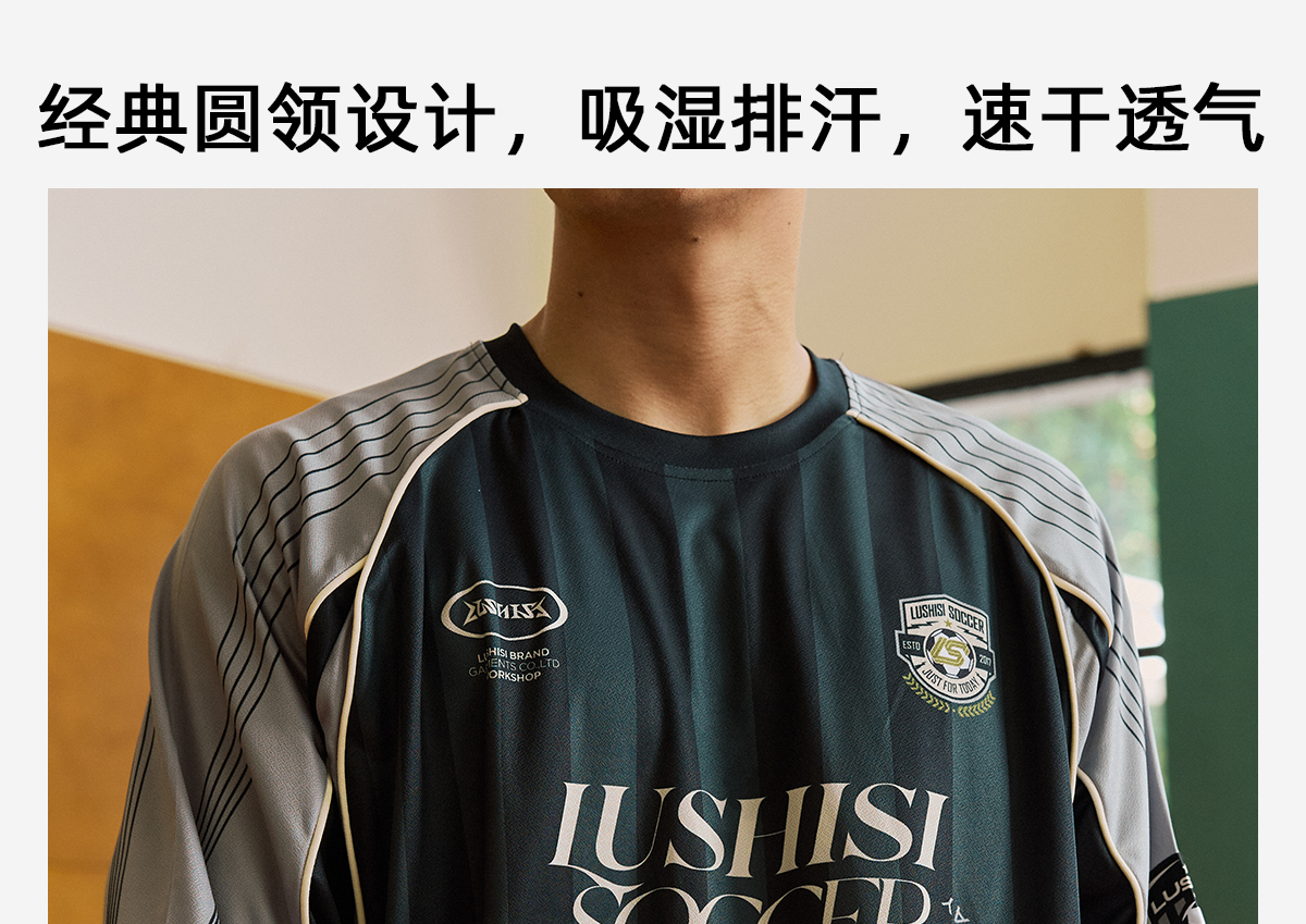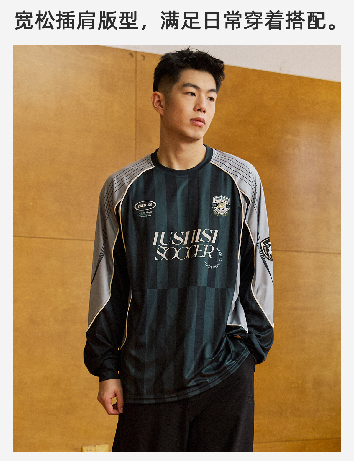 LUSHISI草根主题足球风长袖吸湿速干街头篮球服投篮服t恤运动服男