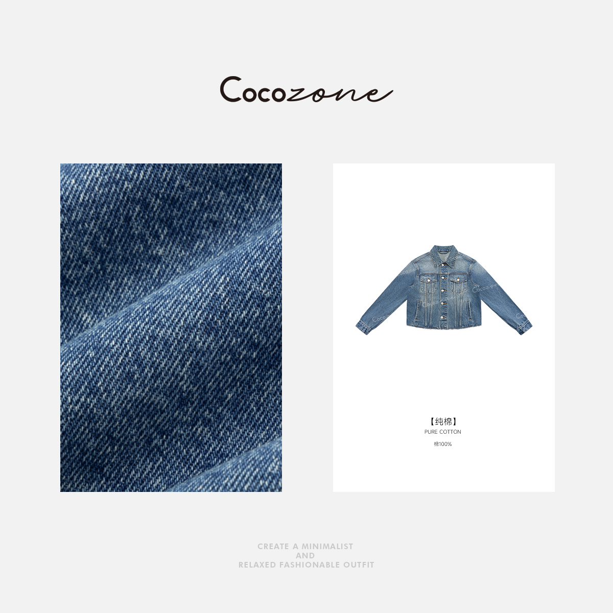 COCO ZONE 蓝色复古翻领休闲水洗牛仔外套ACD1A0115