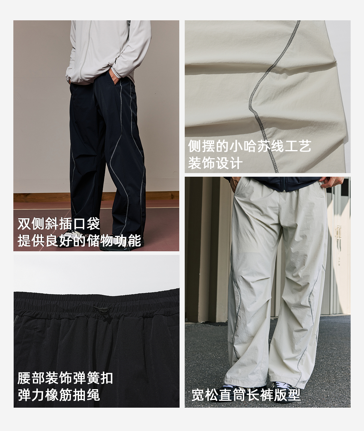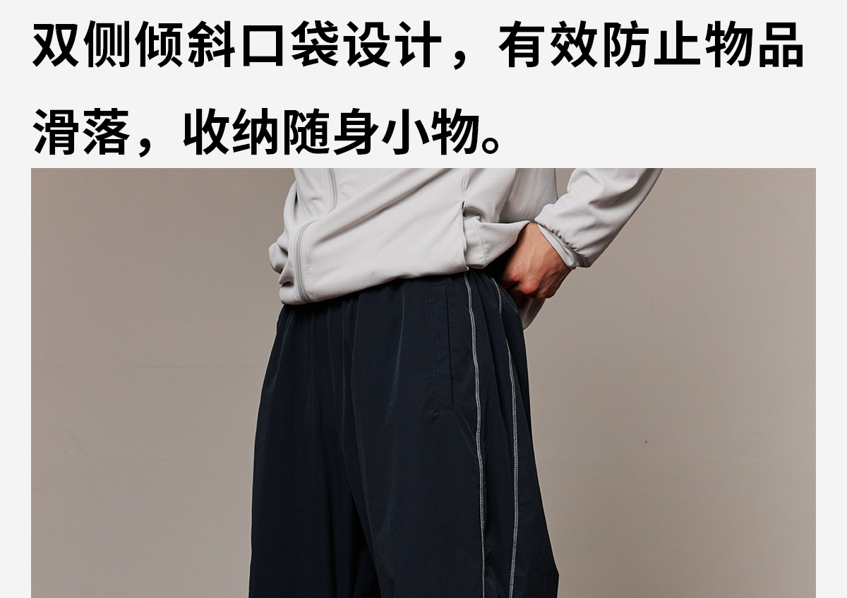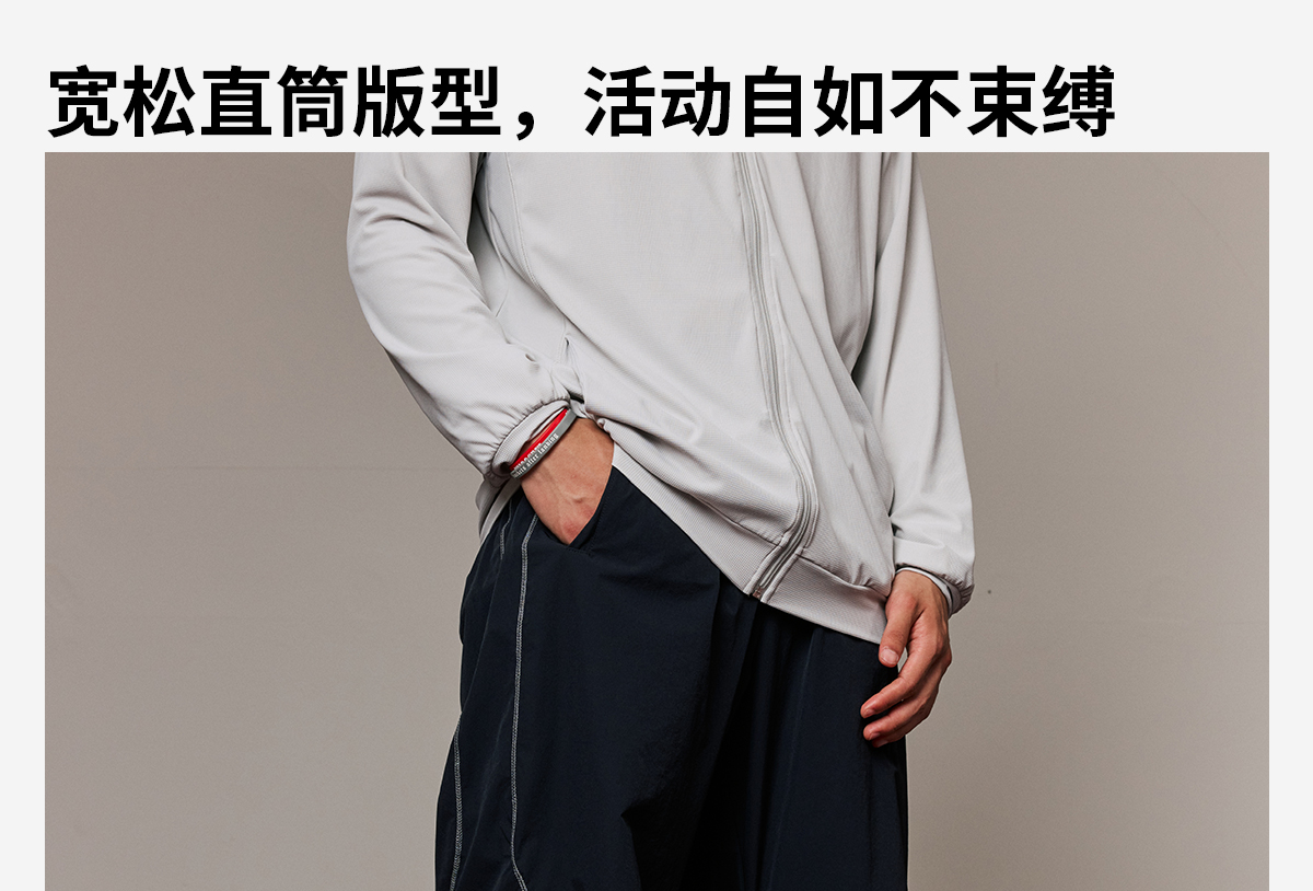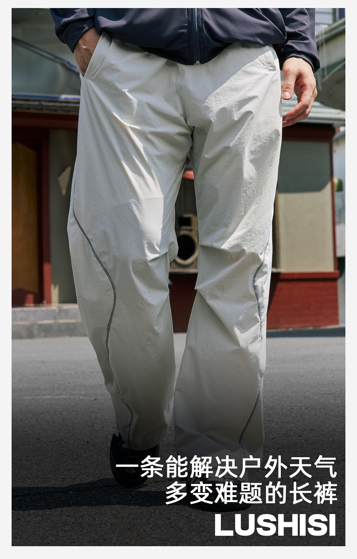 录士LUSHISI织线主题轻薄透气防泼水直筒长裤松紧绳大口袋多功能