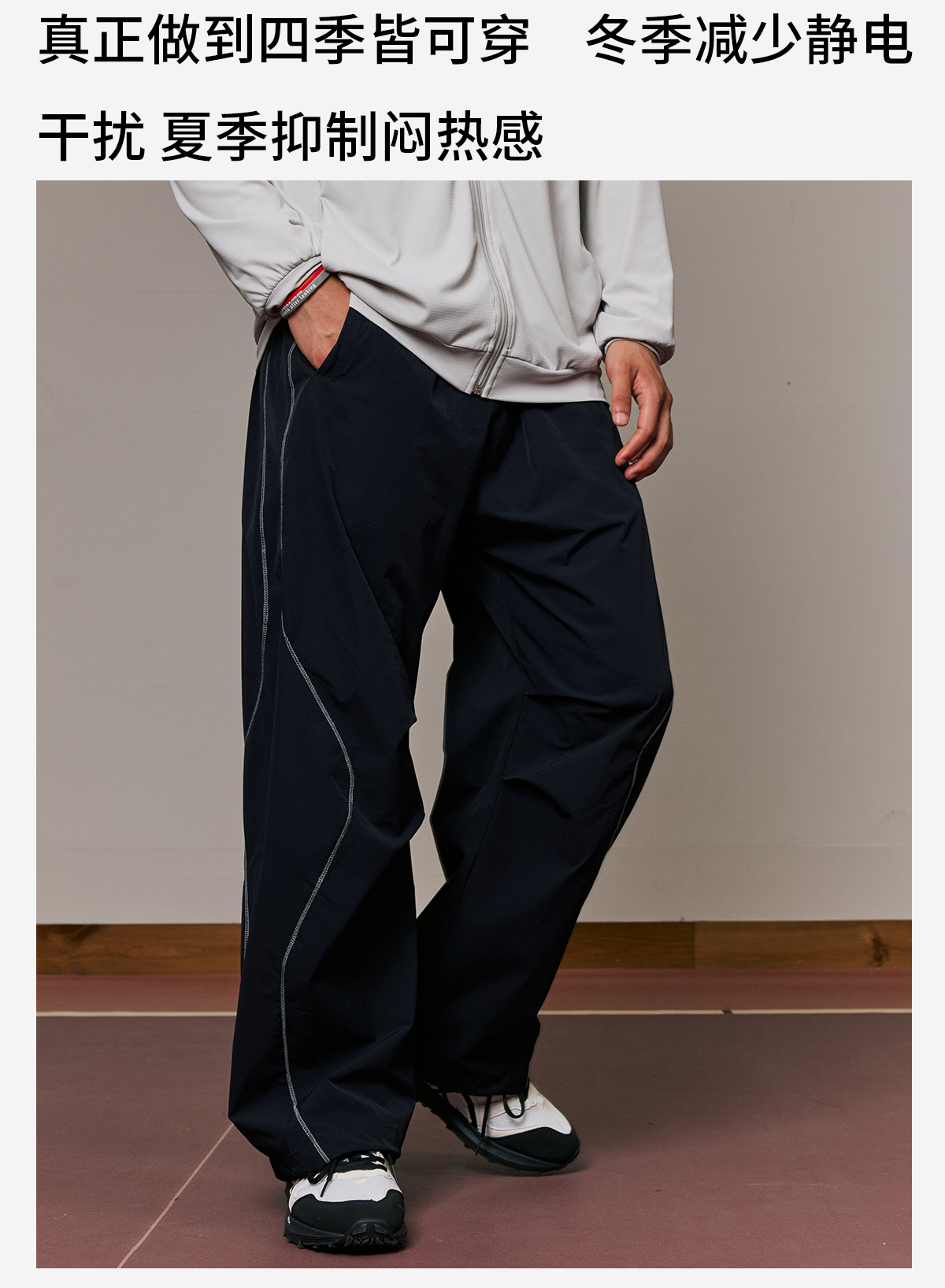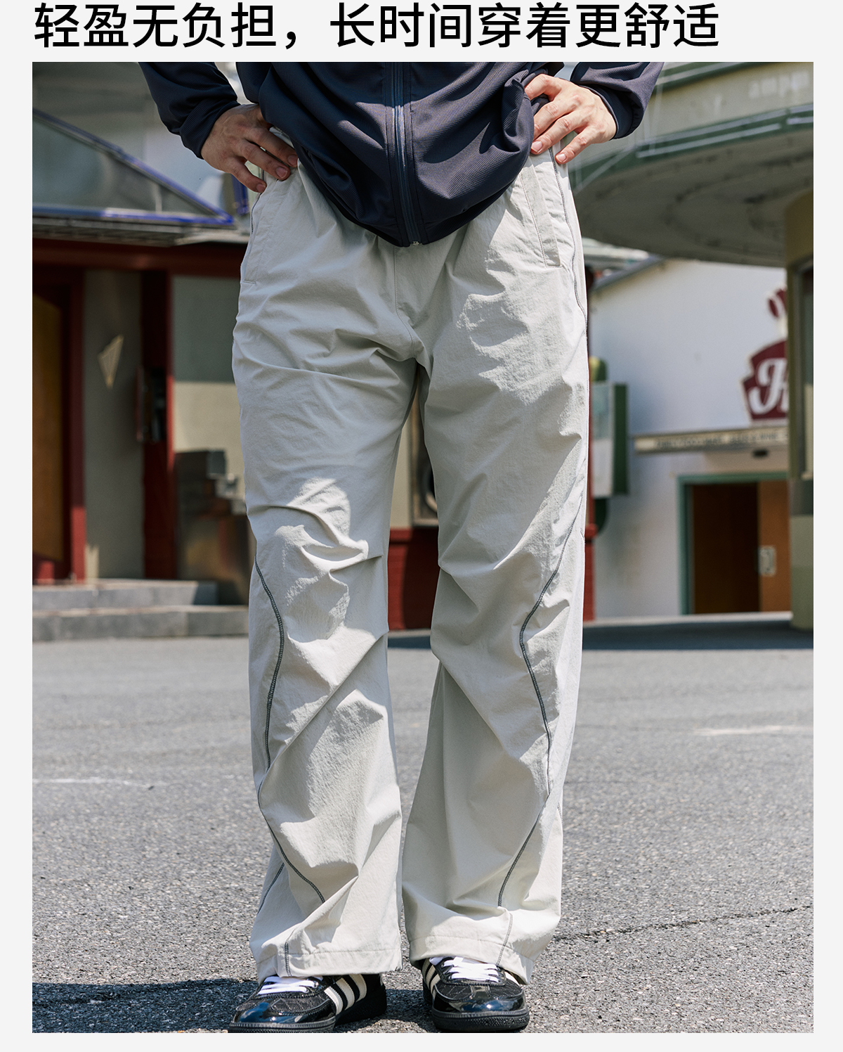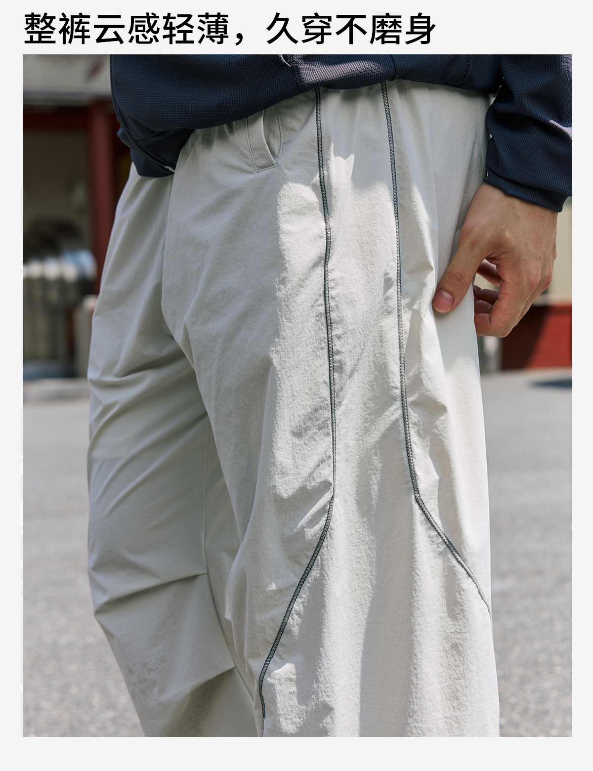 录士LUSHISI织线主题轻薄透气防泼水直筒长裤松紧绳大口袋多功能