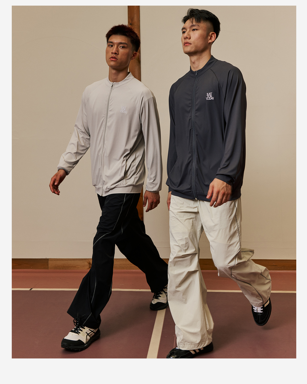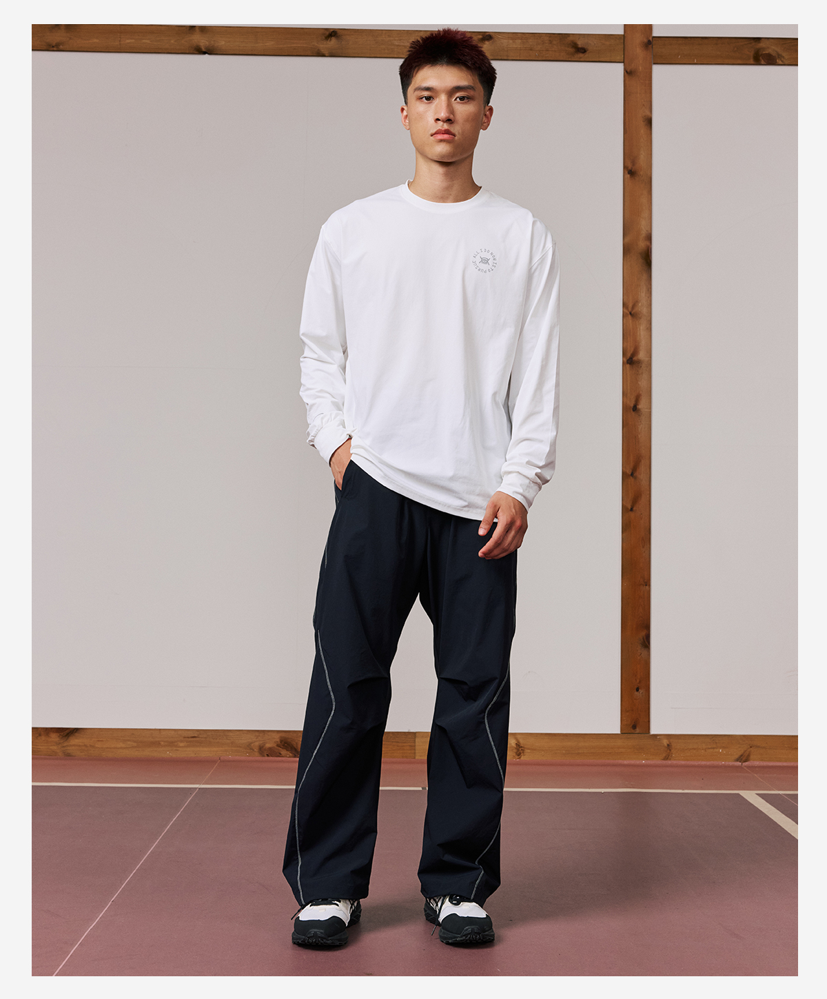 LUSHISI「棉感速干」双色拼接字母撞色运动复古风混纺棉长袖t恤
