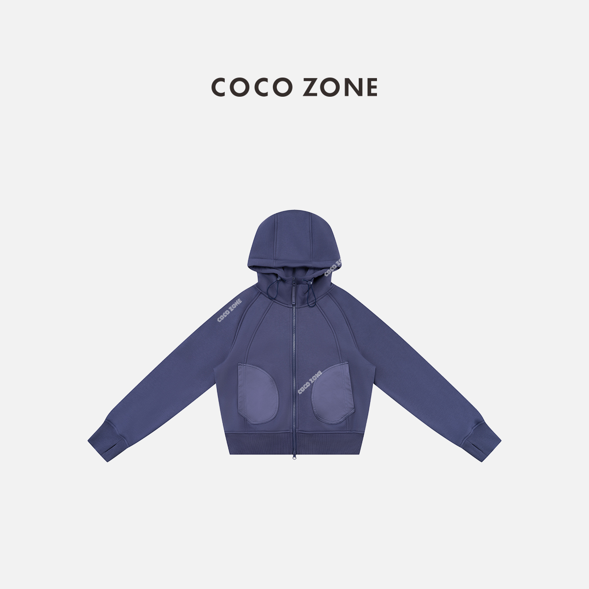 COCO ZONE 时尚连帽口袋设计外套简约休闲上衣CC1C2234