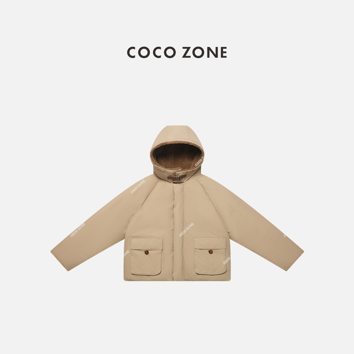 COCO ZONE 冬季高级感拼接连帽宽松派克棉服CC2D3070