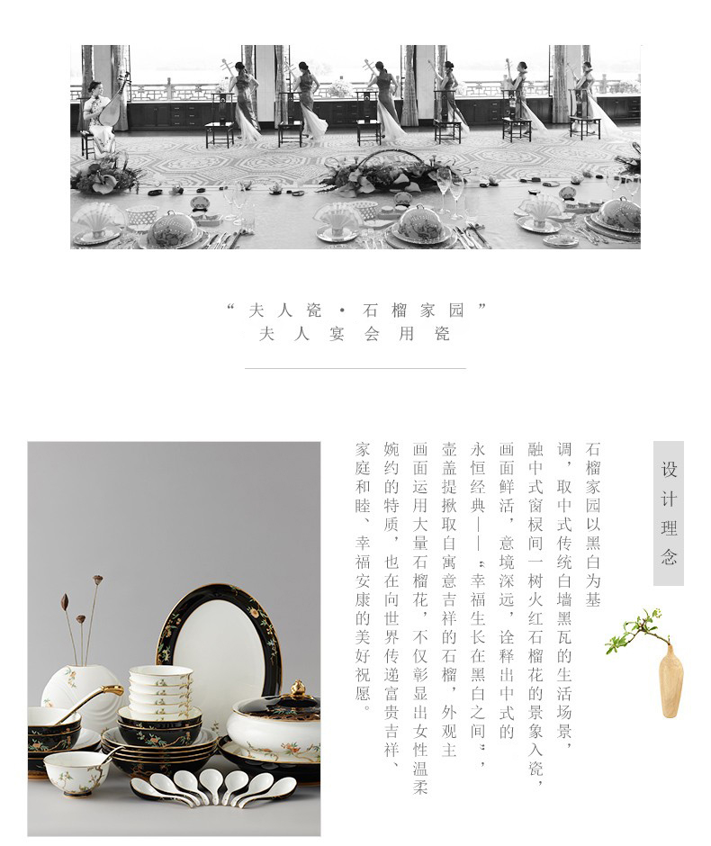 永丰源 夫人瓷石榴家园8人位家用31头中式餐具套装