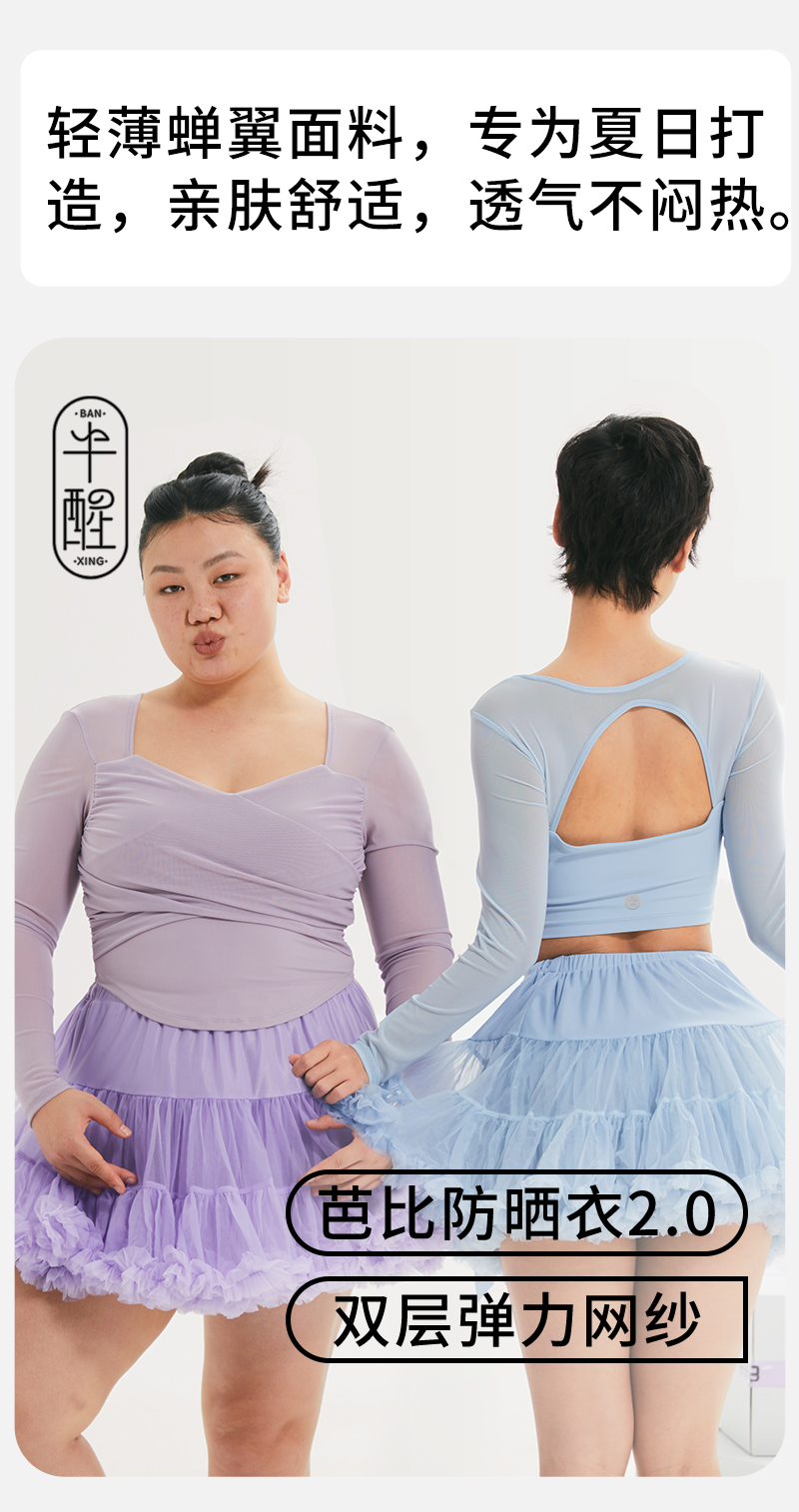 半醒芭比防晒衣高级感瑜伽服带胸垫女修身显瘦速干运动网纱透气美背舞蹈健身美背衣