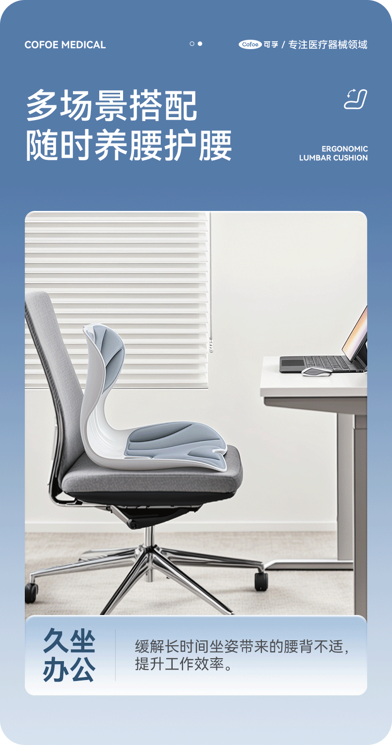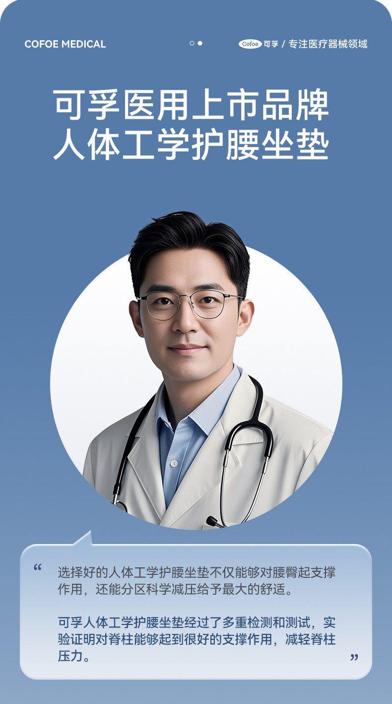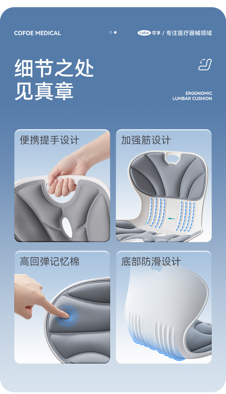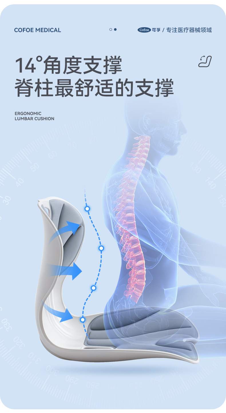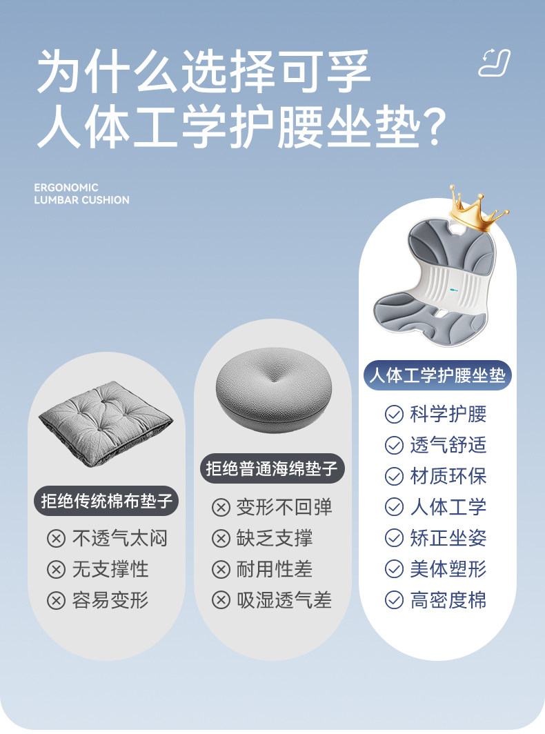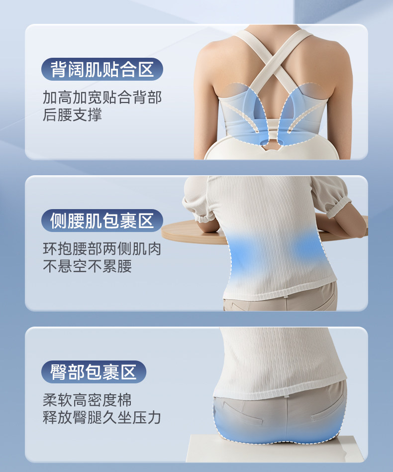 【积分兑换】可孚人体工学护腰坐垫腰靠背垫腰部支撑坐姿办公久坐可拆卸久坐