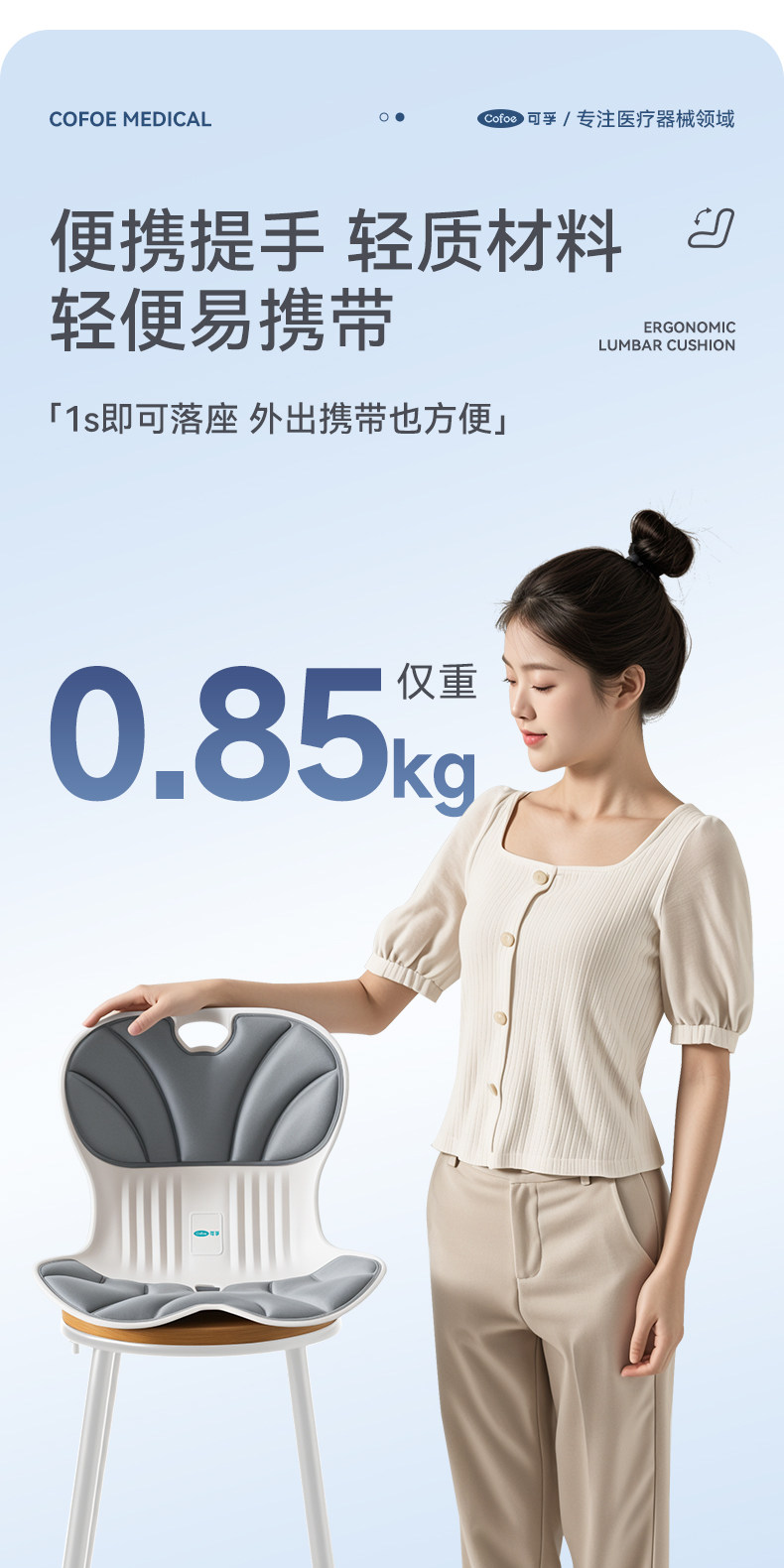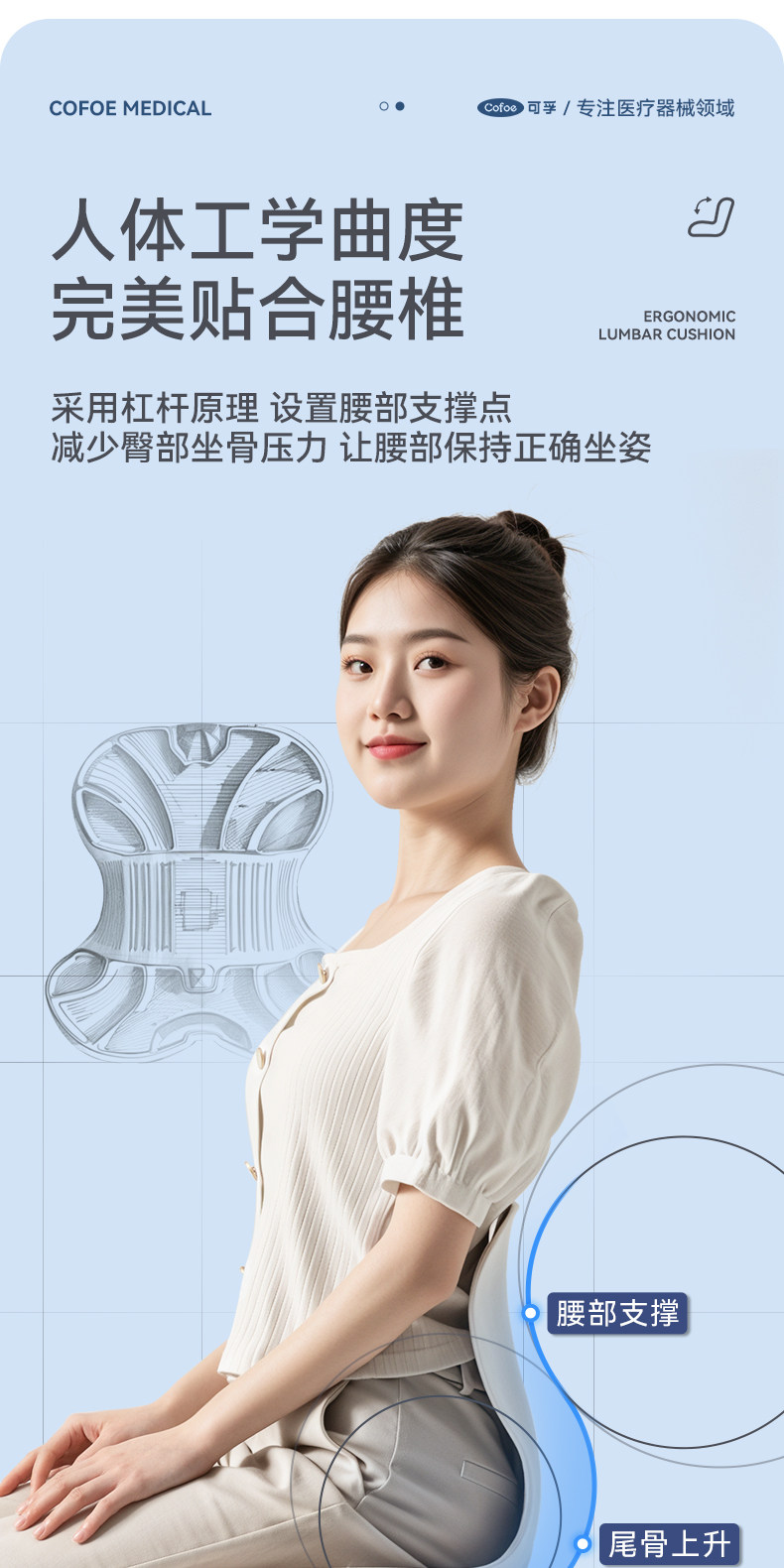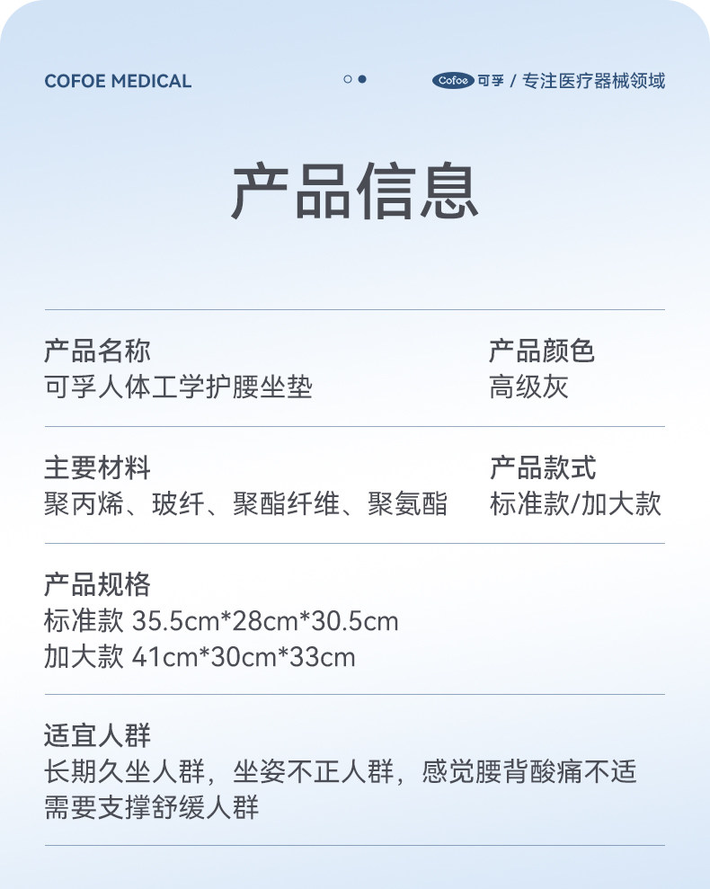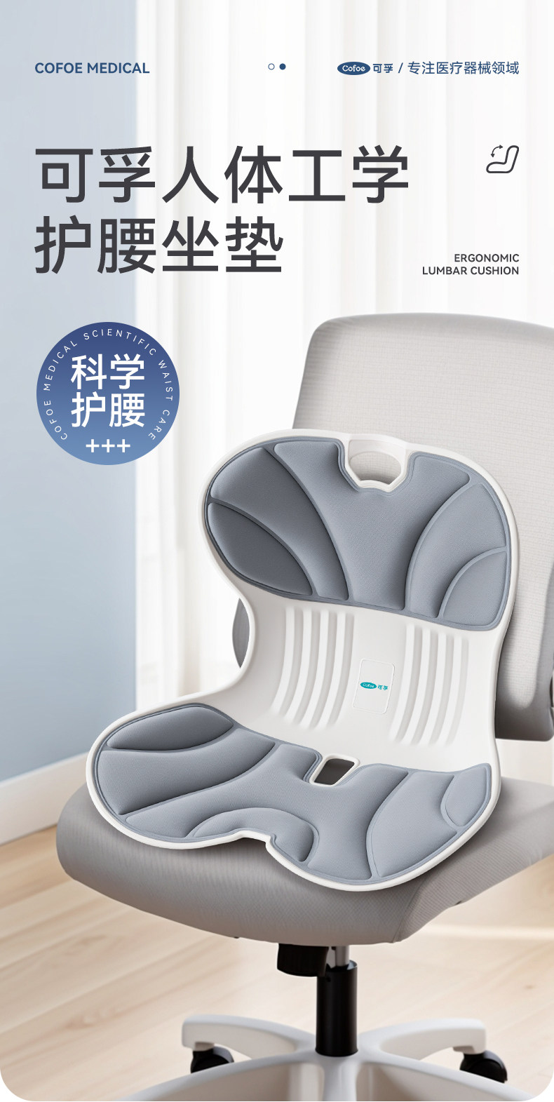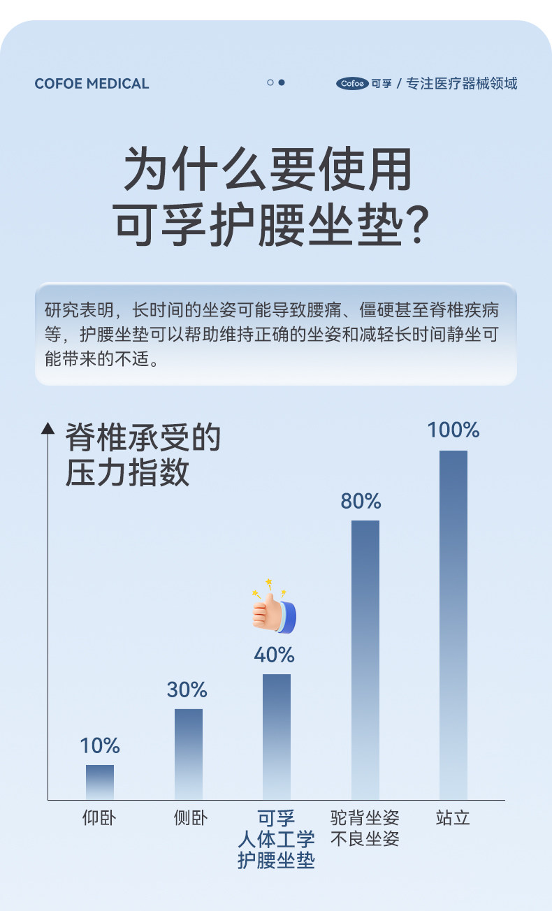 【积分兑换】可孚人体工学护腰坐垫腰靠背垫腰部支撑坐姿办公久坐可拆卸久坐