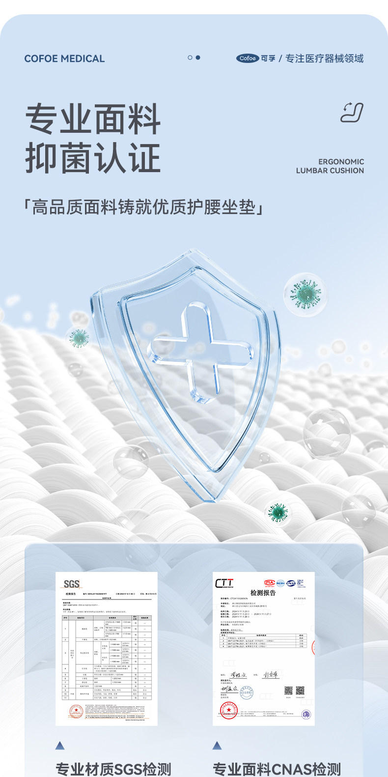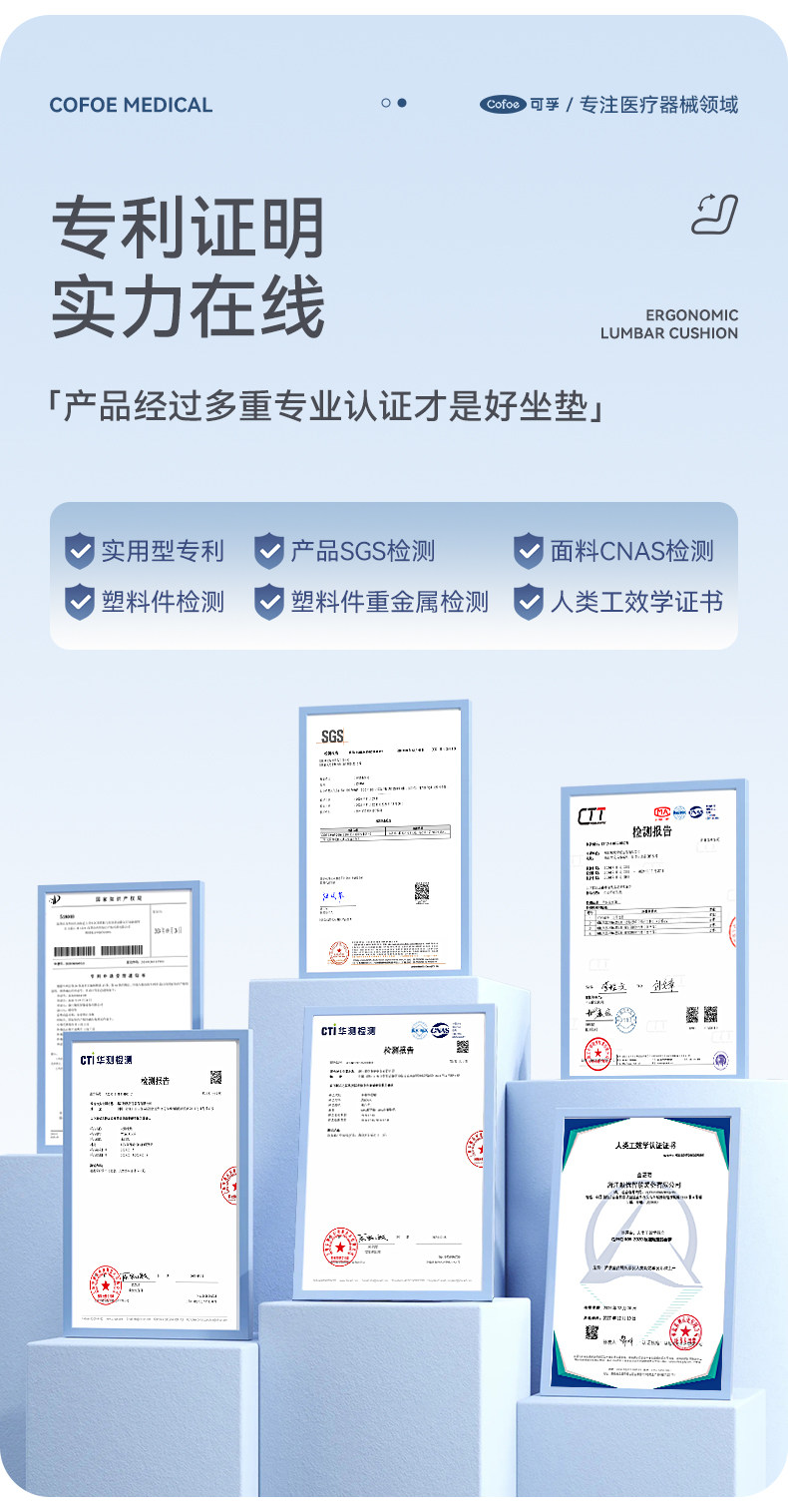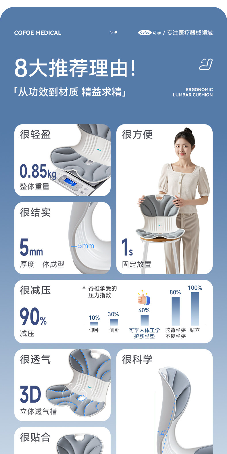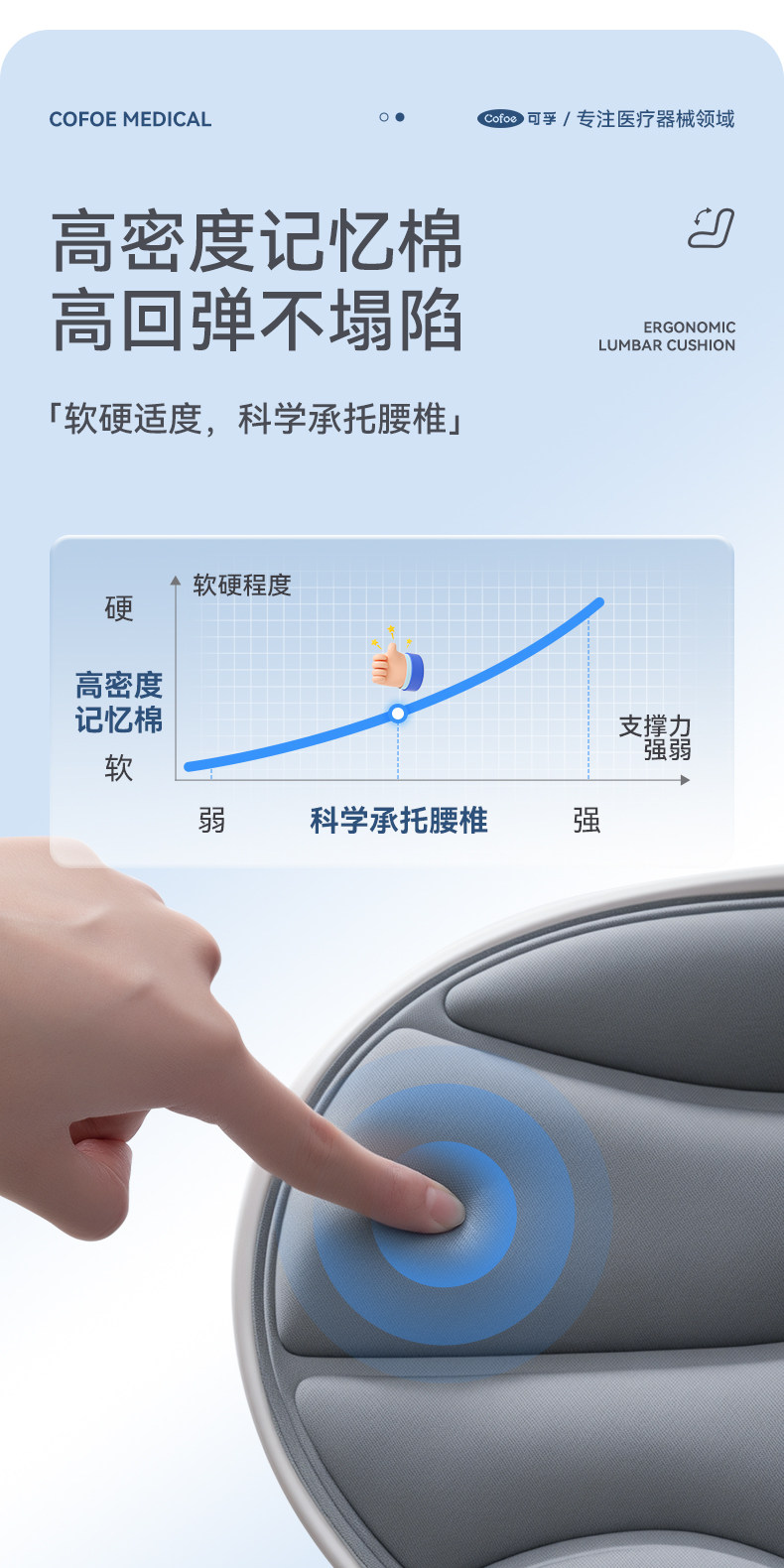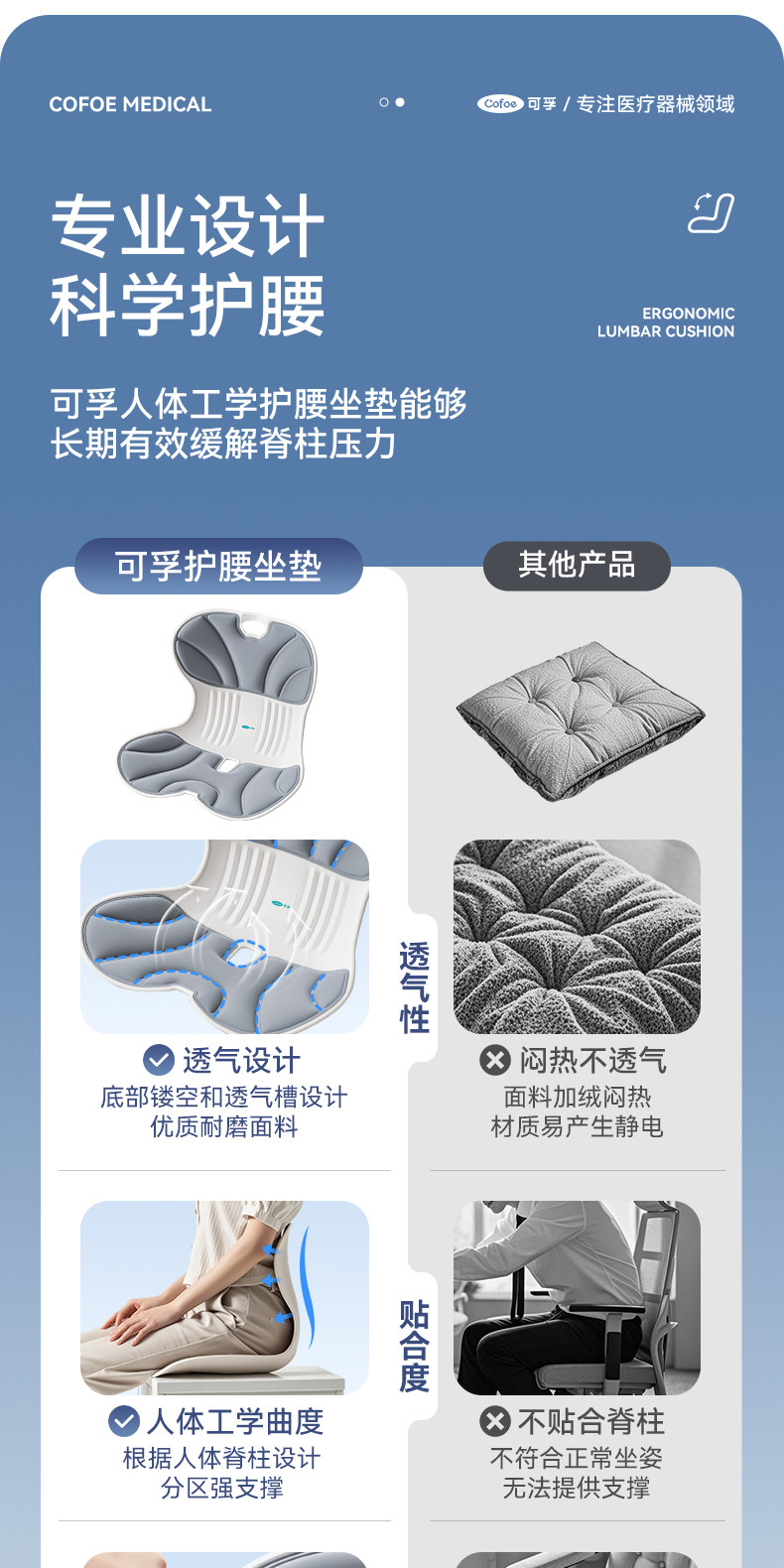 【积分兑换】可孚人体工学护腰坐垫腰靠背垫腰部支撑坐姿办公久坐可拆卸久坐