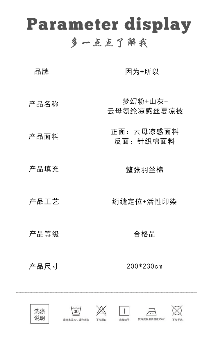 因为+所以 / Because & So 梦幻粉+山灰-云母氨纶凉感丝夏凉被