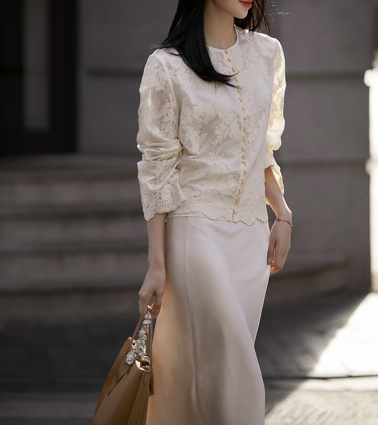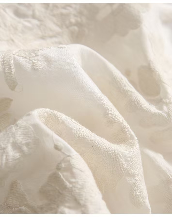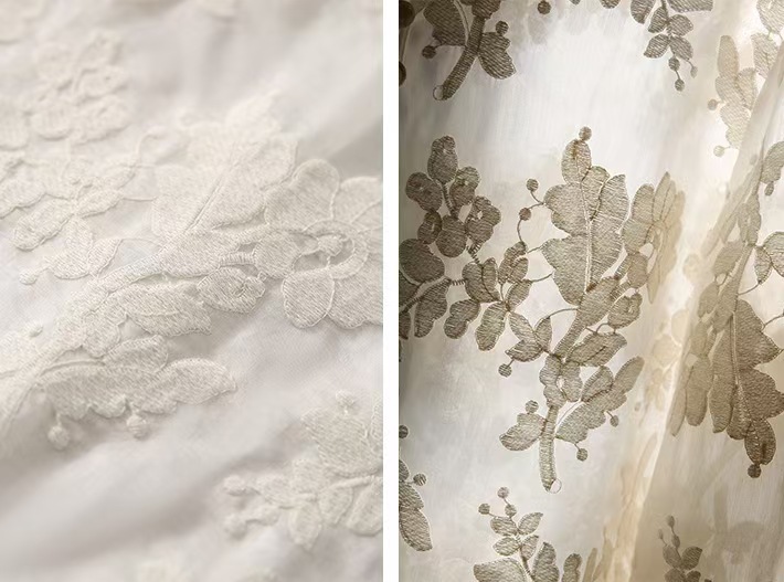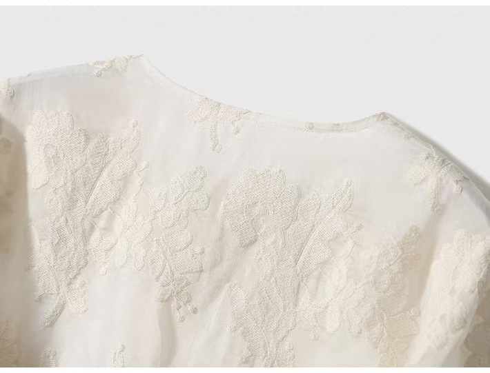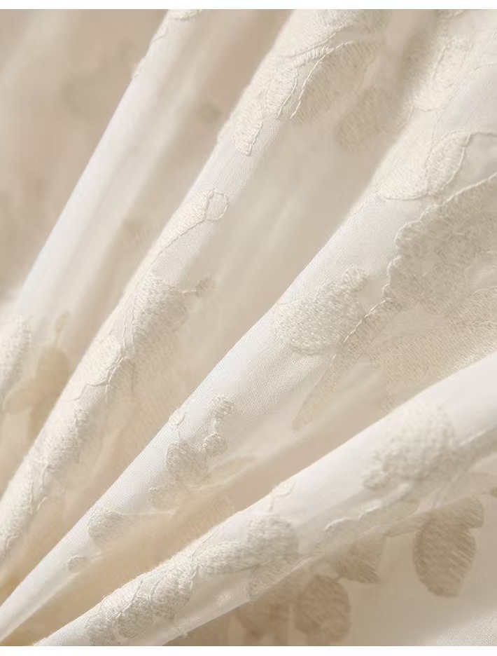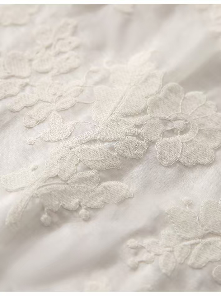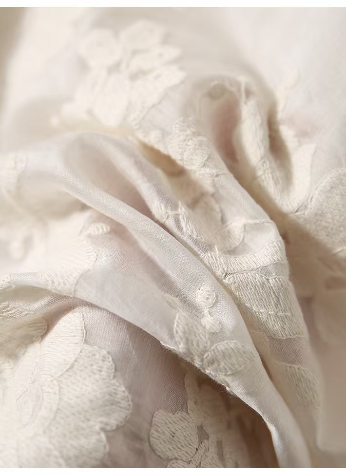 穿上它,转身间,光泽在柔和的阳光照射下流转刺绣的花朵仿佛随着你的舞动而生动起来
