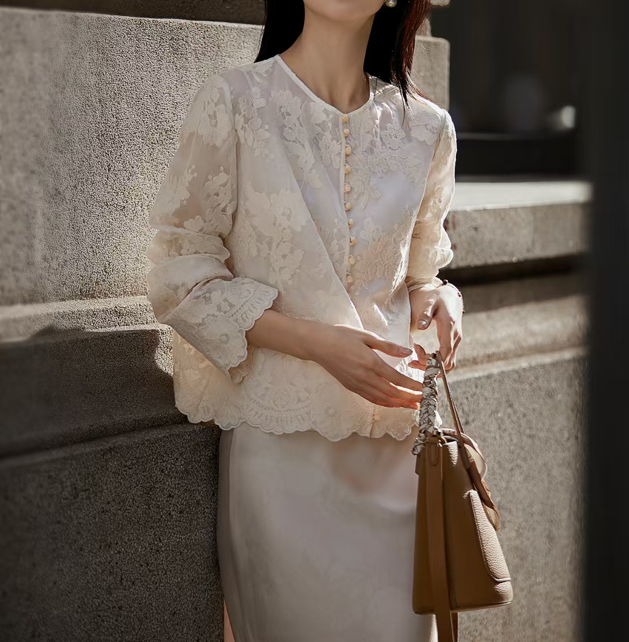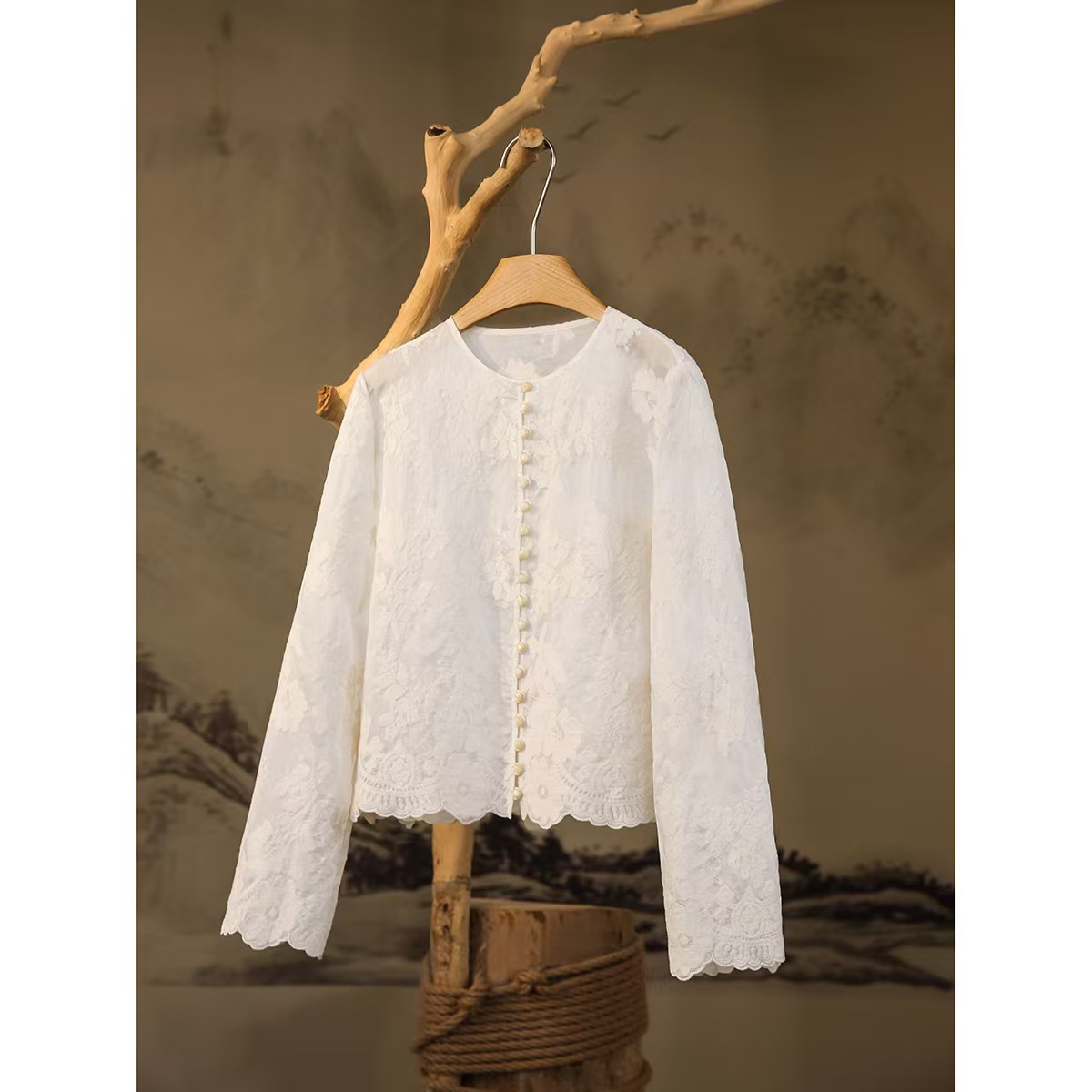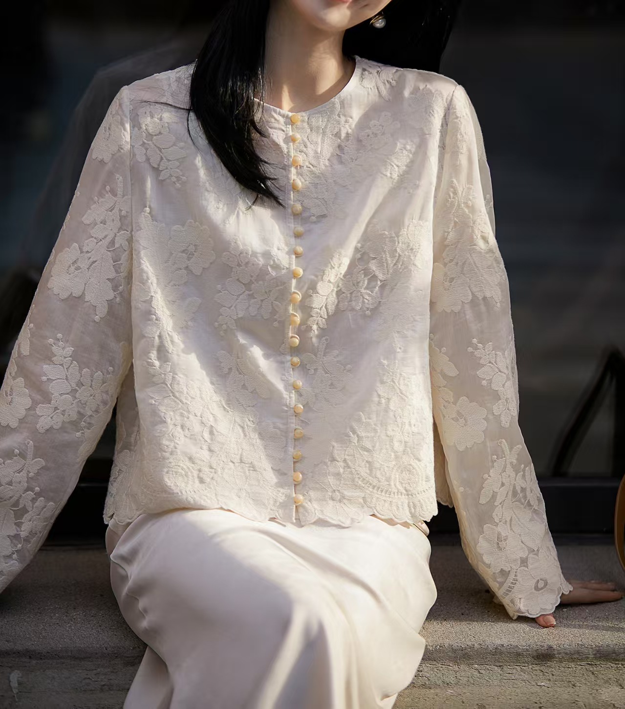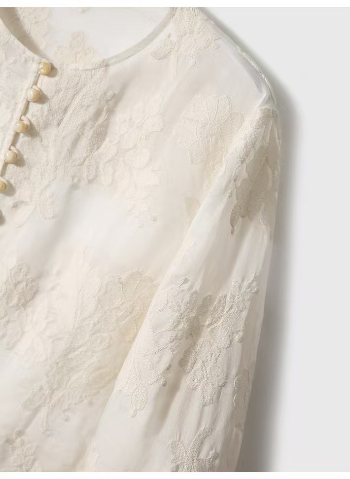 繁花入梦 美出新高度精.致小圆领天丝刺绣小上衣