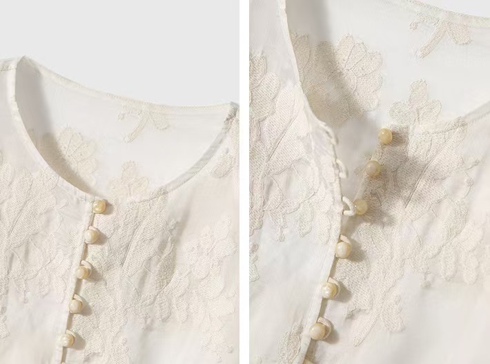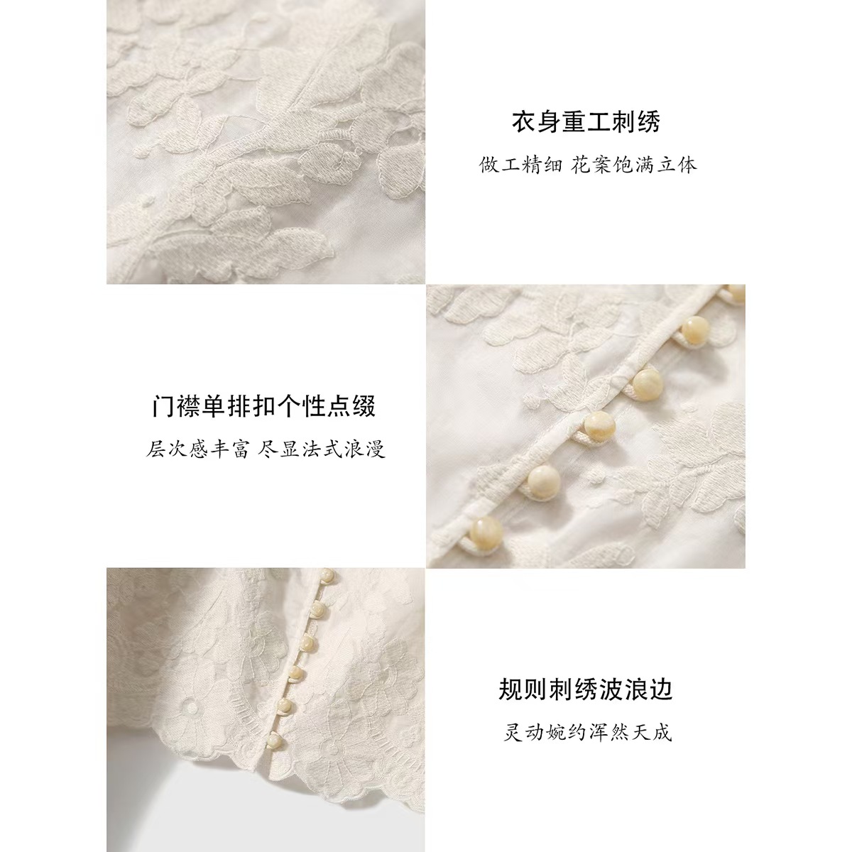 使衣身层次感董加丰富尽显法式浪漫下摆,袖口处规则刺绣波浪边造型灵动婉约浑然tian成,美的不像话