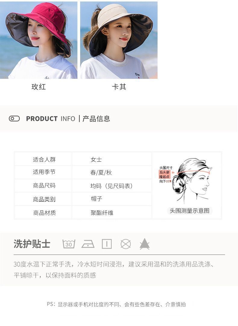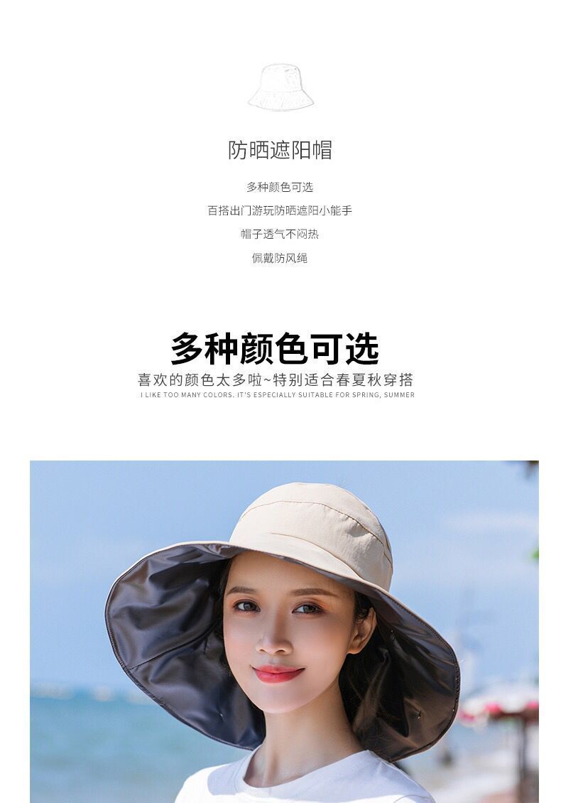 遮阳帽女夏季日系空顶大檐沿渔夫太阳帽韩版潮百搭紫外线防晒帽