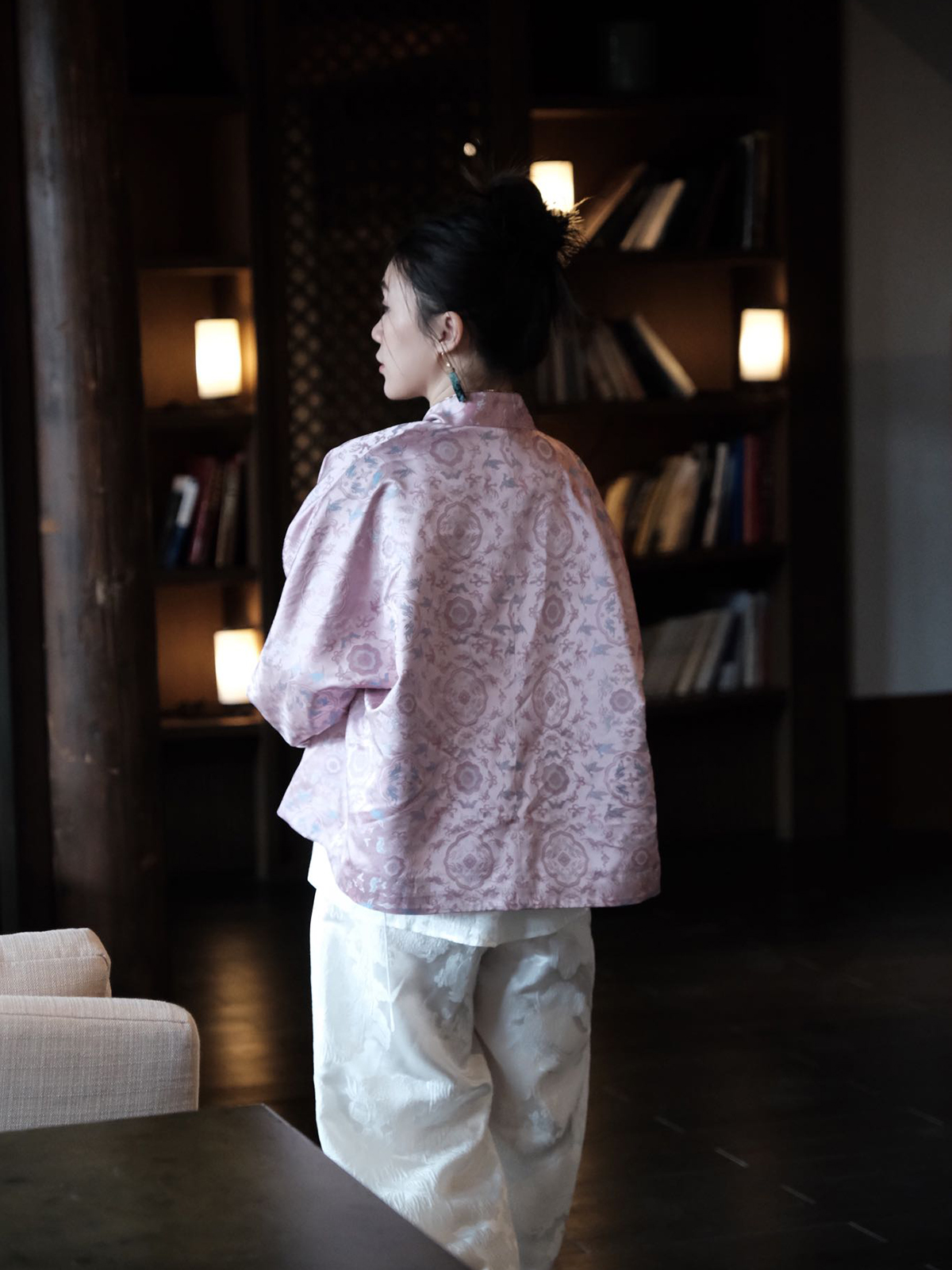 盛唐牡丹 |真丝提花阔腿裤珍珠白平腰版 (蝶恋花纹样)
