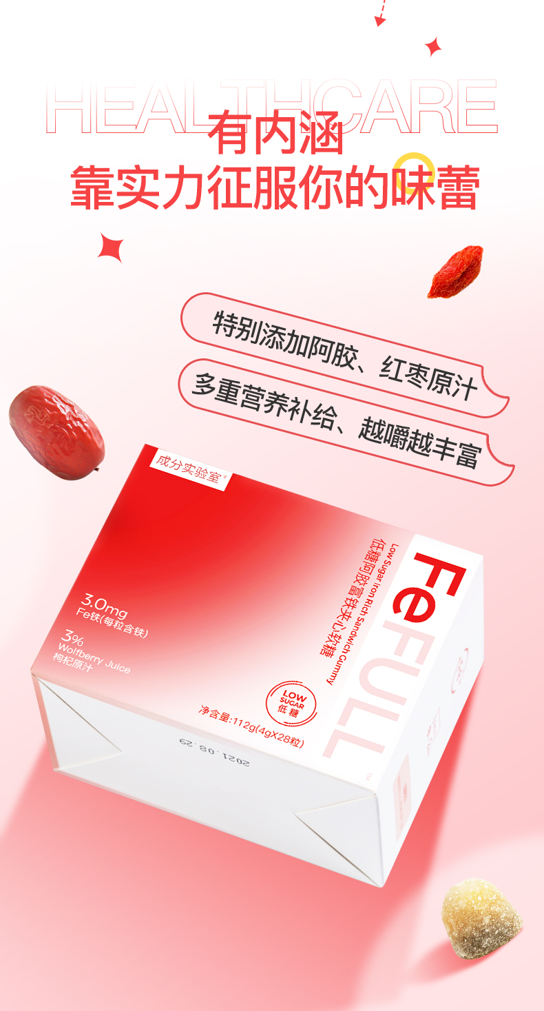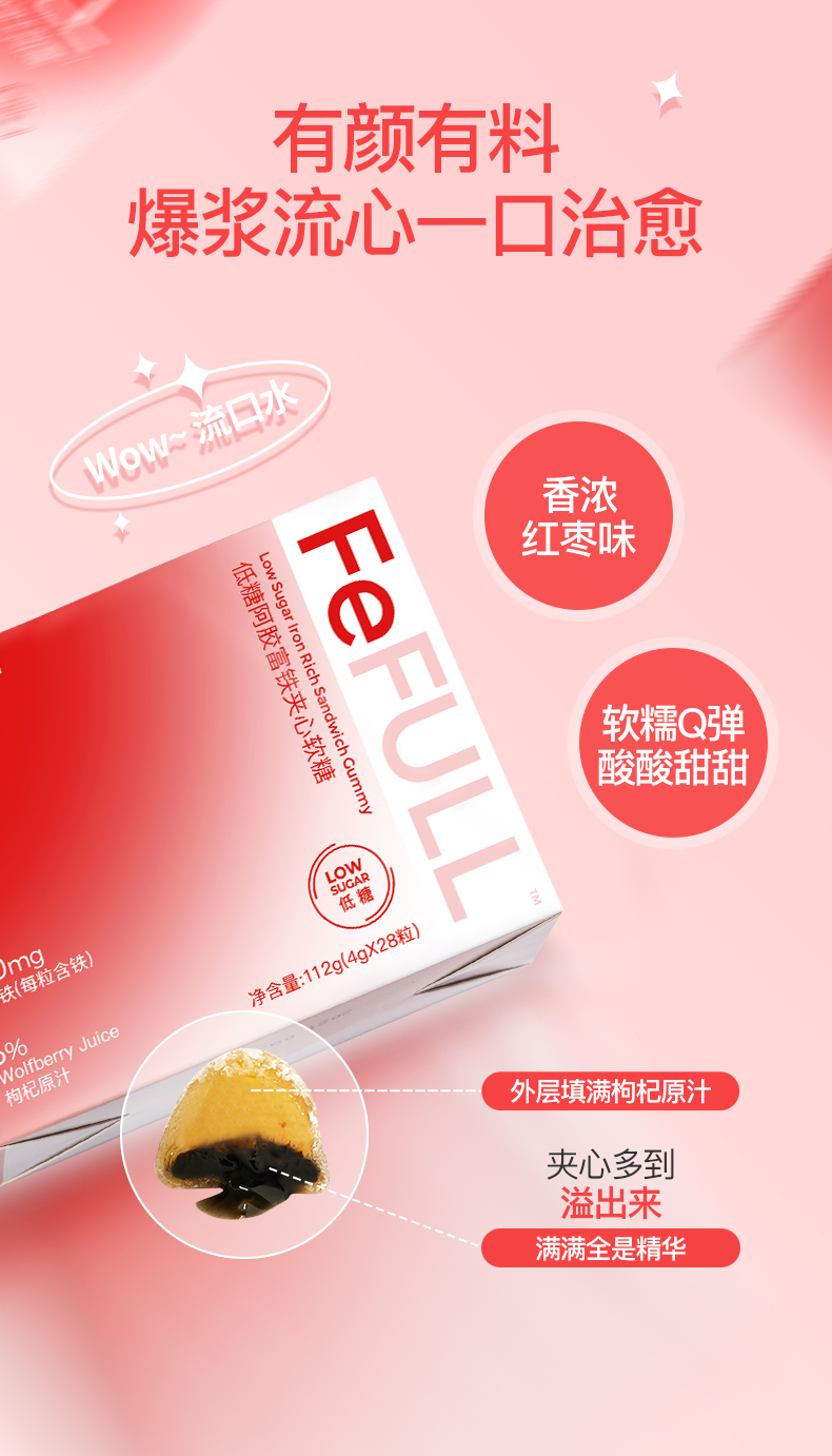 成分实验室-低糖阿胶富铁夹心软糖112g/盒