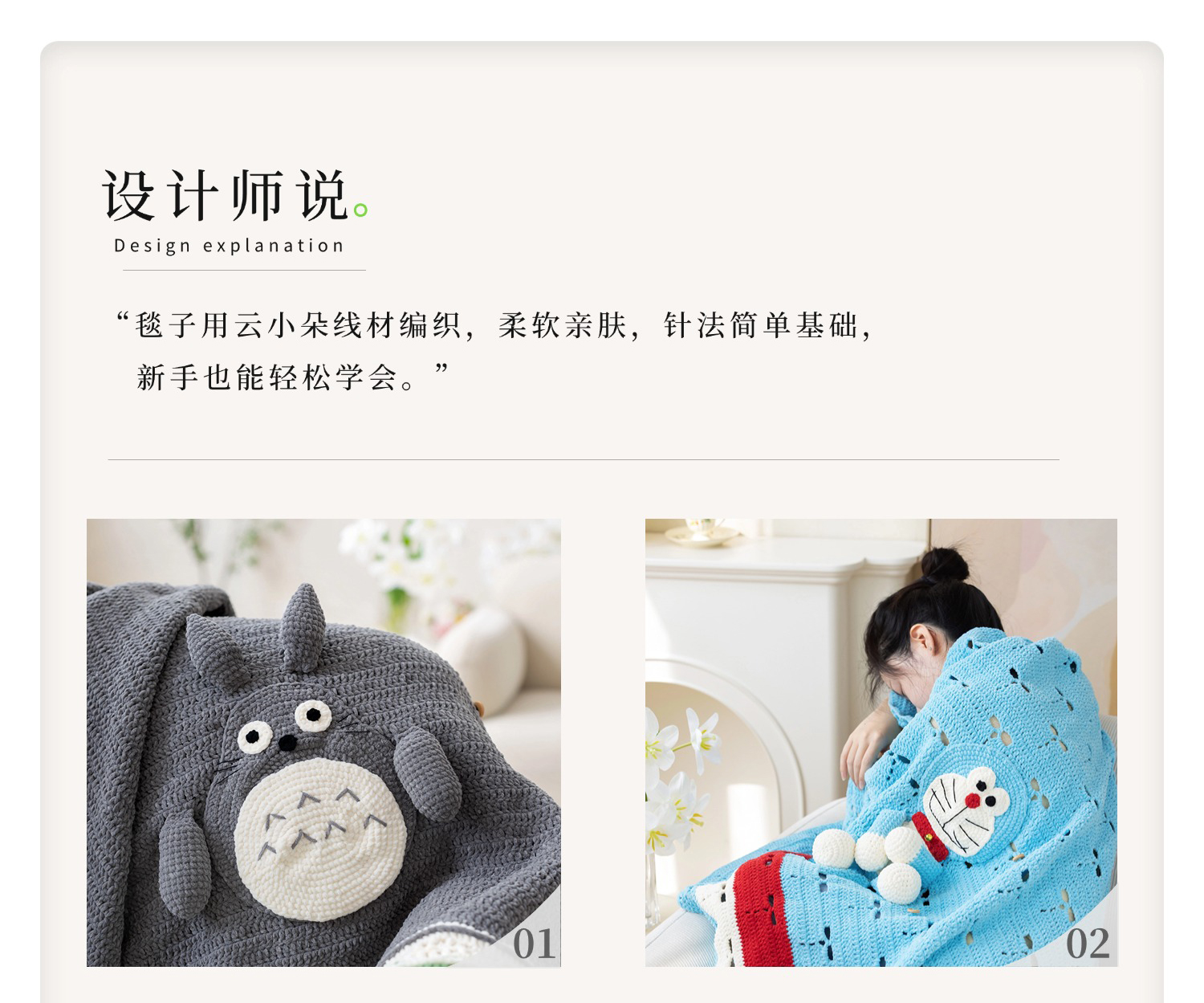 苏苏姐家蓝喵咪毯&灰喵毯-云小朵版手工diy编织钩针毯子材料包