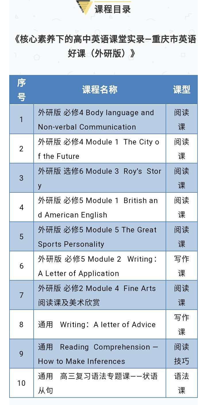 “全国英语好课项目”首波成果如期上线—《核心素养下的高中英语课堂实录—重庆市英语好课》(外研版)。