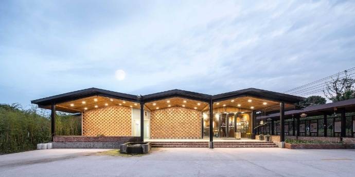 呈“一”字横卧于田野中央,与周围景色完美地融为一体