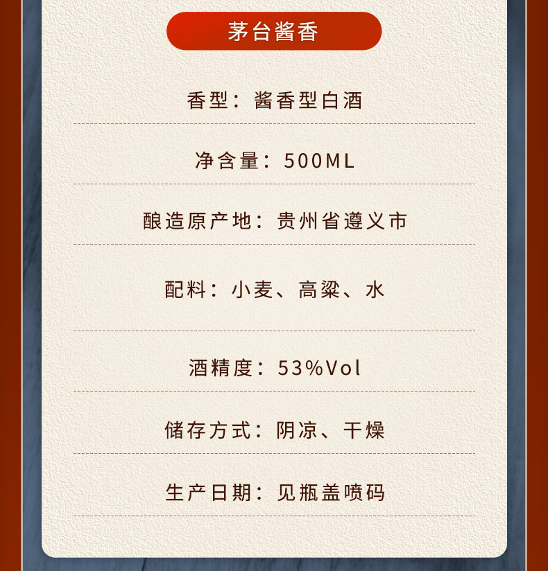 【2019年产】贵州茅台 赖茅 传禧 酱香型白酒 500ml(53度)