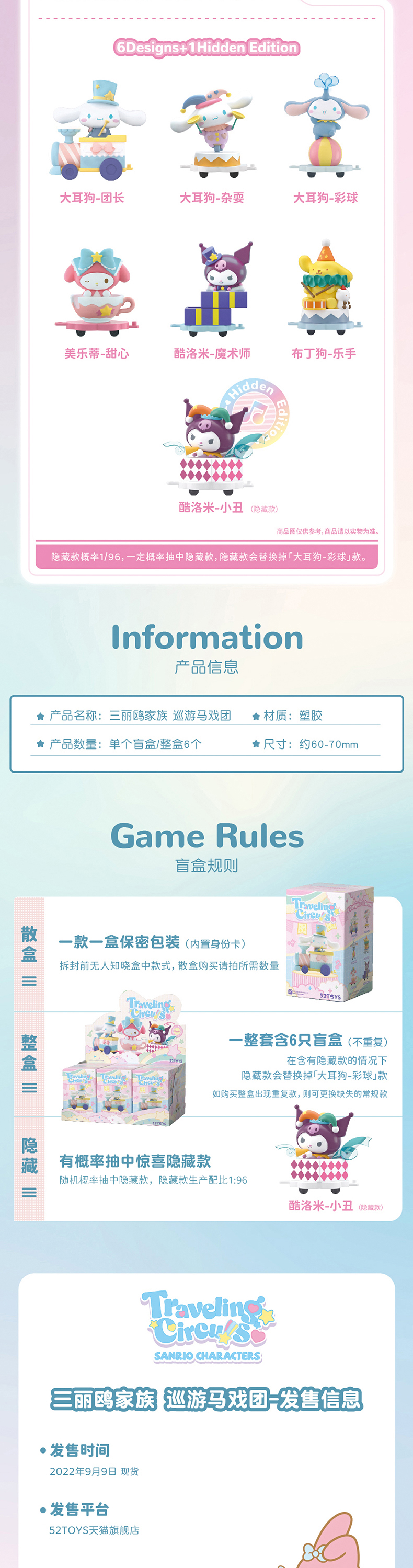 52TOYS 三丽鸥家族 马戏团系列 6只/盒 盲盒