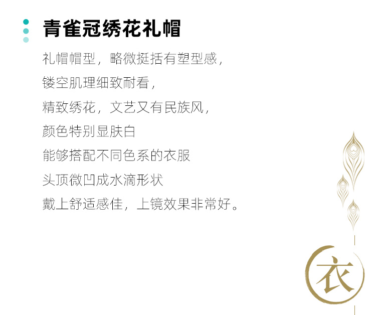青雀冠绣花礼帽 | 杨丽萍老师同款 | 双色可选| 现货加急发