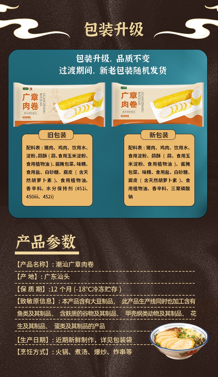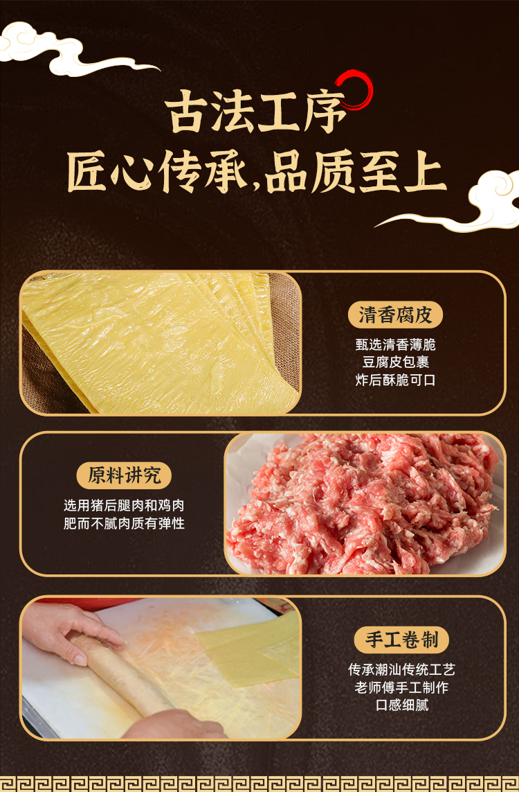 说起潮汕小美食,牛肉丸的弹牙劲道、卤味的醇厚绵长早已深入人心,但在潮汕人的餐桌上,还藏着一款低调却不可或缺的美味——广章肉卷。它或是卧在粿条汤的鲜醇里,或是浸在火锅的沸滚中,亦或是摆在宴席的餐盘上,堪称潮汕肉食界的隐藏王者。始于1899年的百年老字号李老二,四代非遗传承人的坚守,让我们可以在家就品到这口传统美味!
