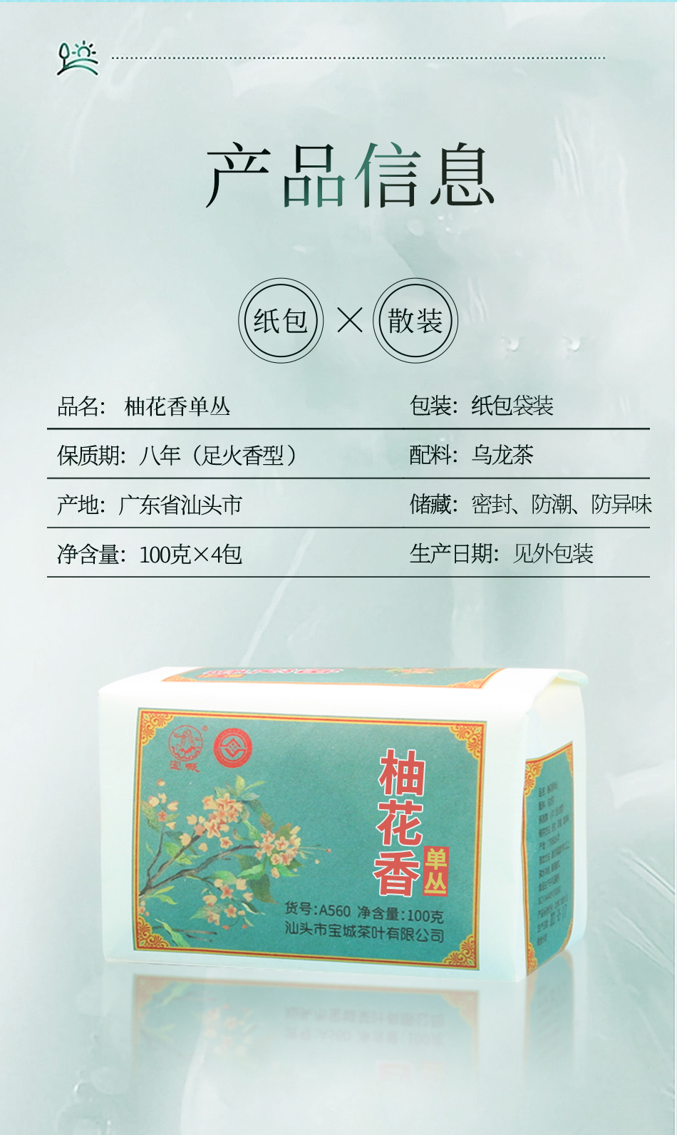 宝城柚花香单丛茶叶100克散装清香型单枞茶乌龙茶A560