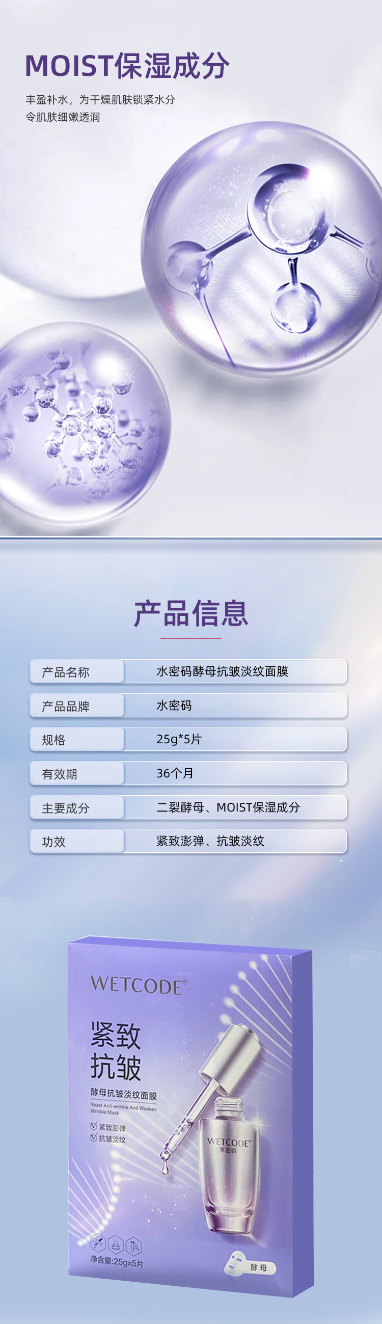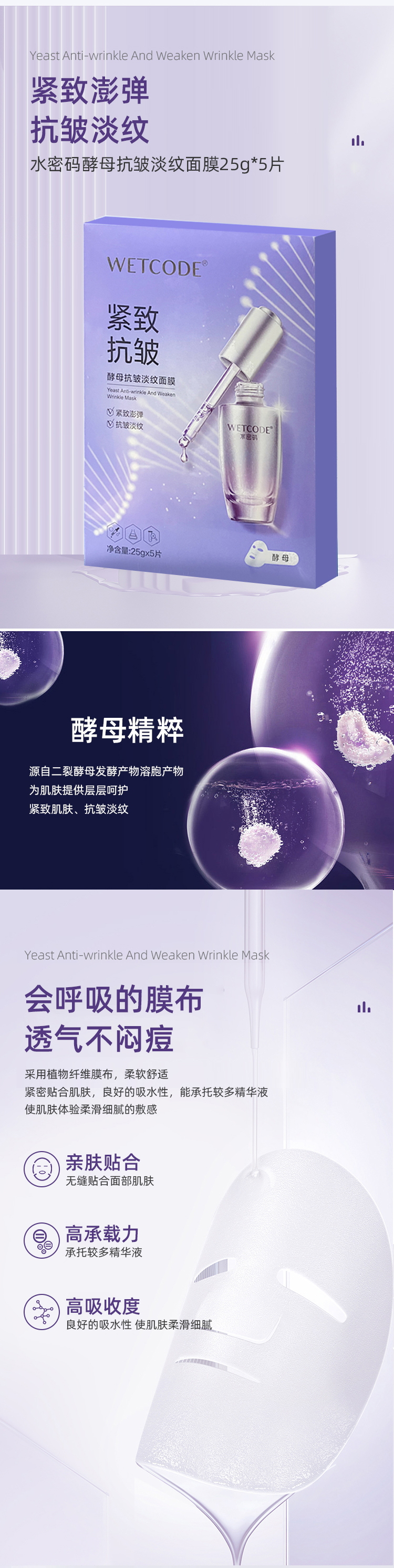 水密码酵母抗皱淡纹面膜(5片)【30172745】