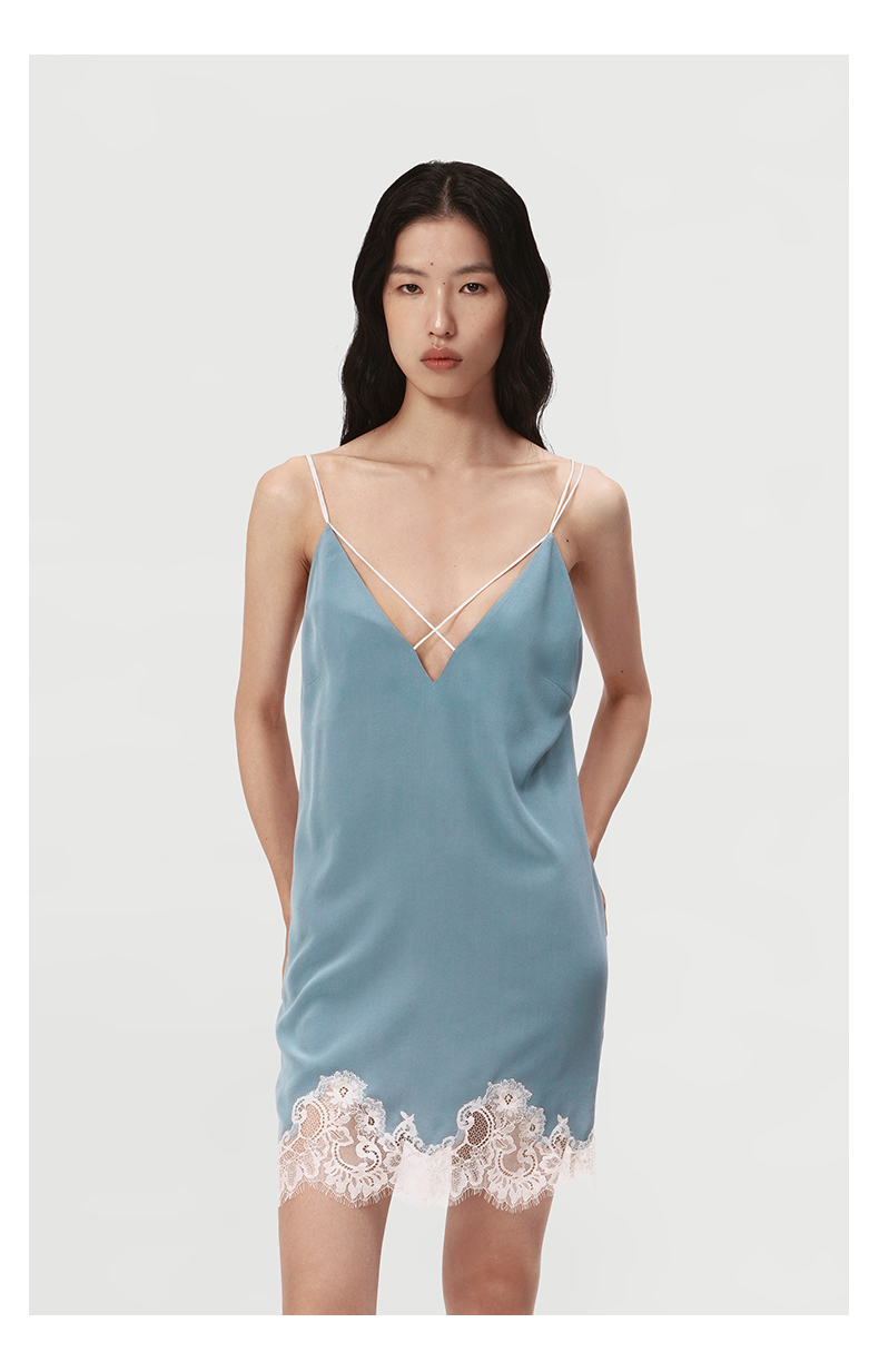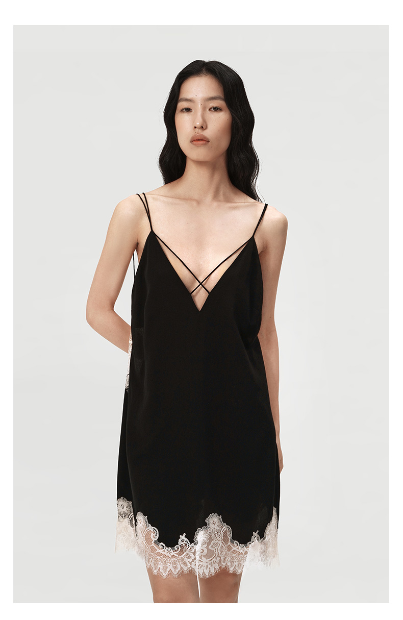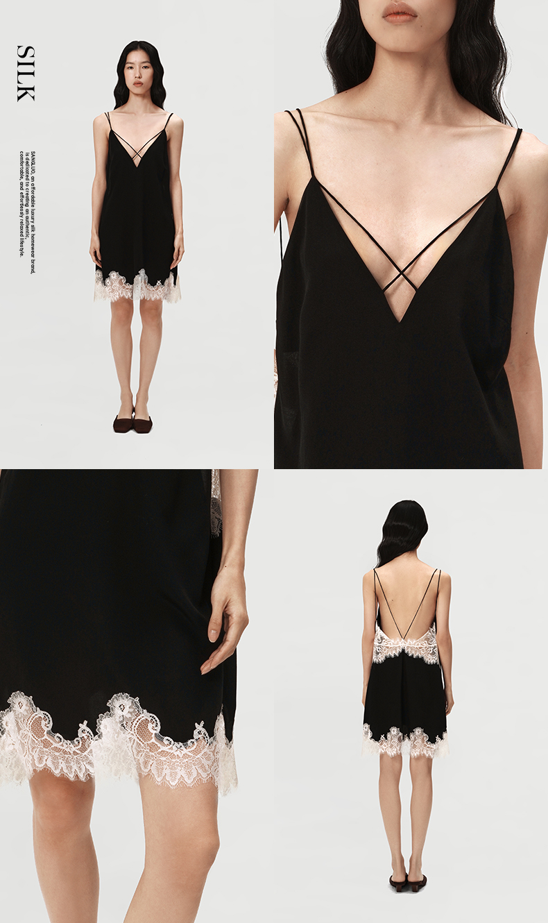 SANGLUO桑罗睡裙蕾丝拼接V领吊带裙礼物