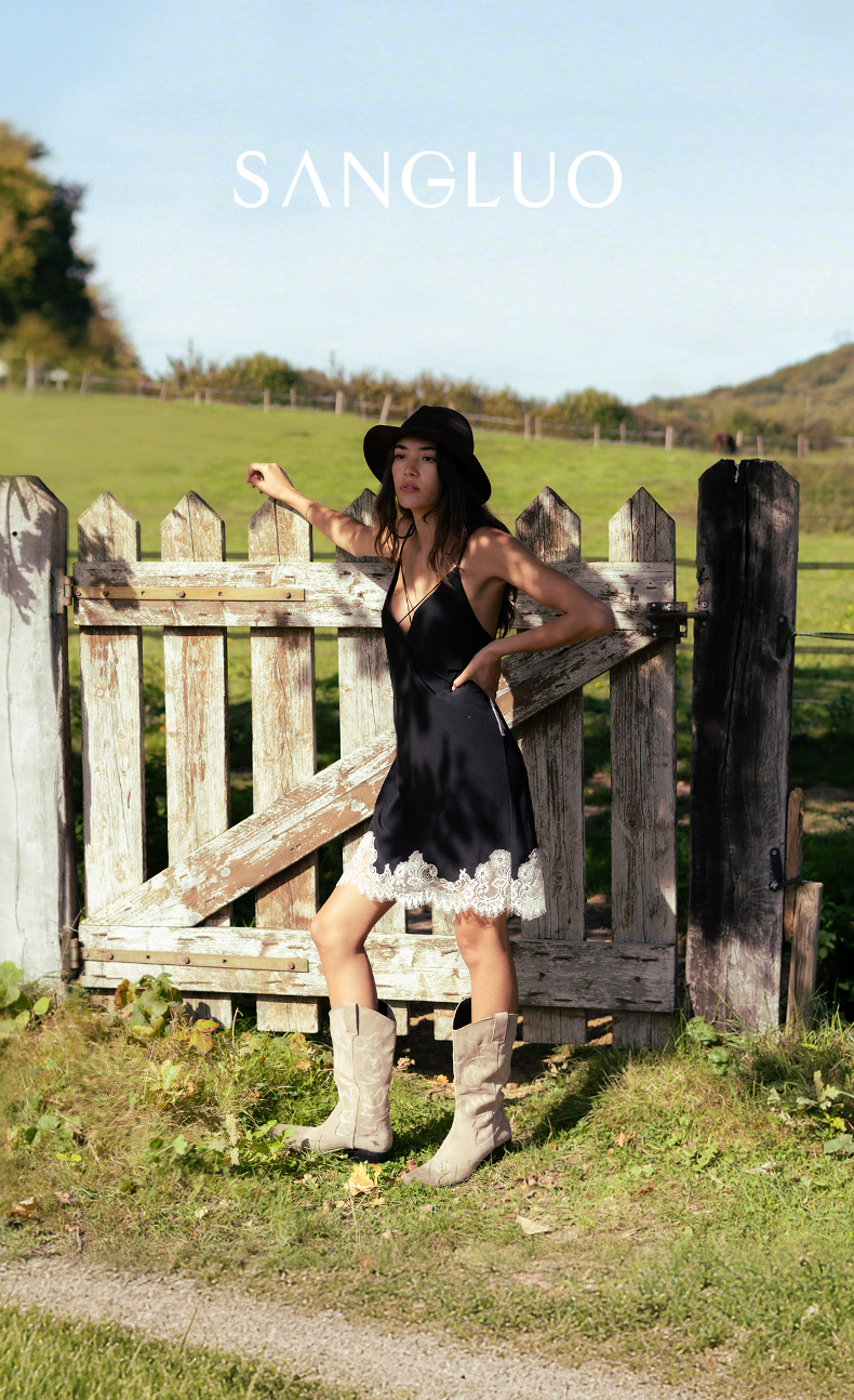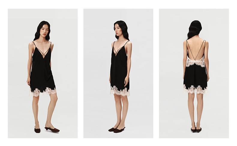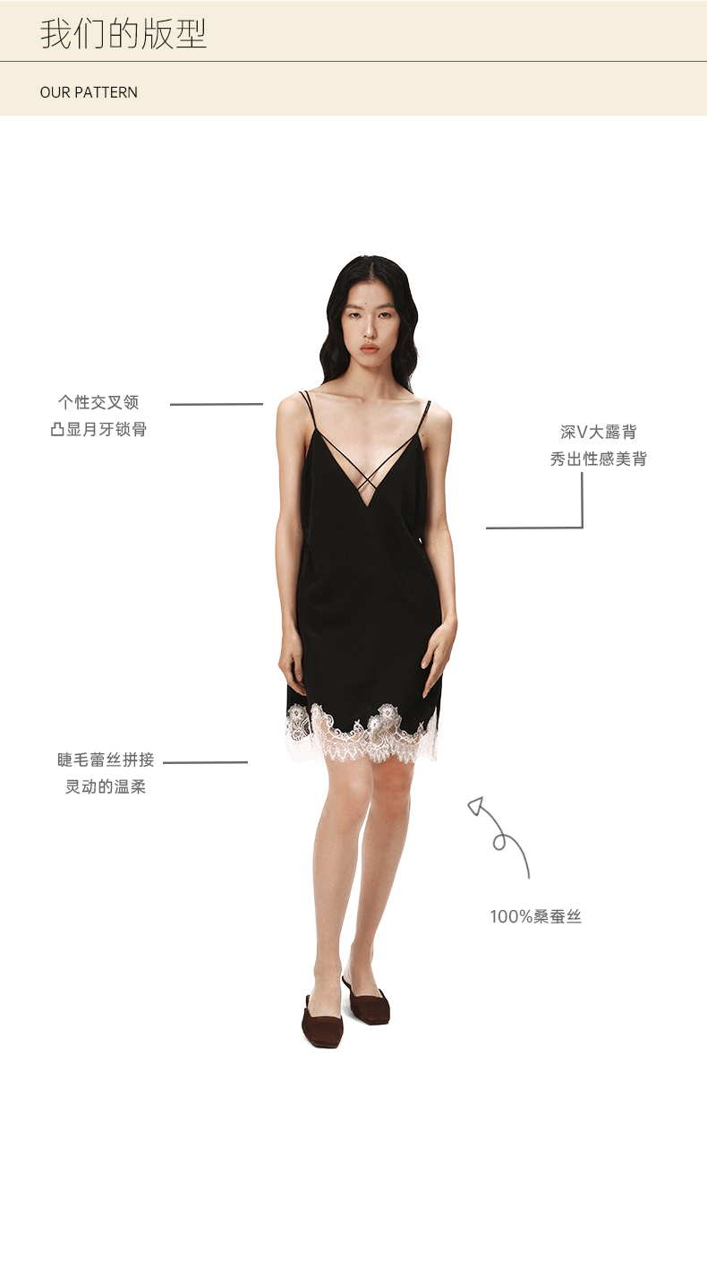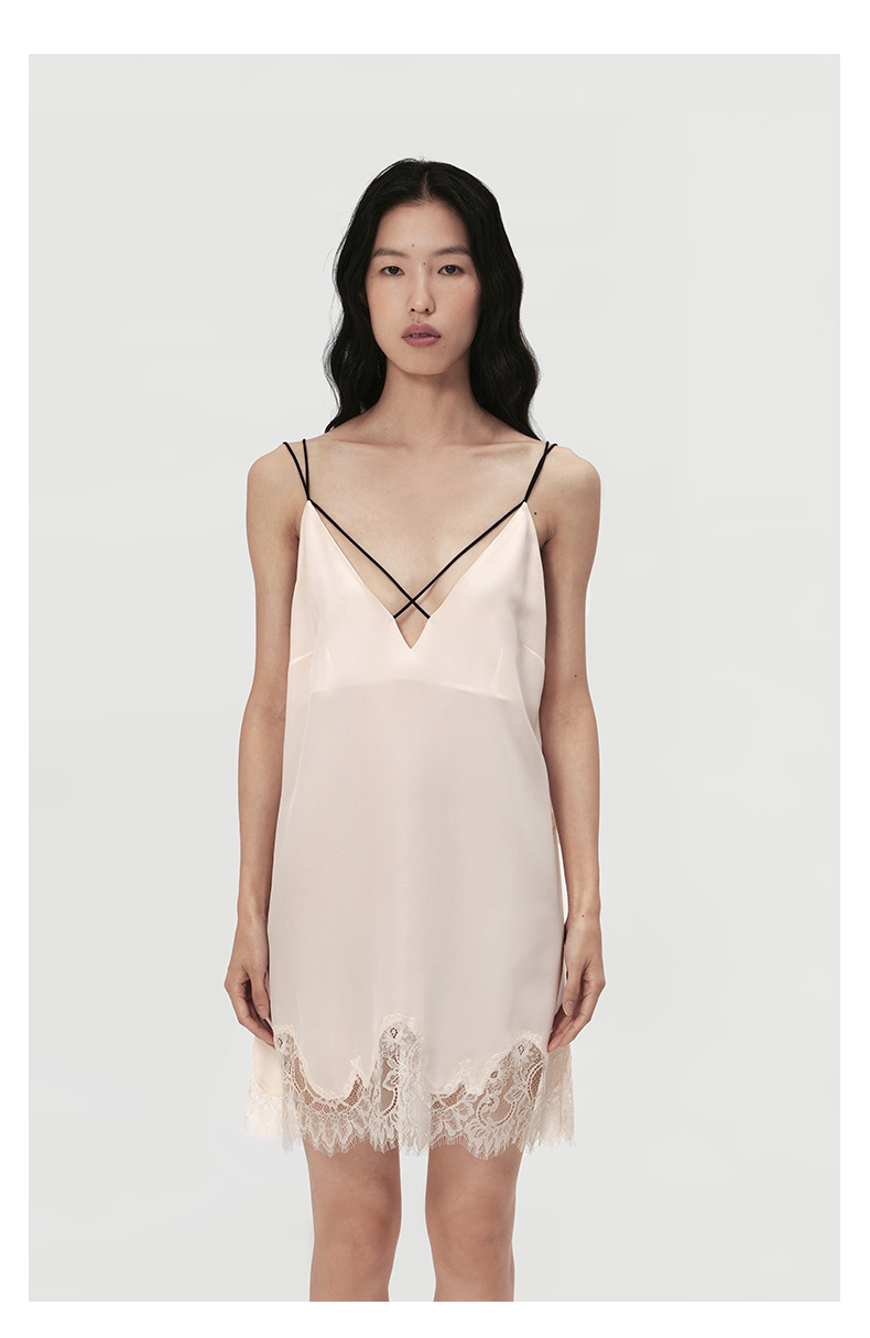 SANGLUO桑罗睡裙蕾丝拼接V领吊带裙礼物