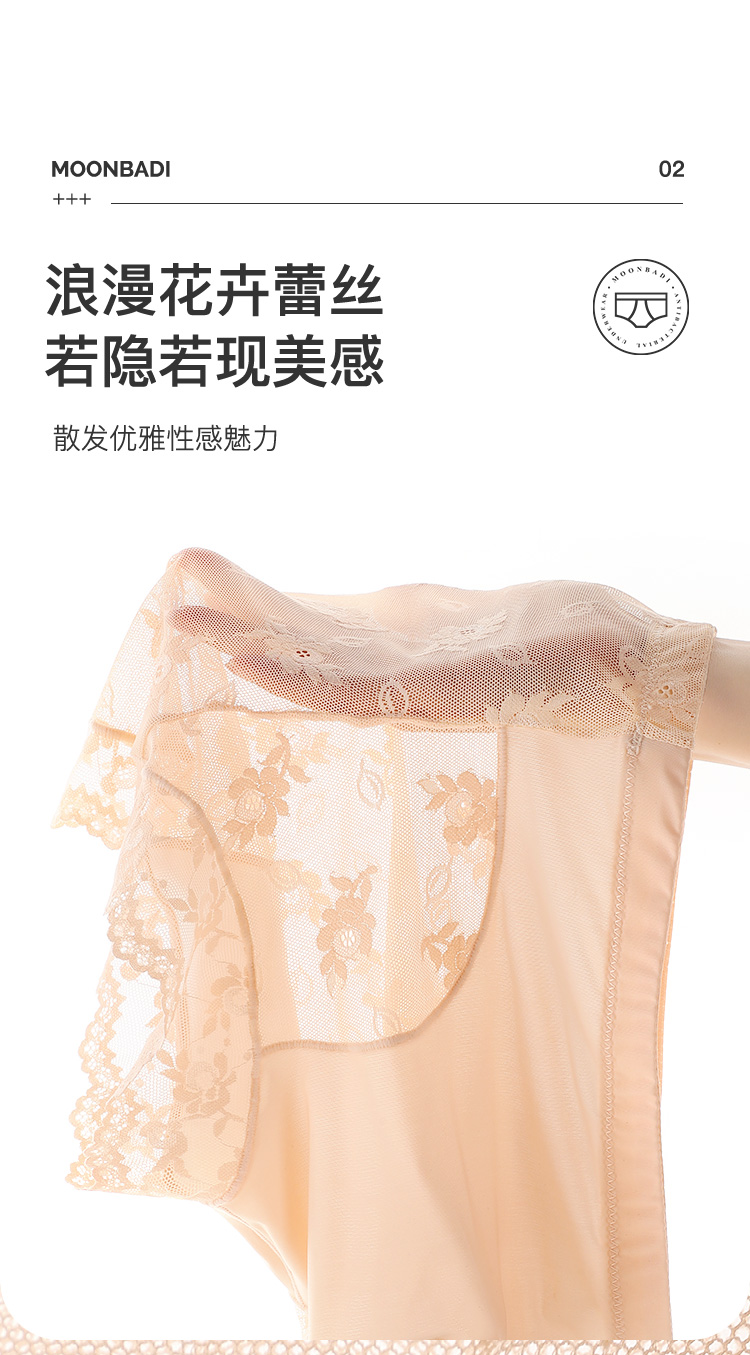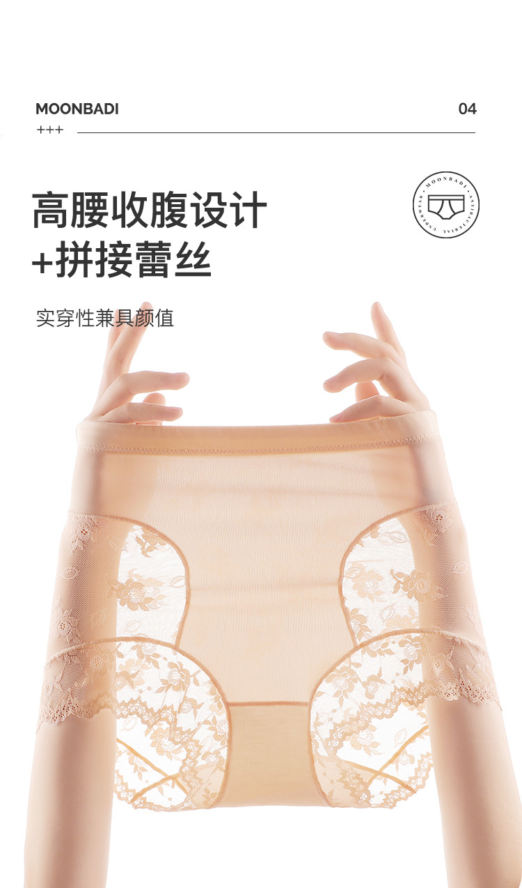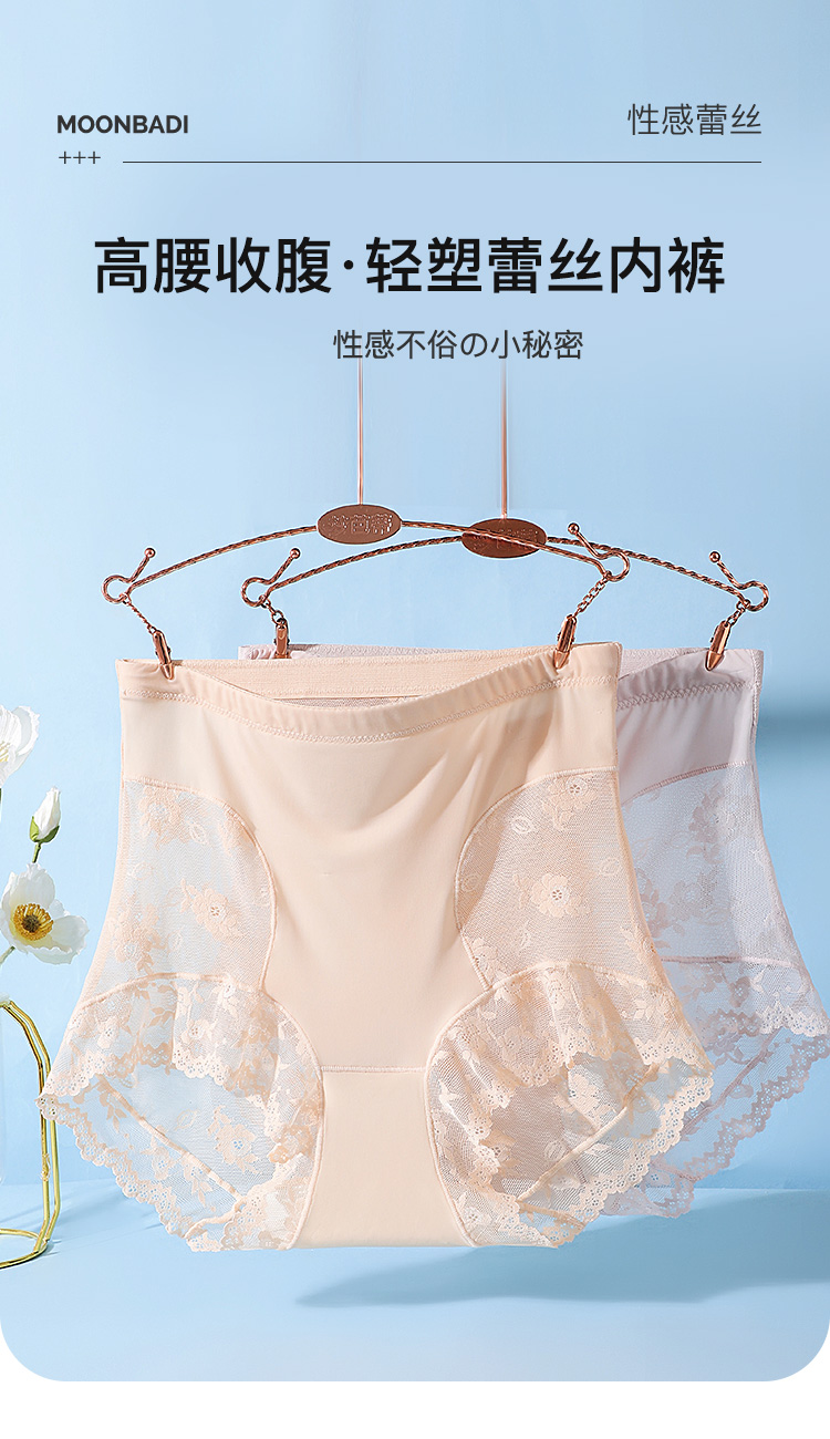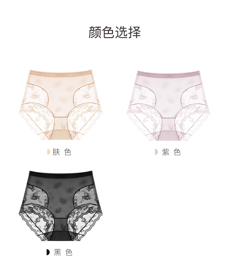 轻薄透气蕾丝塑身裤内裤女高腰收腹全包臀含蚕丝底裆1553姿花秋月内裤2条装