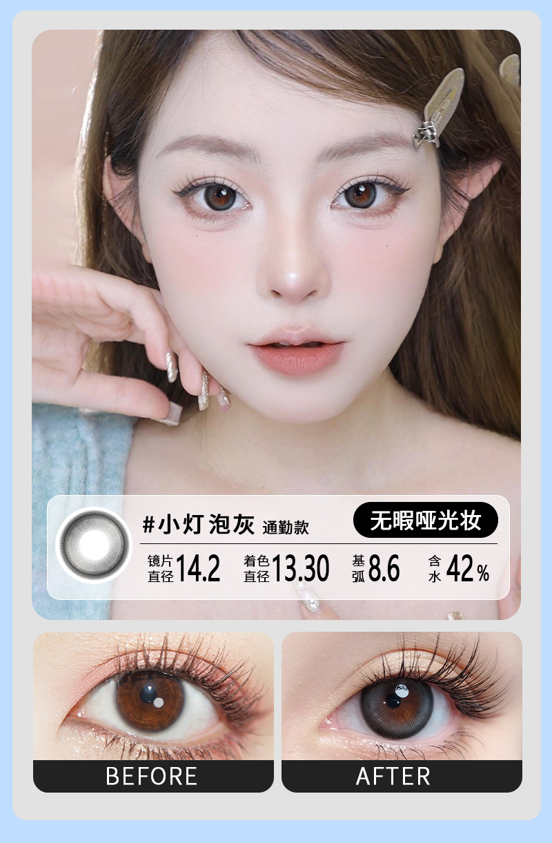 小灯泡灰色日抛美瞳2片装14.2小直径YR02不同度数拍二