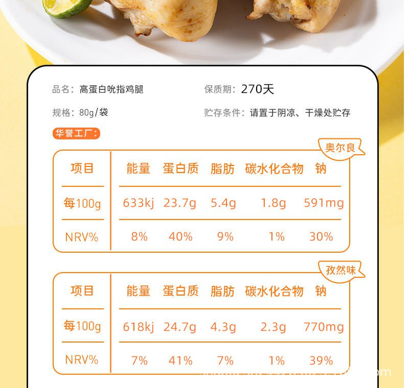 鲨鱼菲特 吮指去皮鸡腿新奥尔良味高饱腹鲜嫩多汁健身代餐80克/袋