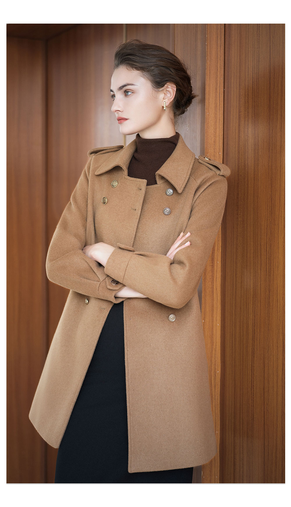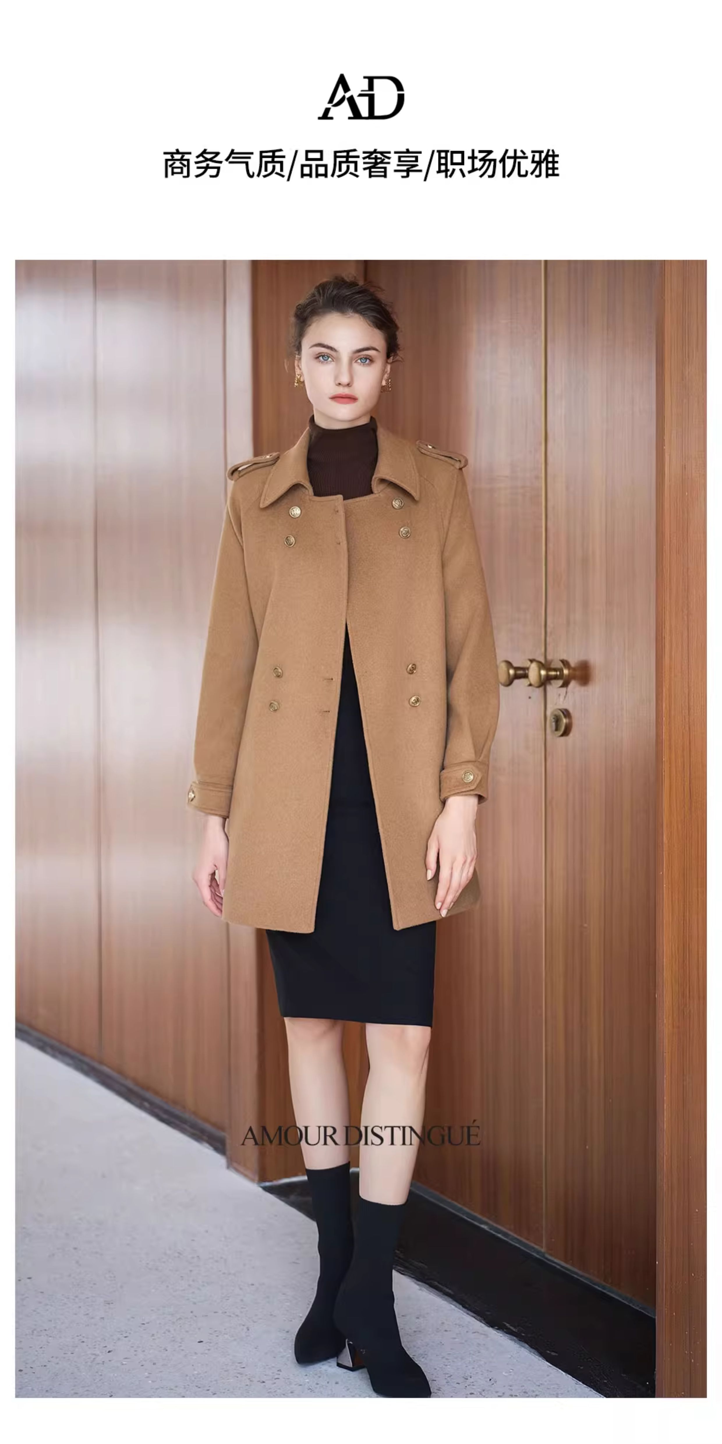 AD高端双面羊毛大衣女2025新款秋冬高级感气质名媛毛呢外套中长款