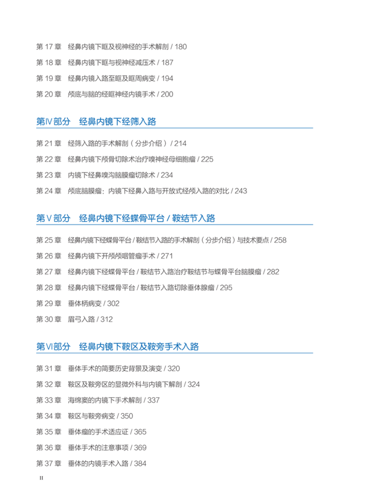 本次第2版是第1版的扩展和延伸,纳入了更多的新主题,旨在服务更多的临床机构。本版的聚焦点在于对内镜下颅底解剖的深入认知,并与实际手术病例相结合,这是神经外科医生和耳鼻咽喉-头颈外科医生开展颅底手术必须掌握的基础知识。全书共14个部分72章,涵盖了经鼻内镜颅底与脑外科手术的方方面面,包括器械、解剖学、手术技术和潜在的并发症等,书中大量的解剖描述及精美的图片都为相关专业的医生开展此项工作提供了巨大的参考价值。阅读本书,就像与精通这些技术的外科医生一起观察、学习、思考。