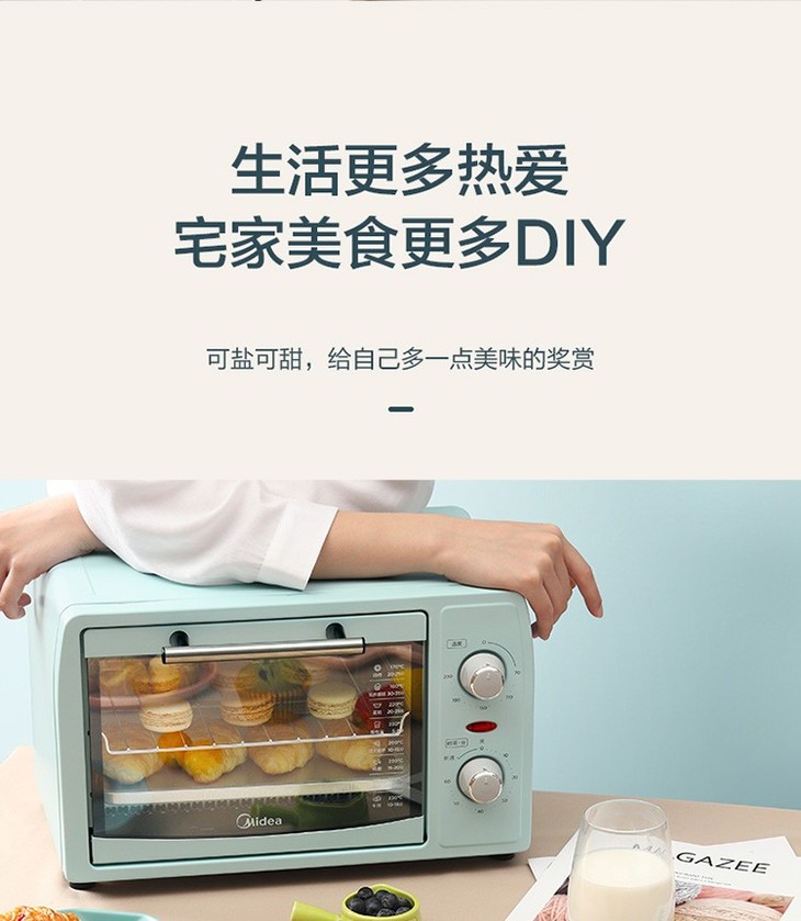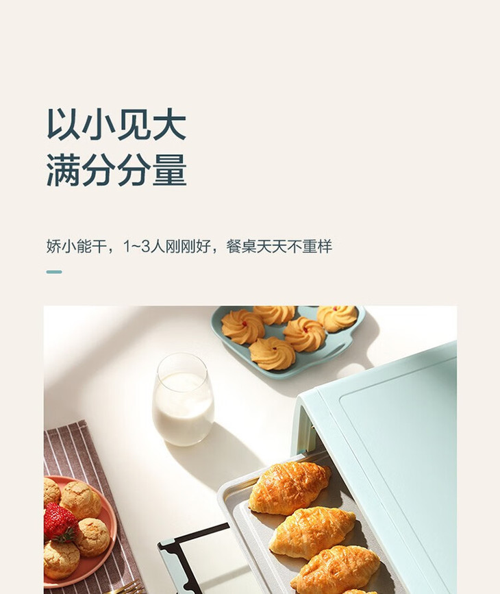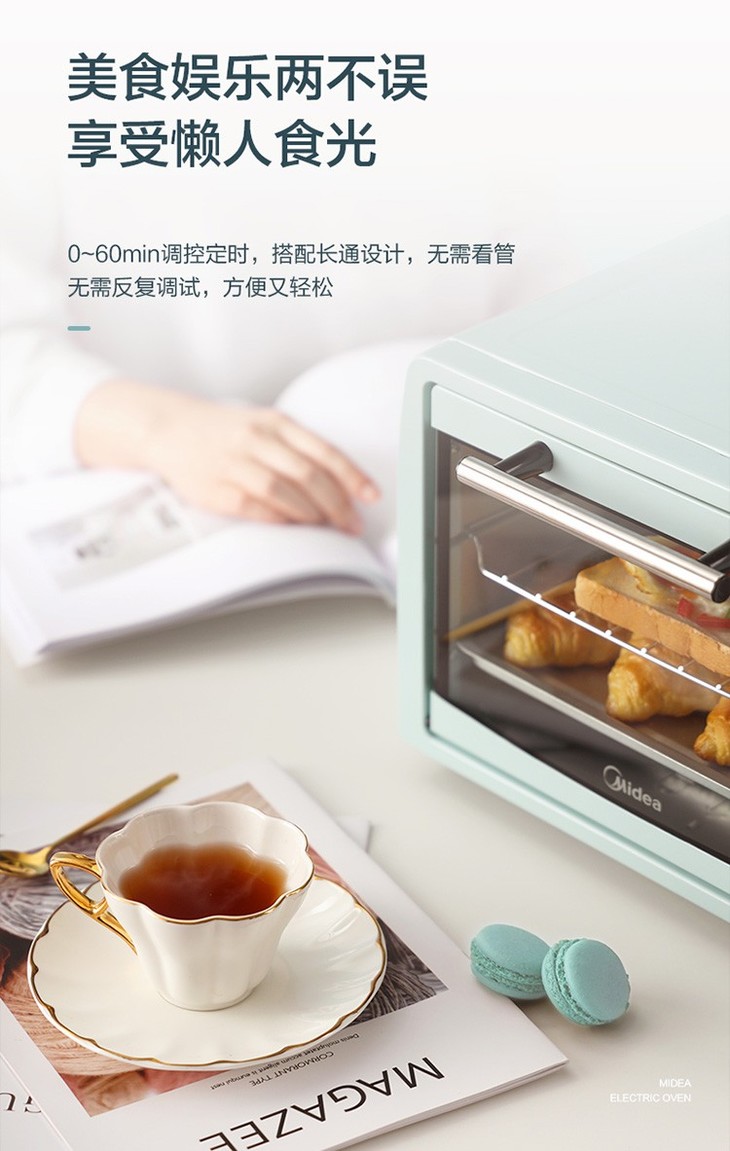 美的(Midea)家用小烤箱 上下石英管均匀烘焙 12L 多功能迷你烤箱PT12B0 淡雅绿