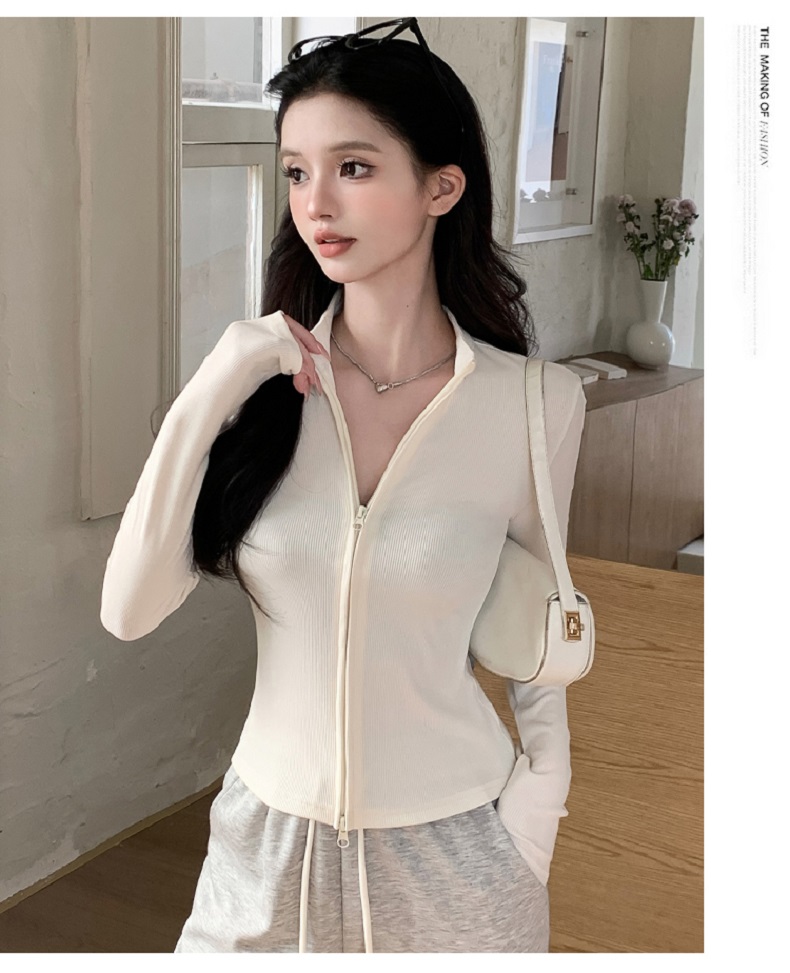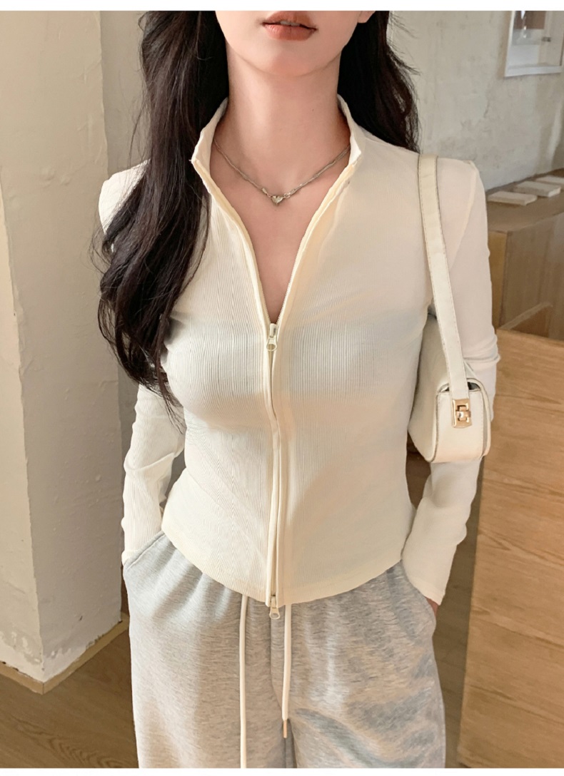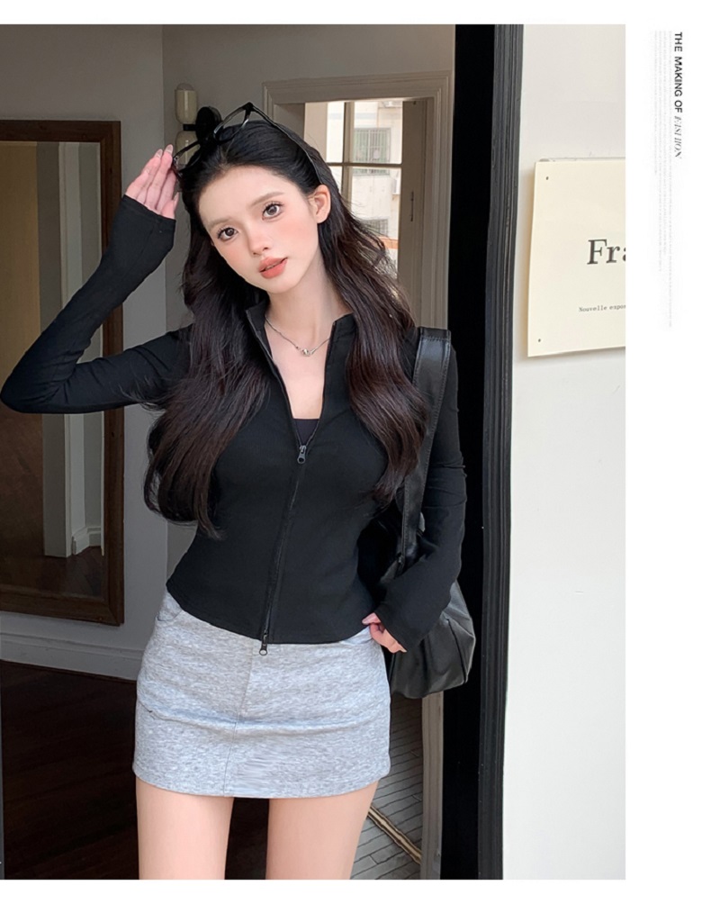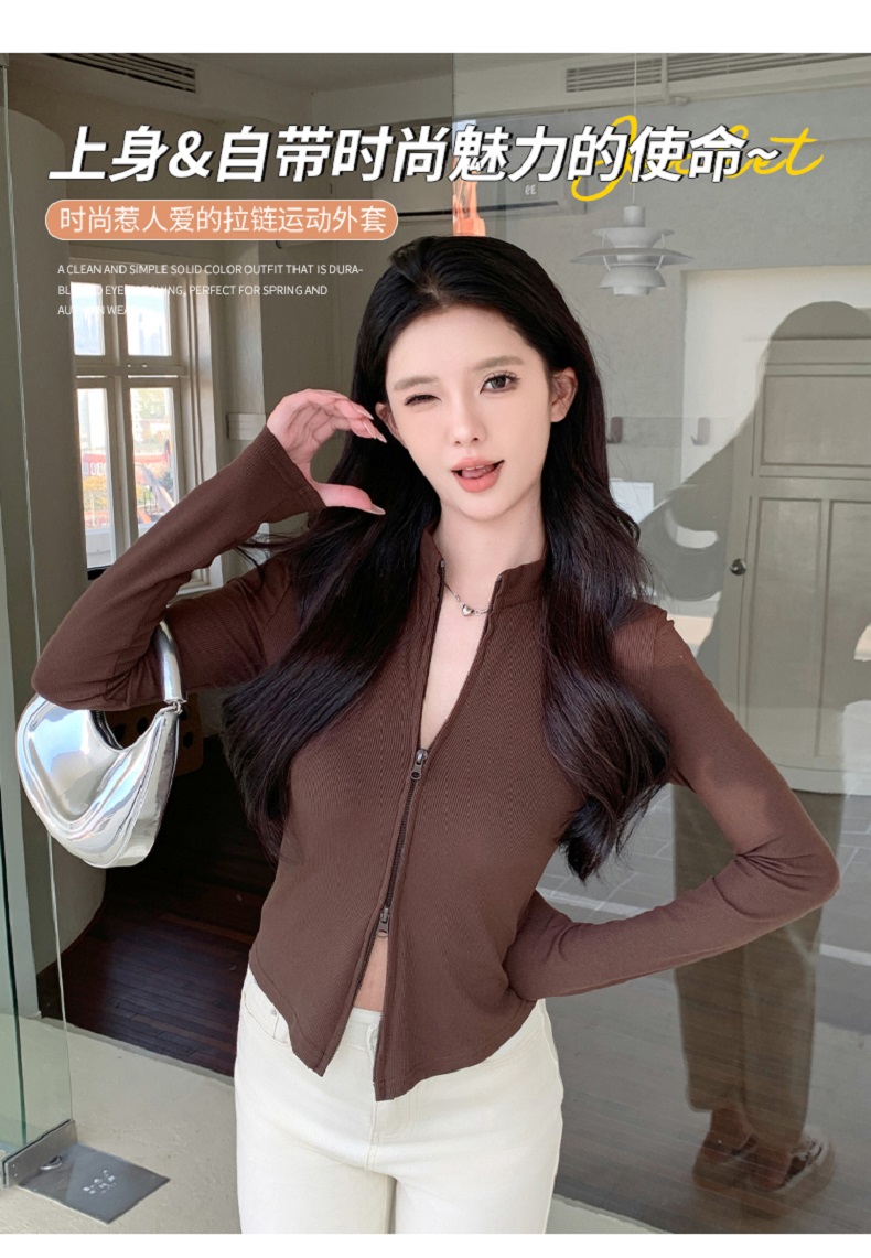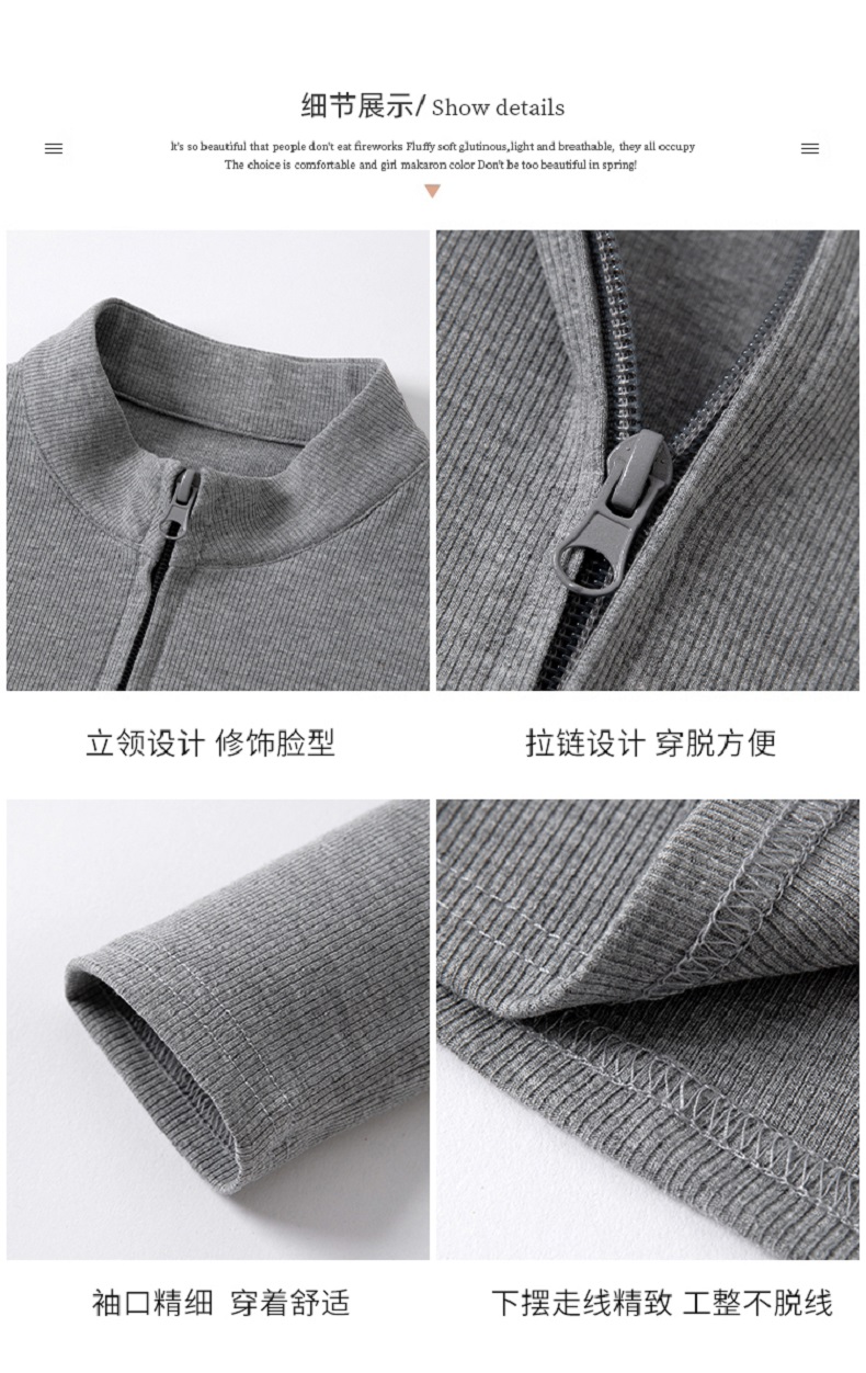 【时髦百搭,春夏必备】春夏季新款双拉链立领灰色夹克外套女高级感短款外搭螺纹针织开衫100%