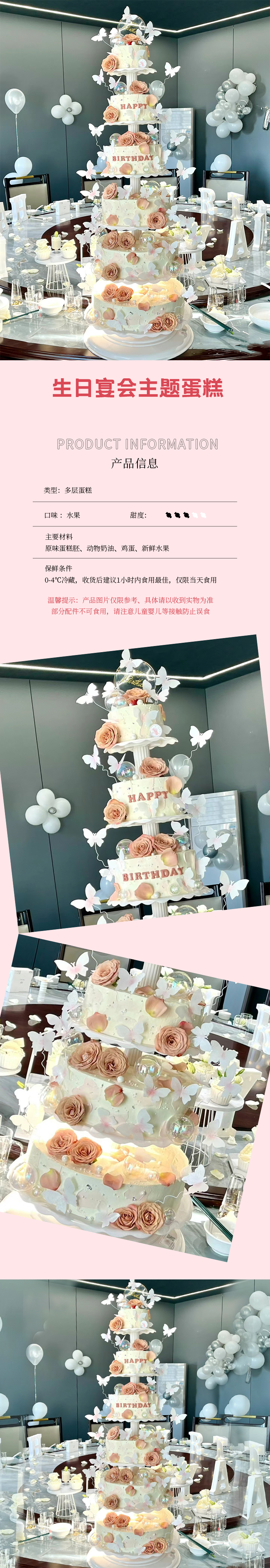 生日宴会主题蛋糕-鲜花蝴蝶鲜果夹心-30磅【生日蛋糕】