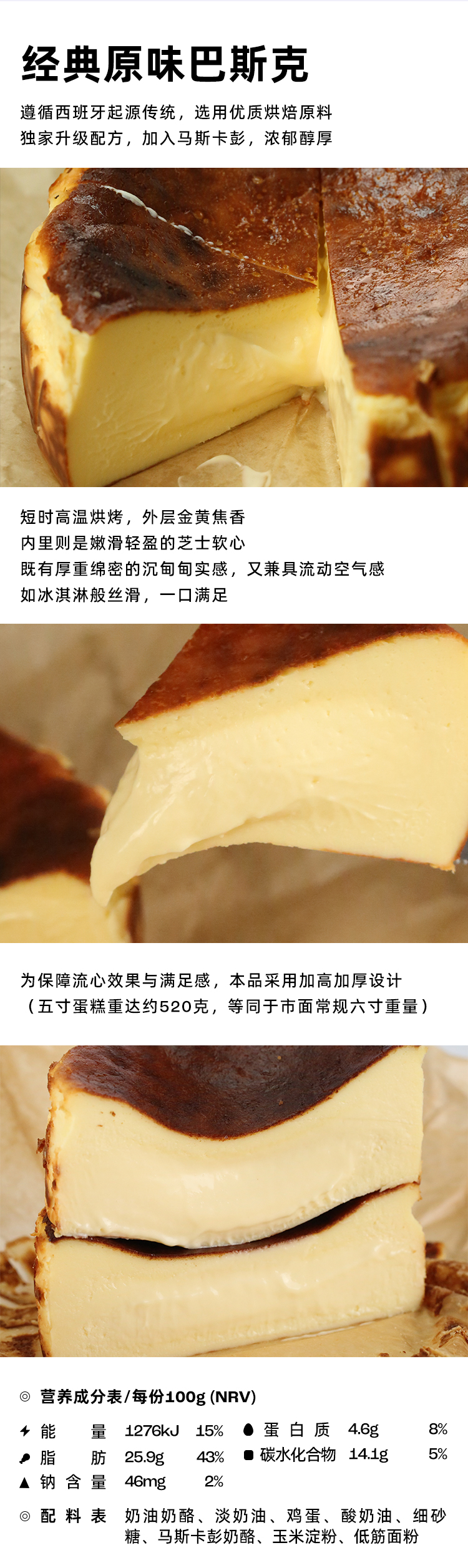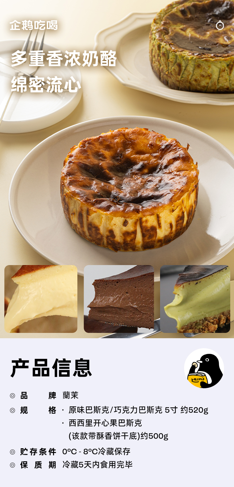 企鹅市集|蘭茉巴斯克5寸(520g) 原味/开心果/抹茶/巧克力可选 三重香浓奶酪 口感绵密流心 兰茉