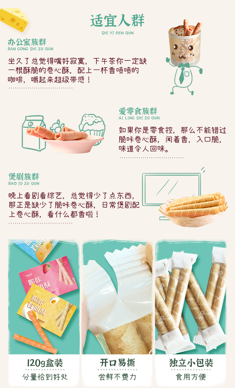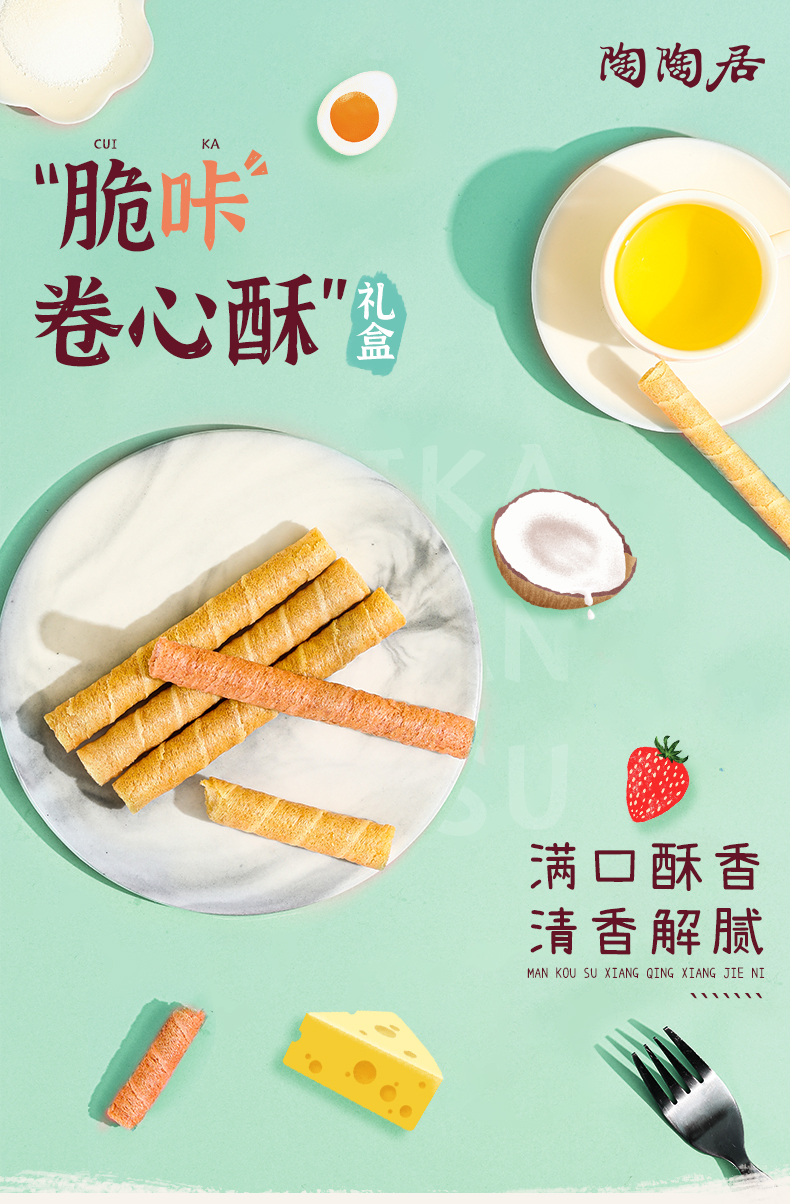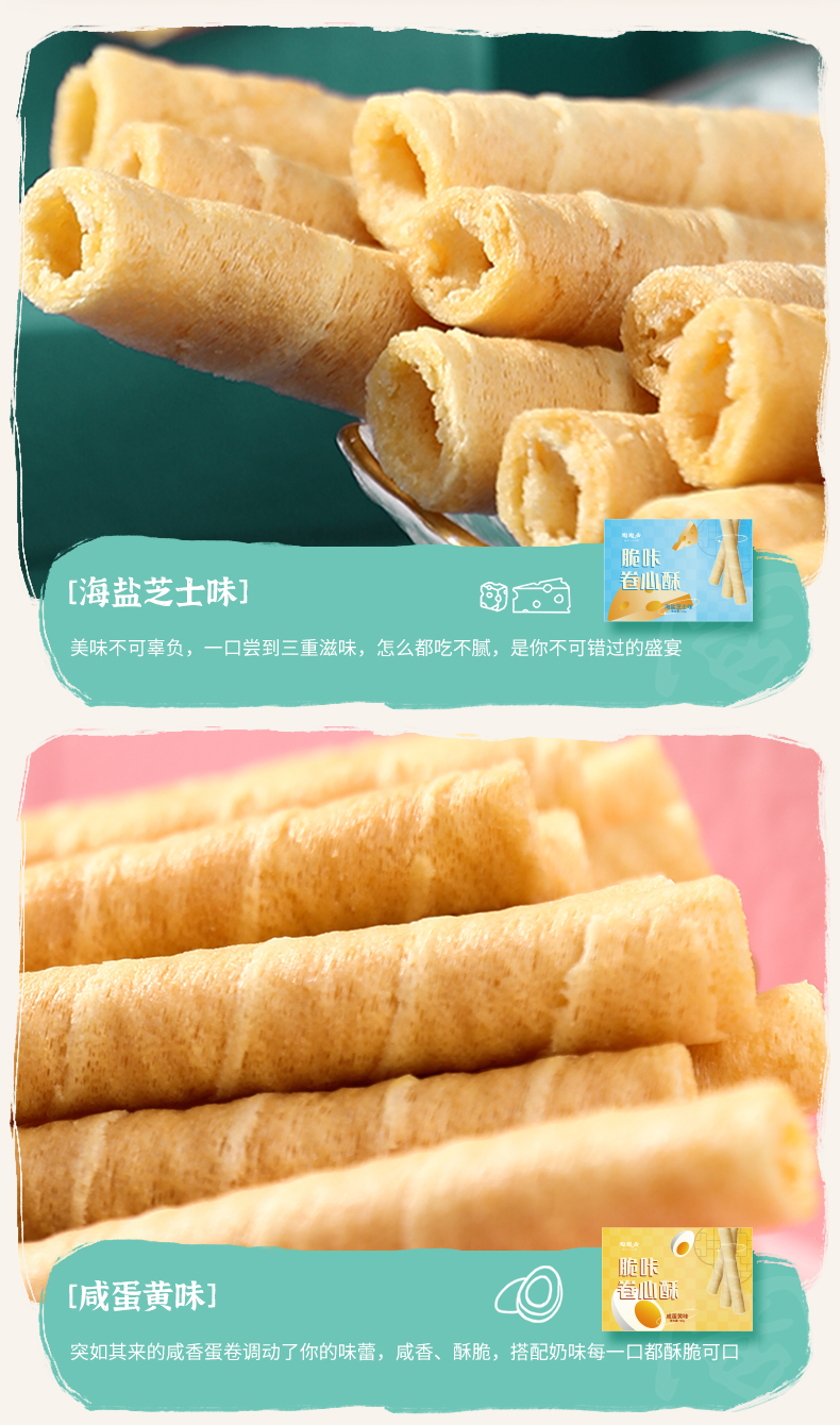 【陶陶居-手信 】脆咔卷心酥120g (咸蛋黄味,海盐芝士味,草莓味, 三款口味可选) 广式下午茶点休闲零食