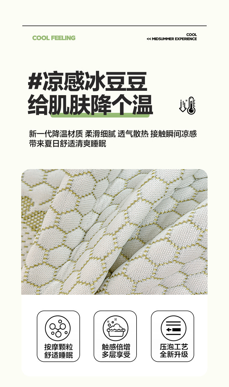 【A类母婴级❗️凉感冰豆豆凉席】清爽入睡「迎接夏日小美好」新一代降温材质柔滑细腻,透气散热接触瞬间涼感,带来夏日舒适清爽睡眠,冰丝席床单垫可机洗夏空调软席子三件套L