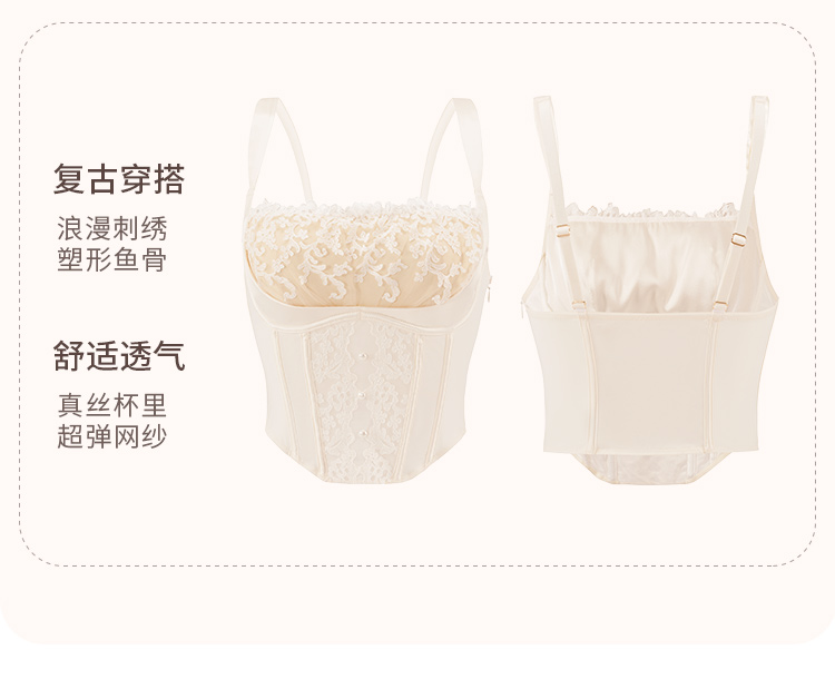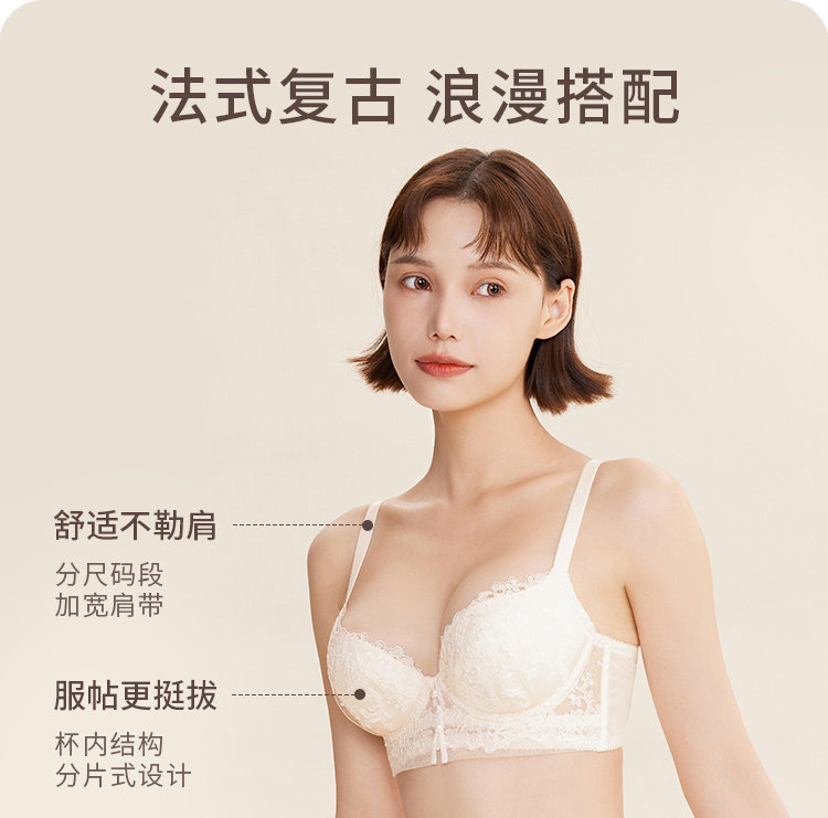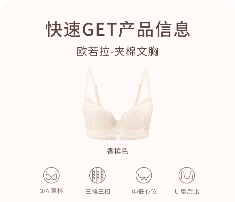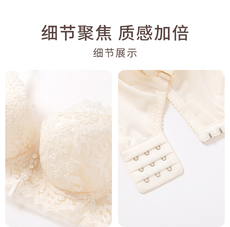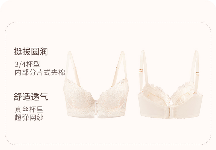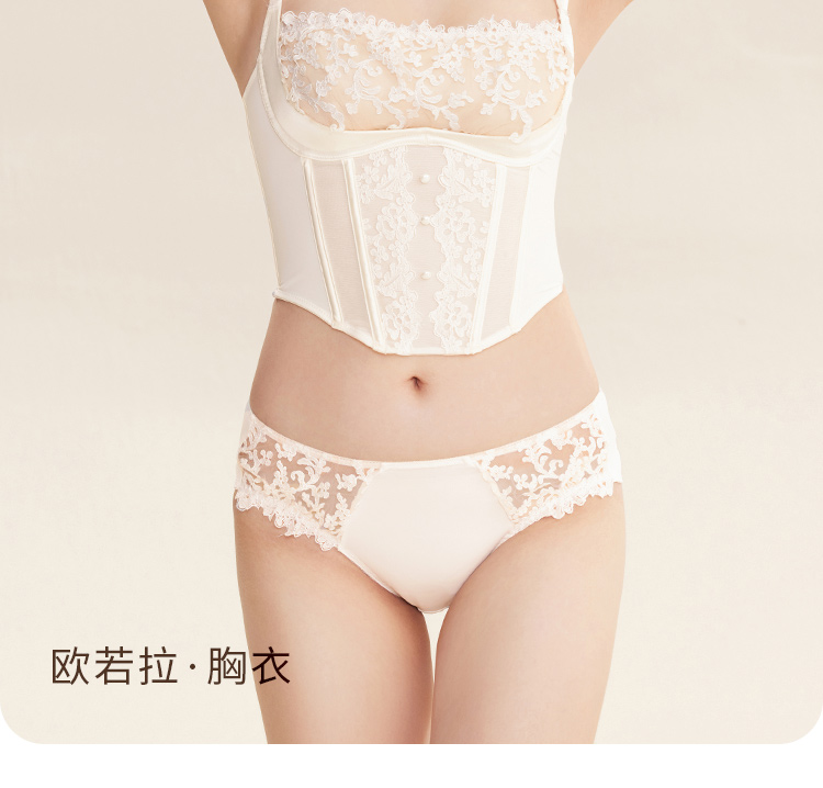 【会员专享】奶糖派大杯文胸欧若拉系列真丝法式奢华刺绣夹棉3/4杯文胸蕾丝胸衣内裤女