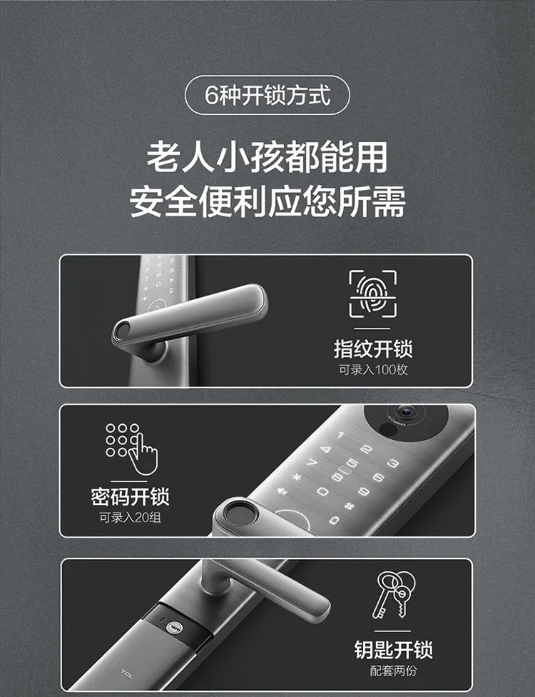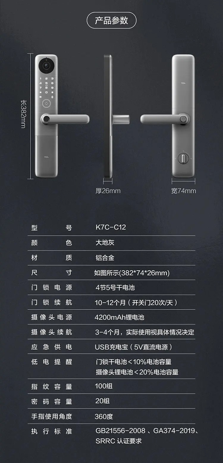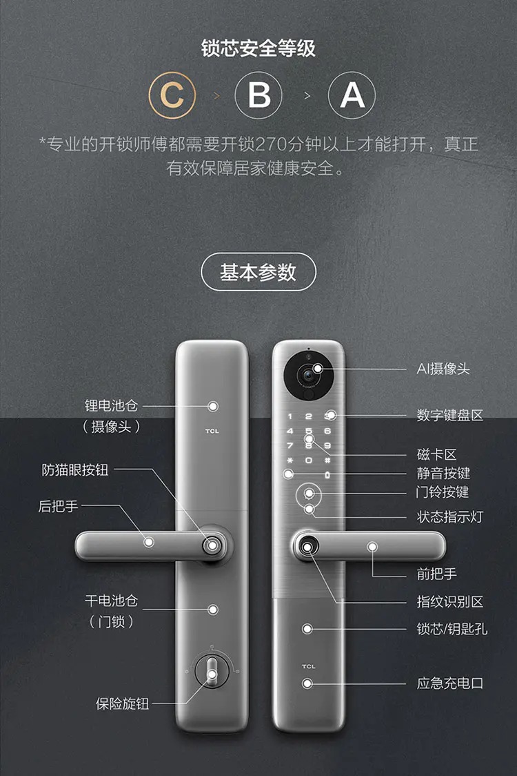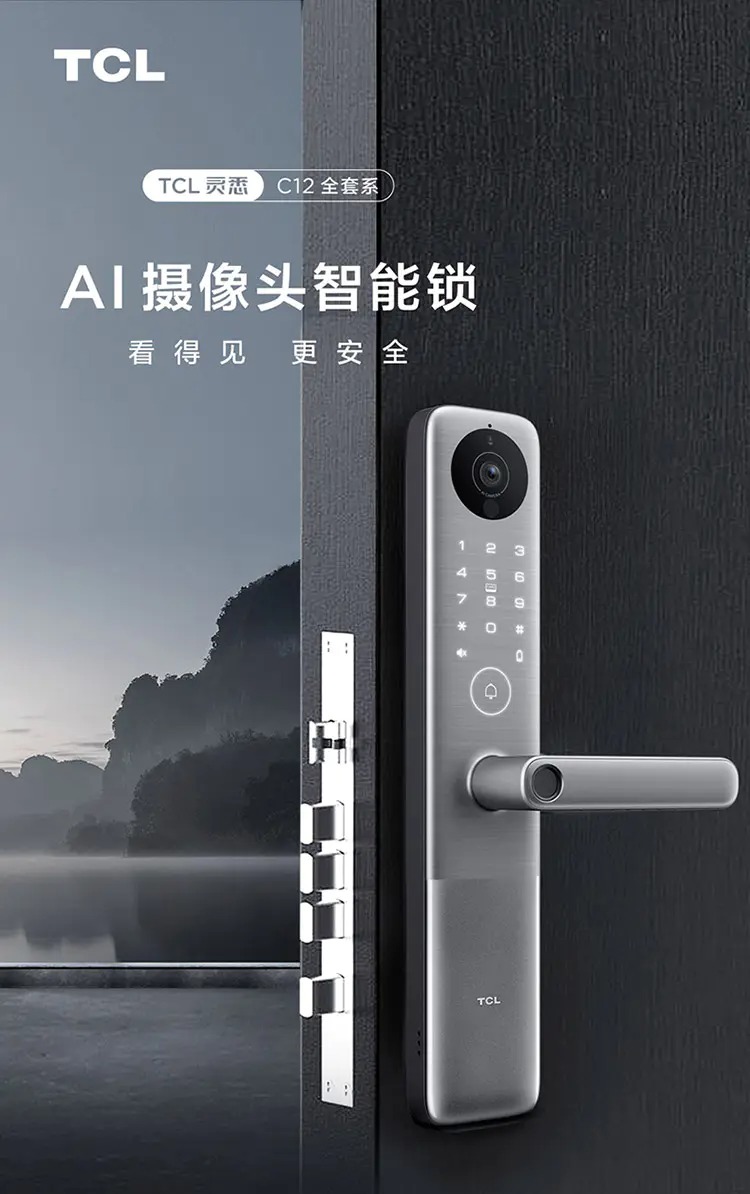 TCL灵悉C12全套系AI家电指纹锁K7C-12AI摄像头智能锁远程视频通话AI智慧监测智能场景联动