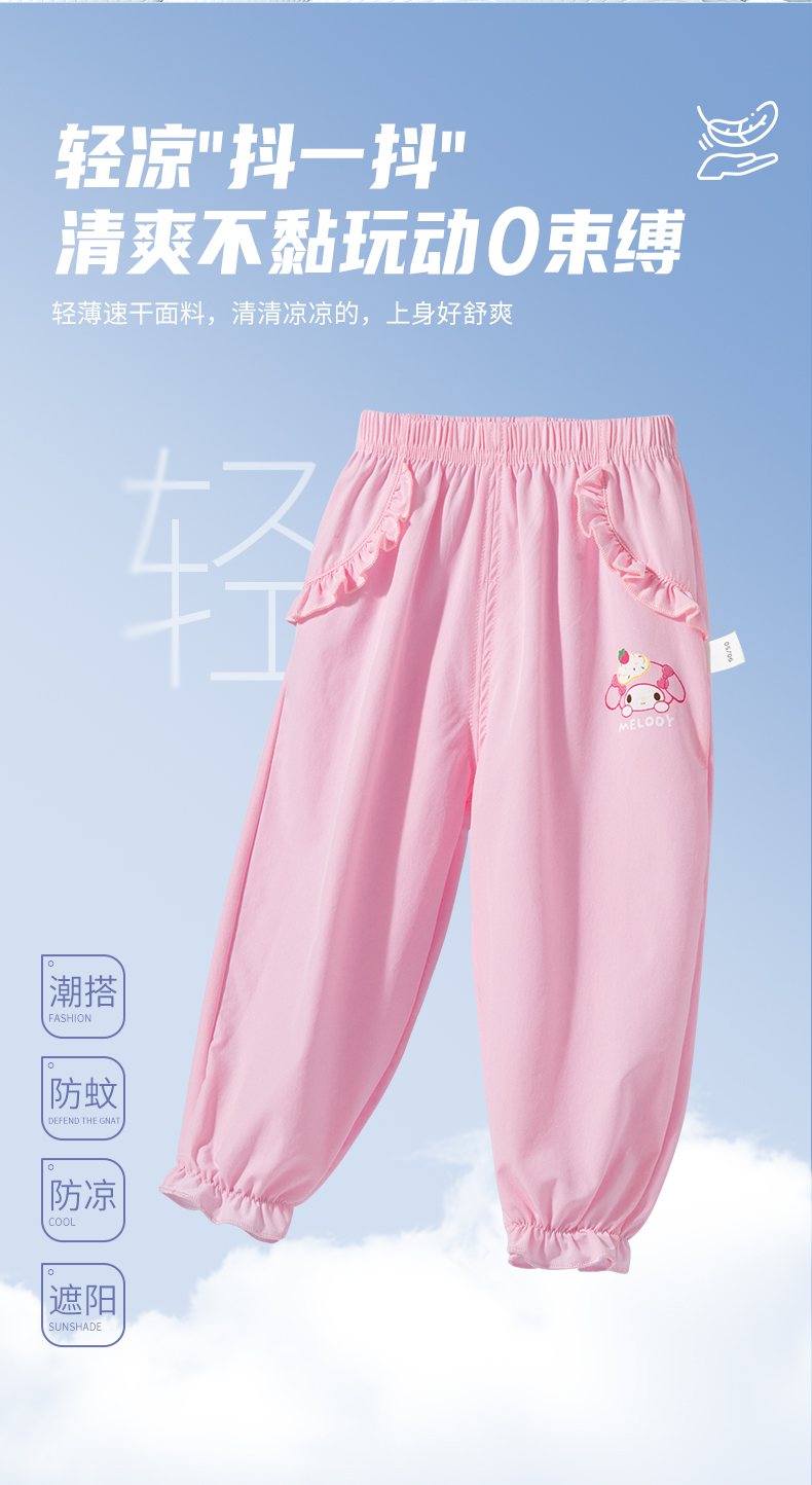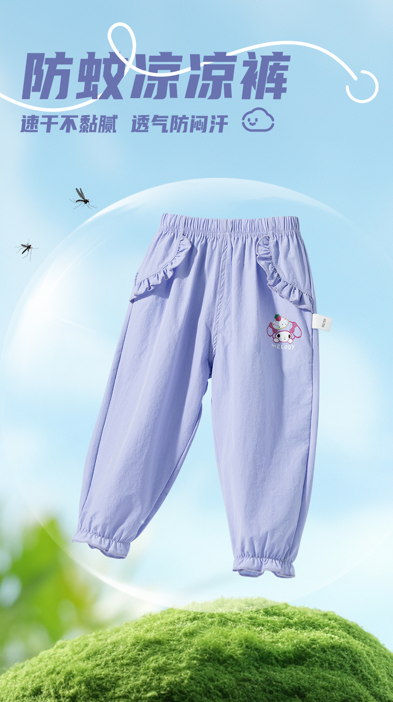 贝贝怡女童2025年夏季新款防蚊裤速干百搭休闲长裤