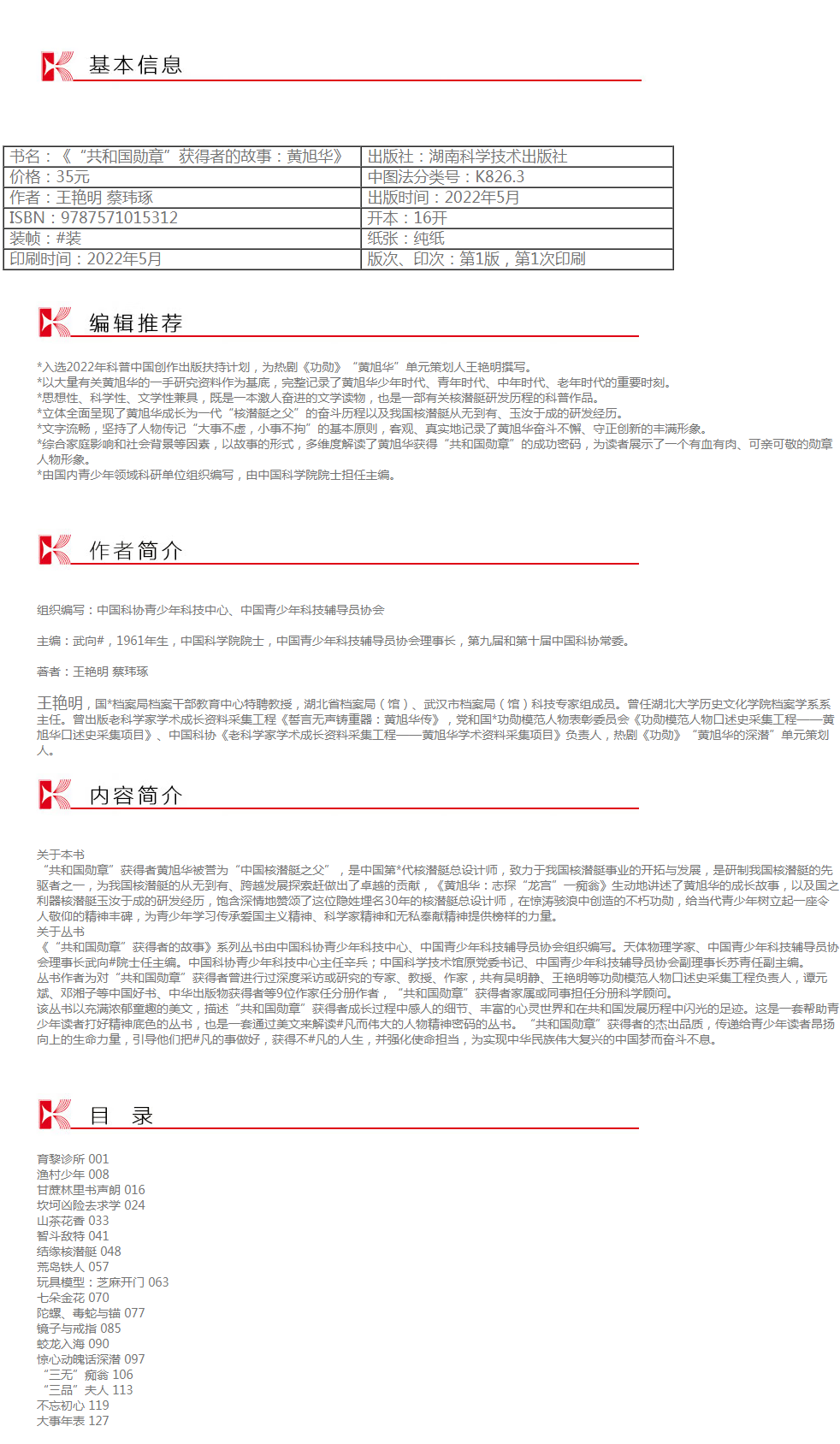 共和国勋章获得者的故事:黄旭华 立体呈现“核潜艇之父”的奋斗历程 湖南科学技术出版社