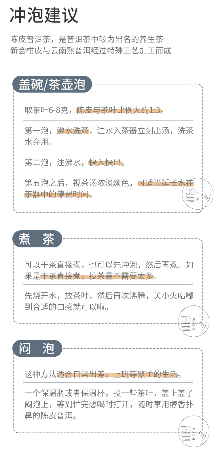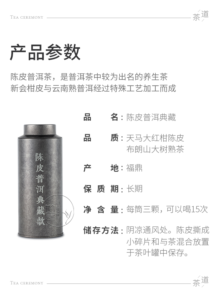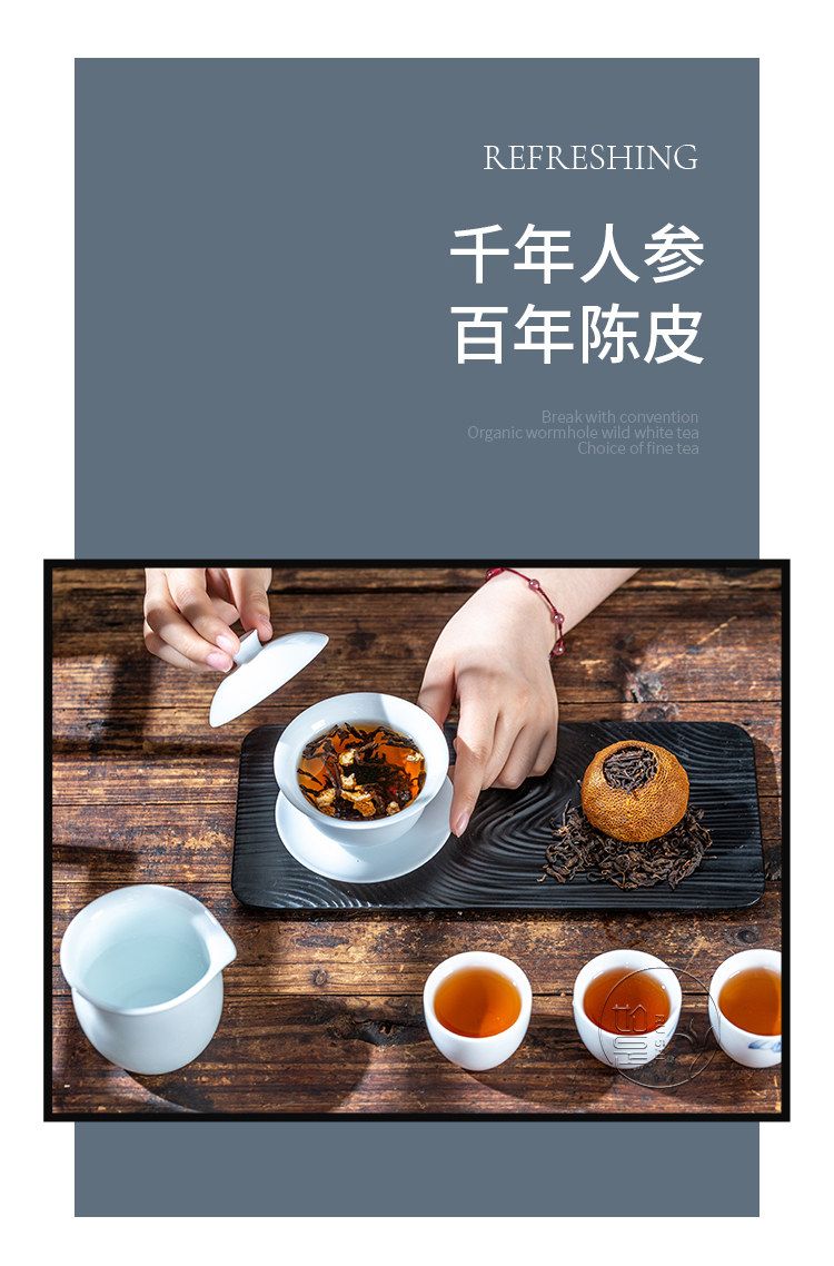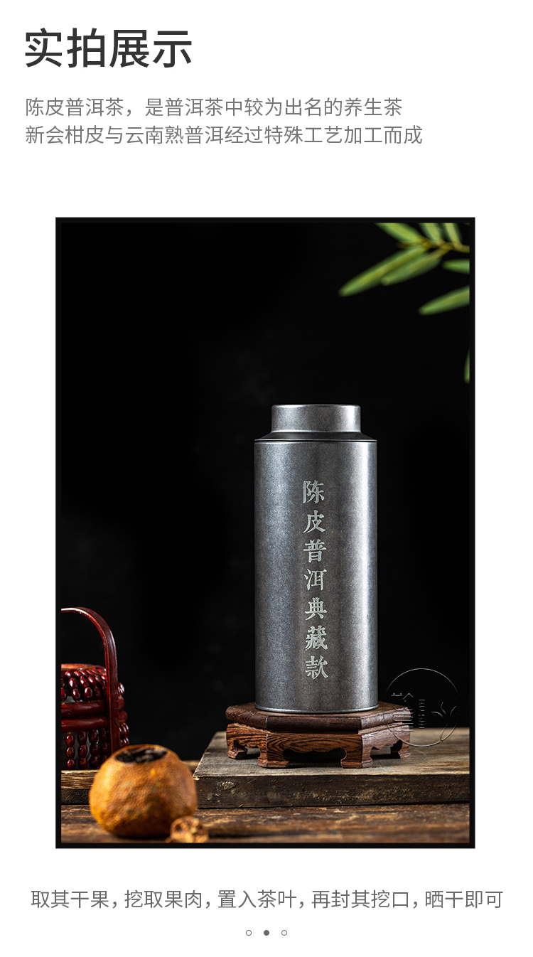 新会大红柑搭配宫廷普洱,经过3年陈放。理气暖胃,生津止渴,非常适合日常饮用。尤其是外出出差或者饱食大餐后饮用,身心皆舒泰。