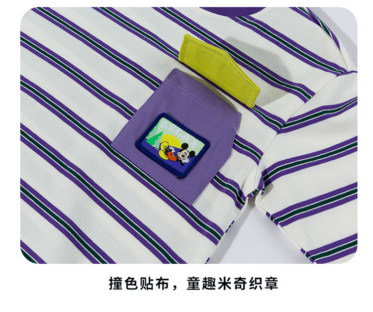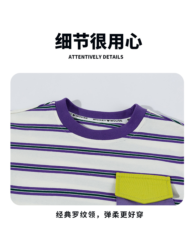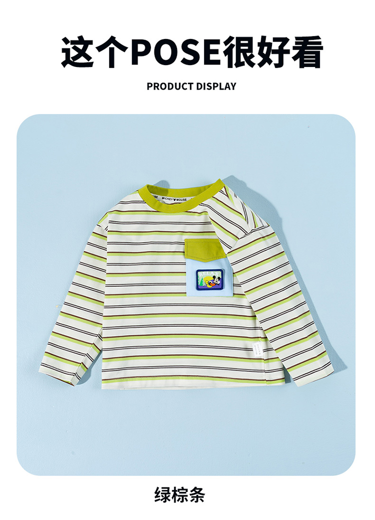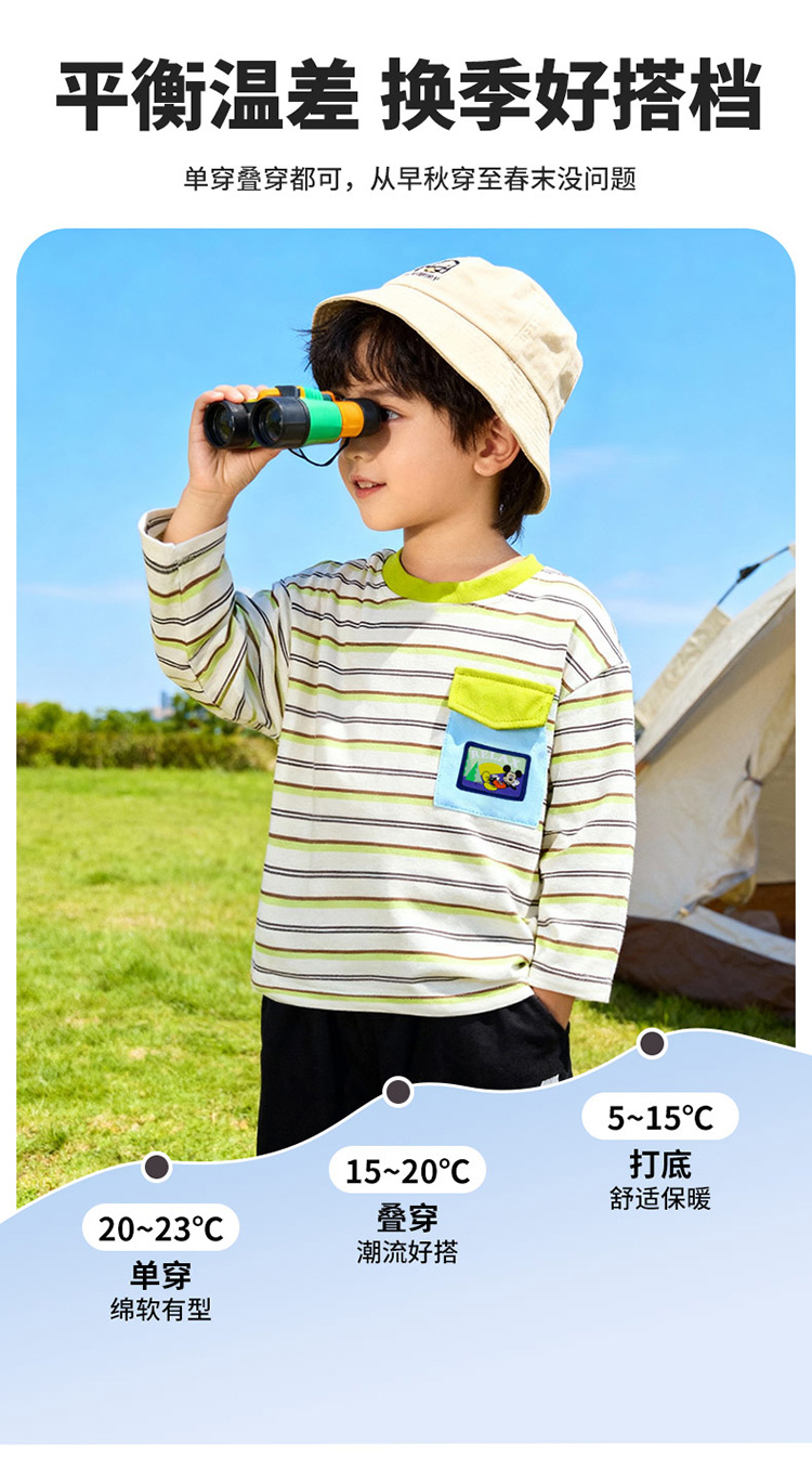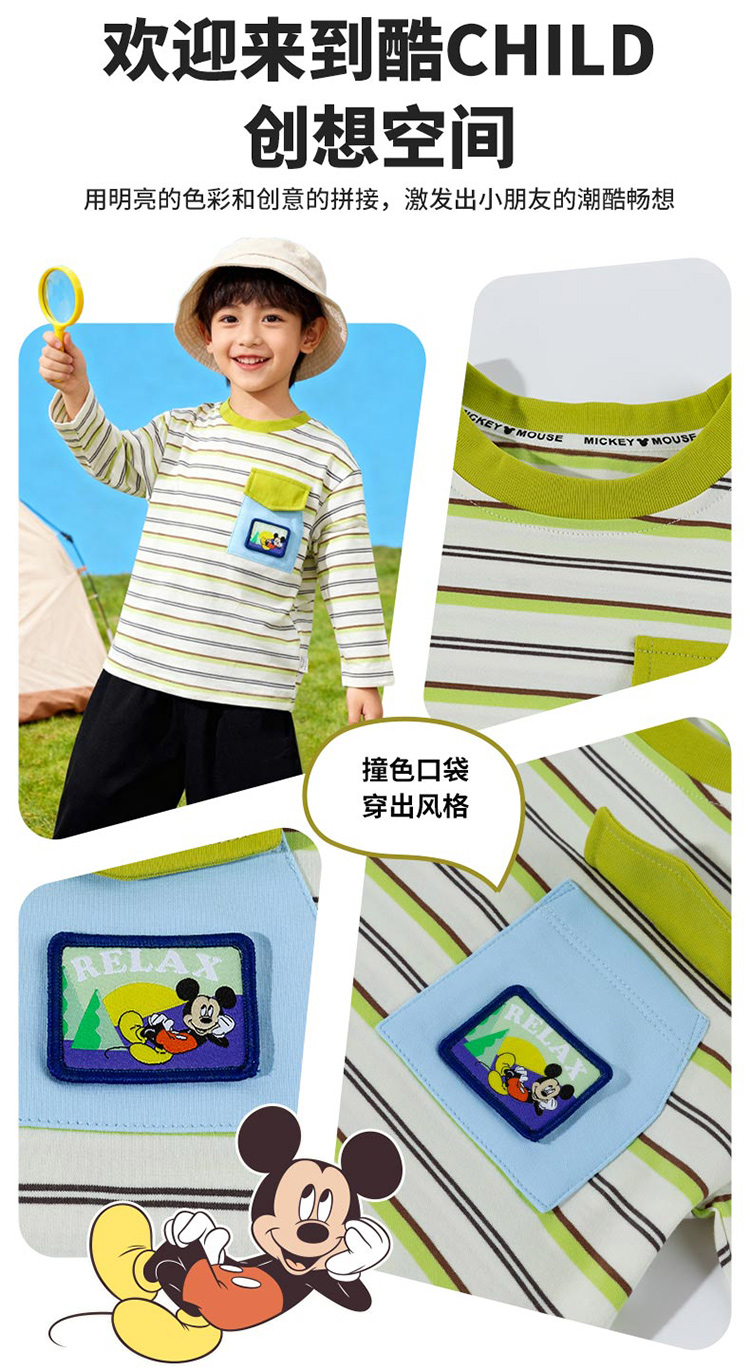 迪士尼(Disney)童装男童长袖T恤休闲运动纯棉山系条纹撞色风格2026春季新款上衣ZD1FS002
