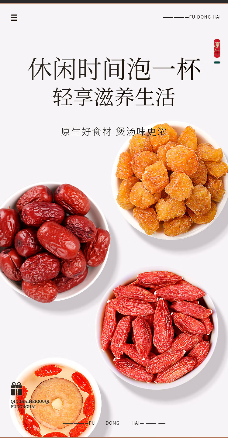 福东海 龙眼肉红枣枸杞汤料组合1150克 宁夏红枸杞桂圆大枣茶龙眼肉 煲汤炖品三宝茶原料